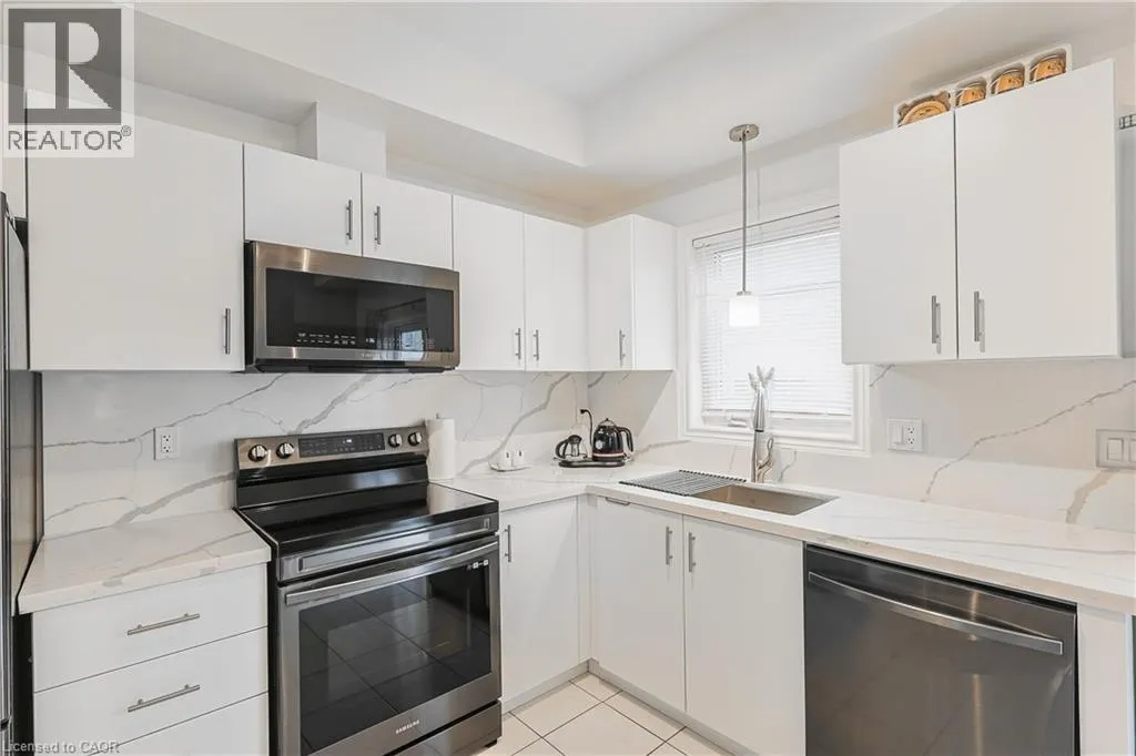 GARNER ROAD EAST TO BARLEY LANE Bright end-unit Marz-built freehold townhome with backyard space in the highly sought-after Meadowlands of Ancaster. Nearly new and thoughtfully finished, this home offers an open-concept main floor with a spacious family room filled with natural light and a modern kitchen featuring upgraded cabinetry, quartz countertops, and stainless steel appliances. A convenient powder room and front closet complete the level. Upstairs, the home features a bright primary bedroom with walk-in closet and private ensuite, along with two additional bedrooms and a full main bath â an ideal layout for professionals, guests, or a nursery. The fully finished lower level provides versatile living space perfect for a home office, rec room, or media area and features a grade-level walk-out to the backyard â a rare feature compared to many newer back-to-back townhomes in the area. This level also includes the laundry area and inside entry from the garage. Additional highlights include a single-car garage with driveway parking and convenient access to nearby visitor parking. Located in a prime Meadowlands neighbourhood close to parks, schools, shopping, restaurants, and easy highway access. (id:27476)