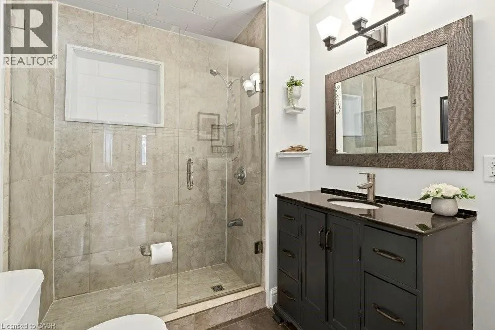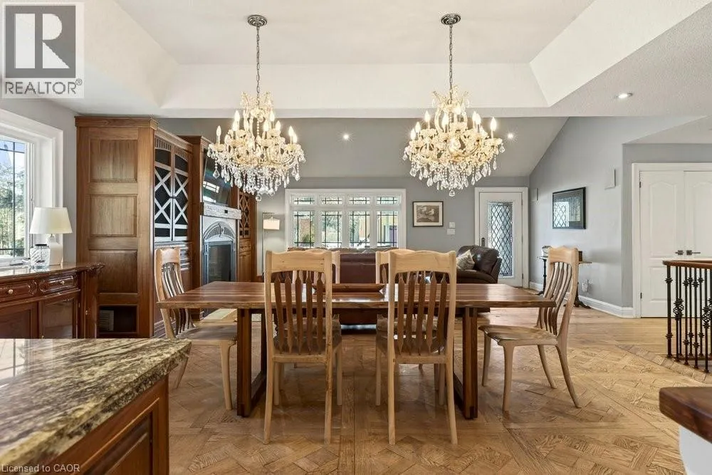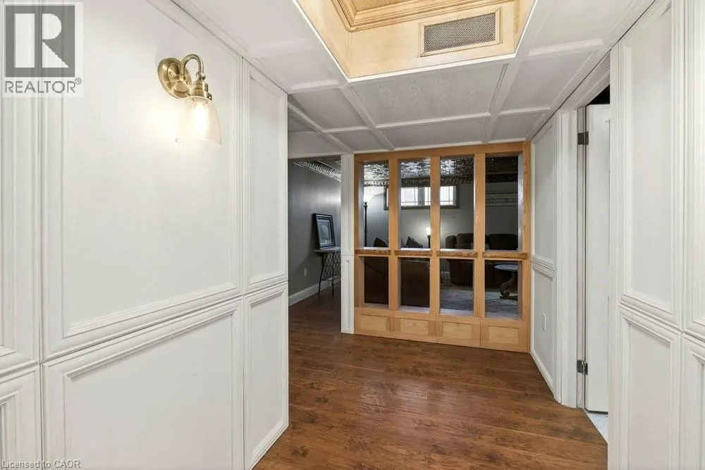 Wilson left onto Church, left onto Lodor, right onto Brookdale, left onto Clarendon Tucked away at end of a quiet street in Old Ancaster, this extensively renovated bungalow with a thoughtful addition blends rustic warmth with refined, high-end living. Surrounded by mature trees and set on a private, fenced lot, this home feels like a hidden retreat - peaceful, grounded, and crafted with intention. Inside, natural materials and exceptional craftsmanship take centre stage. Solid wood flooring flows throughout, complemented by custom solid wood cabinetry adding richness and texture. The heart of the home is a beautifully appointed kitchen featuring Wolf and Sub-Zero appliances â designed for both everyday living and entertaining. The main level offers three bedrooms, vaulted great room and a convenient mudroom. Downstairs, the ambiance shifts into something truly special. With the warmth of a Tulikivi soapstone wood-burning fireplace imported from Finland, the space feels like a cozy cabin in the woods. The lower level also adds two additional bedrooms (converted from a gym) and a full workshop provides incredible utility and can easily be converted back into a garage if desired â offering flexibility to suit your lifestyle. Step outside to your own private oasis. Low-maintenance IPE decking anchors the backyard while the swim spa invites year- round relaxation and fitness; all set against a backdrop of trees and total privacy. Put yourself within walking distance to restaurants and shops, the Ancaster tennis club, the rail trail & Bruce Trail, and much more! (id:27476)