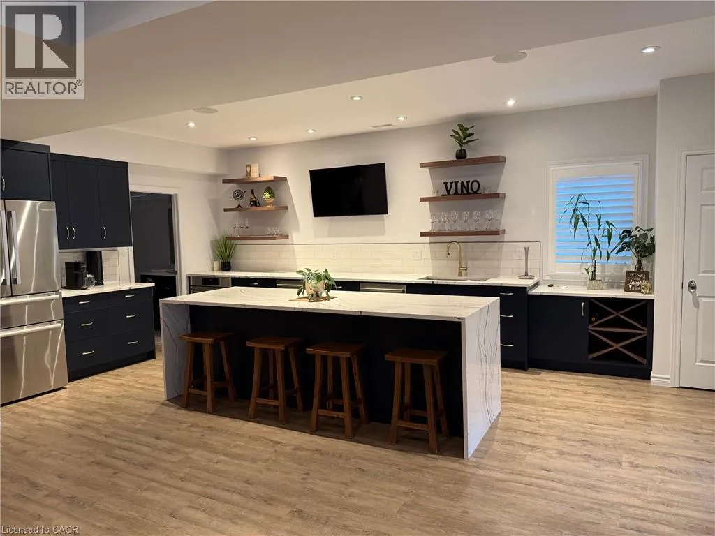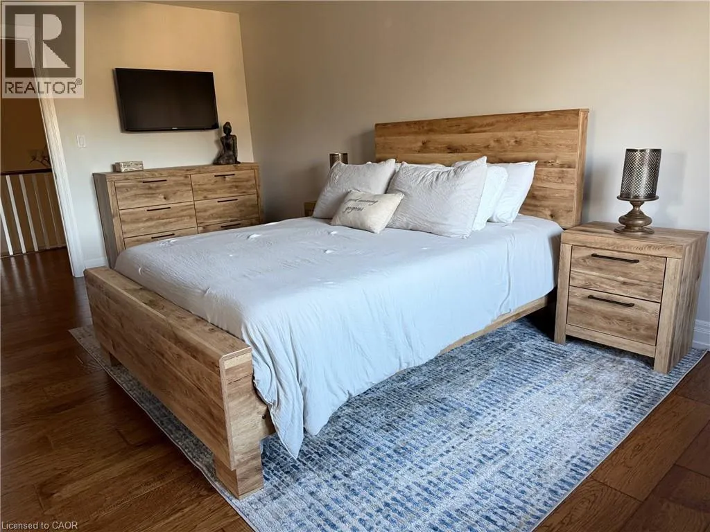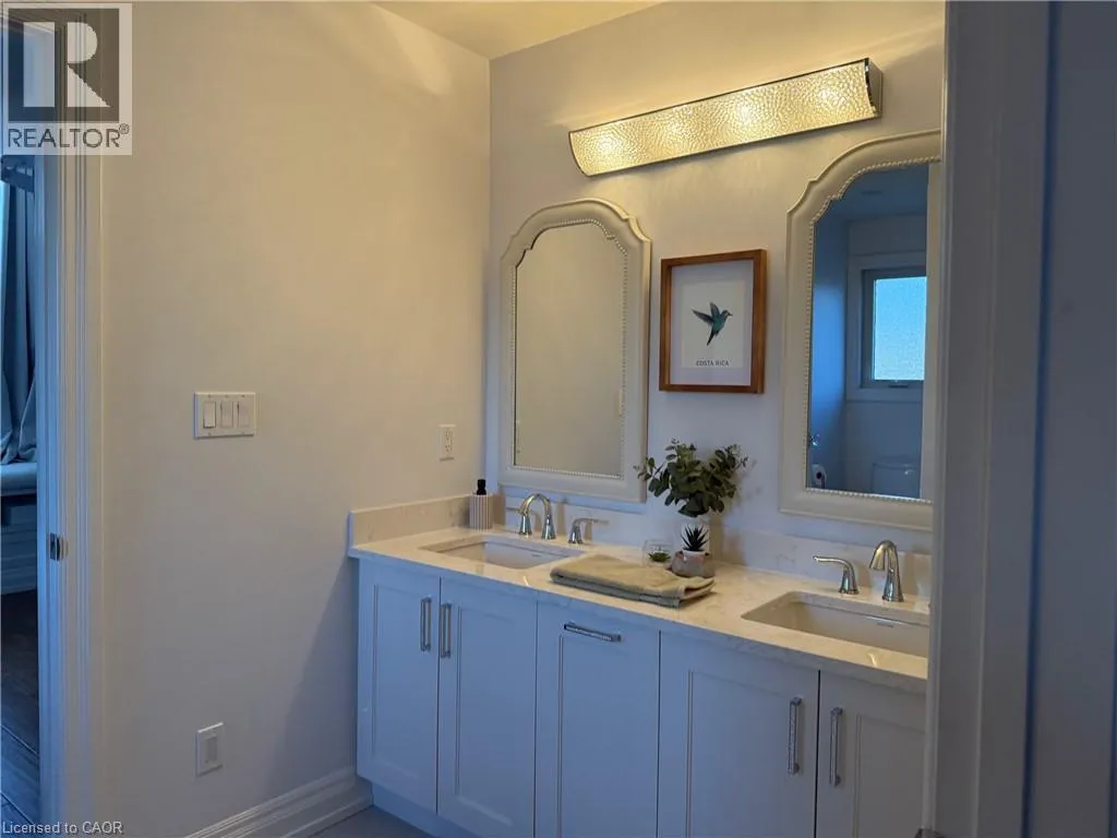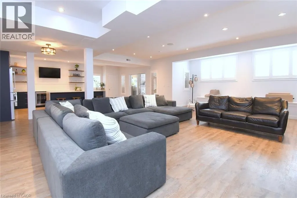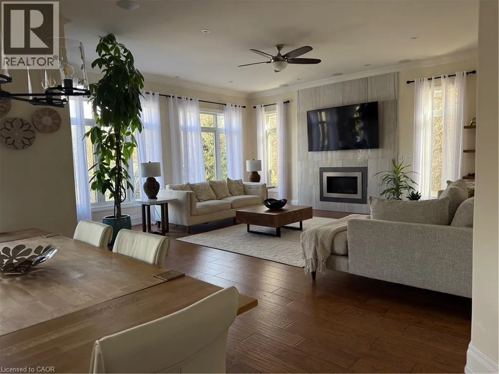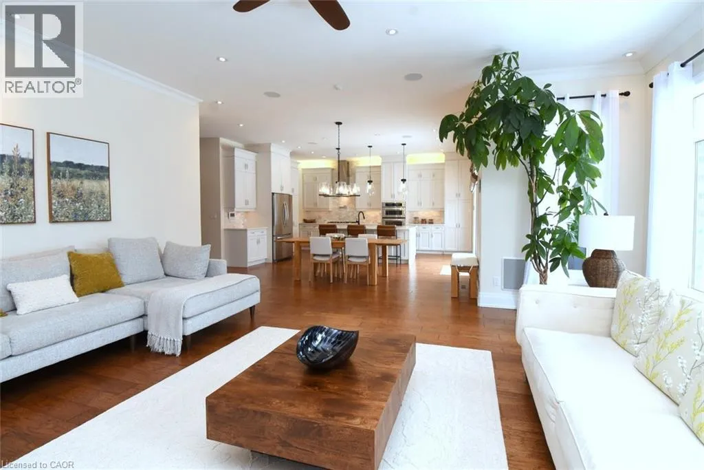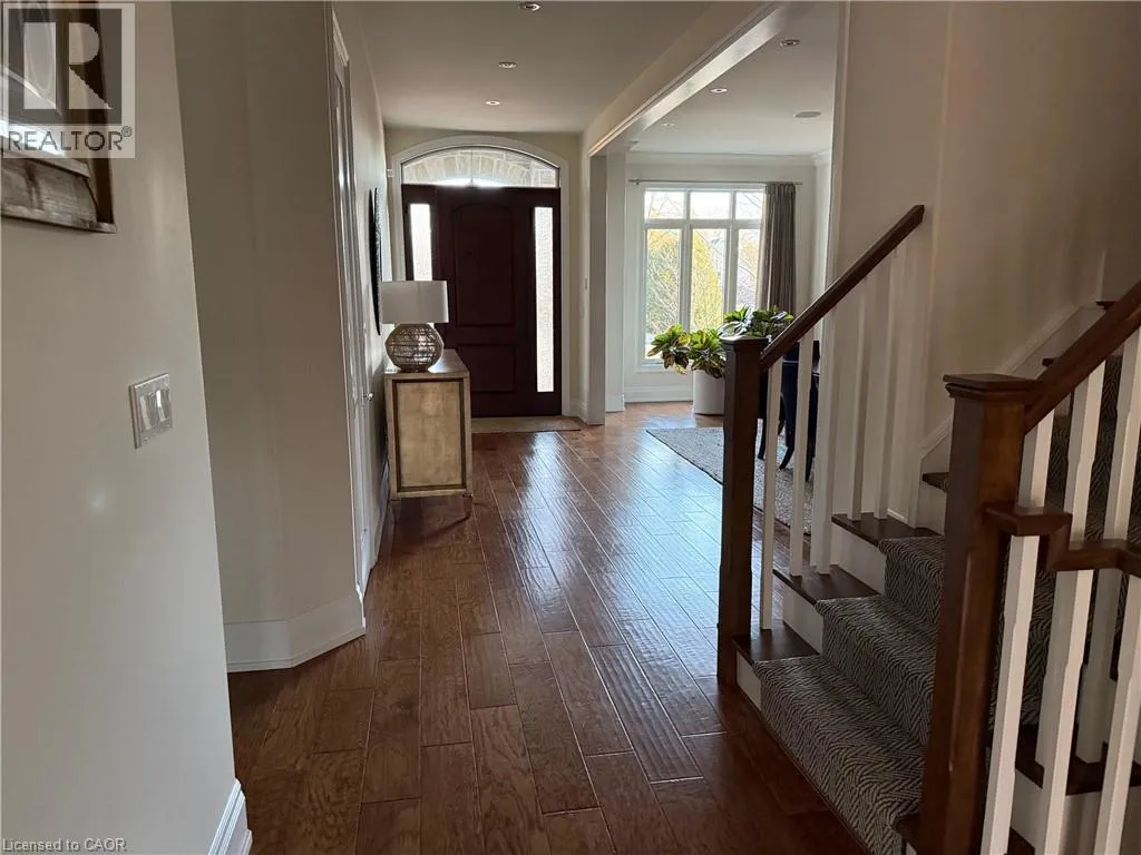 Hamilton Dr. to Old Mill Rd. to Tollgate Dr. Welcome to this exceptional luxury residence nestled on a quiet, prestigious cul-de-sac in Ancaster. Situated on a rare 50â x 200â treed ravine lot, this home offers approximately 6,000 sq. ft. of total living space and a private, resort-style backyard backing onto forested greenspace. Featuring 4+1 bedrooms and 4+1 bathrooms, the home boasts 10â ceilings on the main level, engineered hardwood throughout, an open oak staircase, and an abundance of natural light. Smart-home equipped with whole-home Sonoâs audio, CAT5e wiring, Wi-Fi extenders, security cameras, alarm system, and video doorbell. The chefâs kitchen offers a 4x8 quartz island, gas stove with pot filler, built-in appliances, walk-in pantry, butlerâs pantry, and wet bar. Spacious family room with gas fireplace and built-in surround sound. Main floor office/den ideal for work-from-home or in-law/nanny suite. The primary retreat features a private balcony, two walk-in closets, and a luxurious 5-piece ensuite with soaker tub, oversized shower, heat lamps, and bidet toilet. Convenient second-floor laundry and generously sized secondary bedrooms with walk-in closets. Fully finished walk-out basement with 9â ceilings includes a bedroom, gym, second laundry, bar with quartz waterfall island, rec room with fireplace, and separate garage entranceâideal for extended family or entertaining. A rare offering combining luxury, technology, and natural surroundings. Resort-style backyard highlights a 16x28 inground pool with waterfall, stone patios, outdoor gas fireplace and TV area, speakers, sprinkler system, smart lighting, and mature trees for ultimate privacy. Natural gas backup generator, EV rough-in, epoxy garage floors, and extensive landscaping complete this remarkable property. (id:27476)