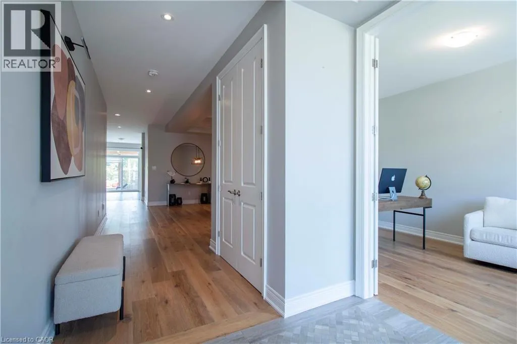 SOUTHCOTE/GARNER Stunning 3,485 Sq Ft Custom Modern Masterpiece in Prestigious Southcote Ancaster Experience elevated living in this exquisitely crafted home featuring a spacious open-concept layout and designer finishes throughout. From rich hardwood floors and soaring 9â ceilings to sleek pot lighting and tailored window treatments, every detail reflects impeccable quality. The gourmet quartz kitchen impresses with stainless steel appliances, a gas range, wet bar, walk-in pantry, and a generous island ideal for entertaining. The expansive dining area flows into a sun-filled family room with a cozy gas fireplace. A private main-floor office, laundry room, and stylish powder room offer added functionality. Step outside to a professionally landscaped, southern-facing backyard oasis complete with a covered concrete patio, modern pergola, gas fire pit, and full irrigation system. Upstairs you'll find four oversized bedrooms, including a tranquil primary retreat with a spa-inspired 5-piece ensuite and custom California walk-in closet. Jack & Jill ensuite connects the second and third bedrooms, while the fourth bedroom enjoys its own private bath and walk-in. Located close to top-rated schools, scenic parks, boutique shopping, Hamilton Golf & Country Club, and easy highway accessâthis residence offers the ultimate blend of comfort, elegance, and convenience. (id:27476)