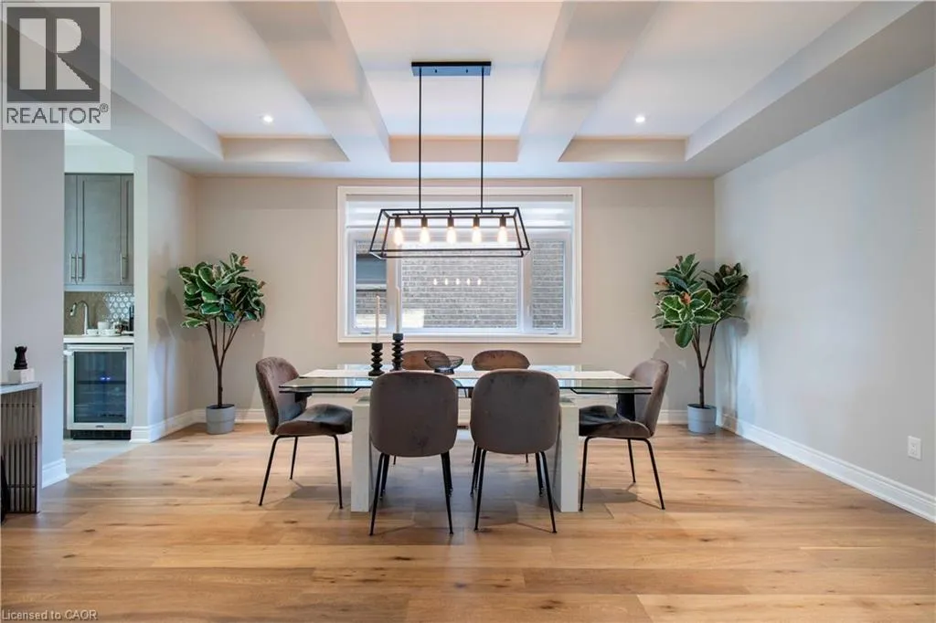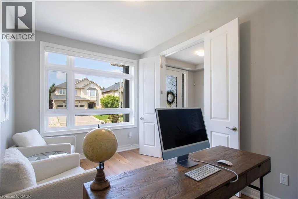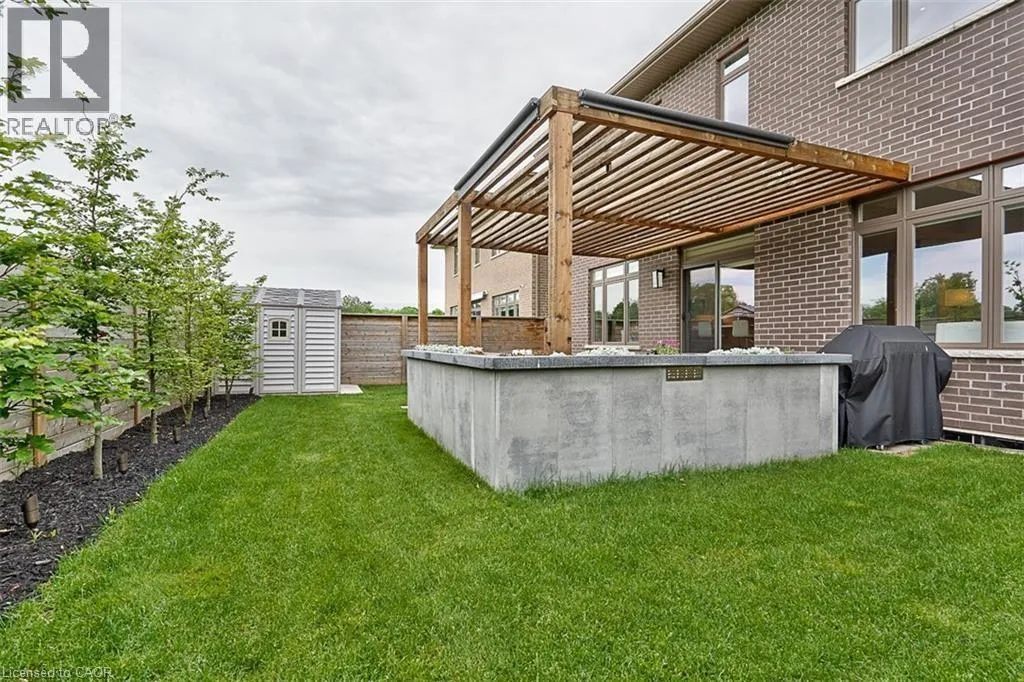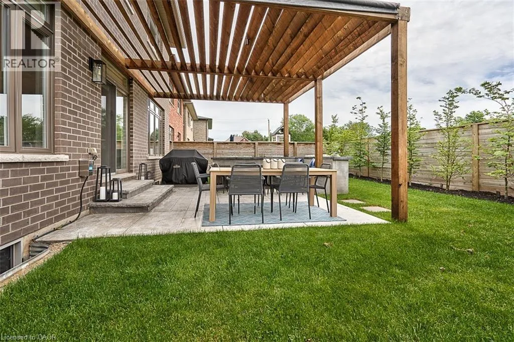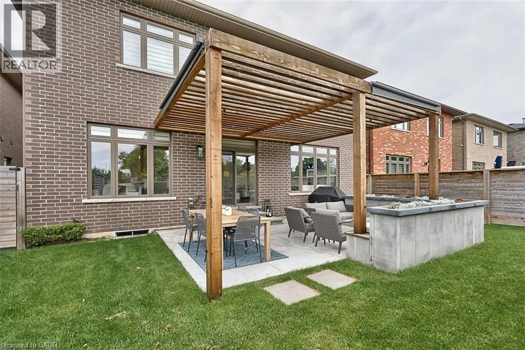 Stunning 3,485 Sq Ft Custom Modern Masterpiece in Prestigious Southcote Ancaster Experience elevated living in this exquisitely crafted home featuring a spacious open-concept layout and designer finishes throughout. From rich hardwood floors and soaring 9â ceilings to sleek pot lighting and tailored window treatments, every detail reflects impeccable quality. The gourmet quartz kitchen impresses with stainless steel appliances, a gas range, wet bar, walk-in pantry, and a generous island ideal for entertaining. The expansive dining area flows into a sun-filled family room with a cozy gas fireplace. A private main-floor office, laundry room, and stylish powder room offer added functionality. Step outside to a professionally landscaped, southern-facing backyard oasis complete with a covered concrete patio, modern pergola, gas fire pit, and full irrigation system. Upstairs you'll find four oversized bedrooms, including a tranquil primary retreat with a spa-inspired 5-piece ensuite and custom California walk-in closet. Jack & Jill ensuite connects the second and third bedrooms, while the fourth bedroom enjoys its own private bath and walk-in. Located close to top-rated schools, scenic parks, boutique shopping, Hamilton Golf & Country Club, and easy highway accessâthis residence offers the ultimate blend of comfort, elegance, and convenience. (id:27476)