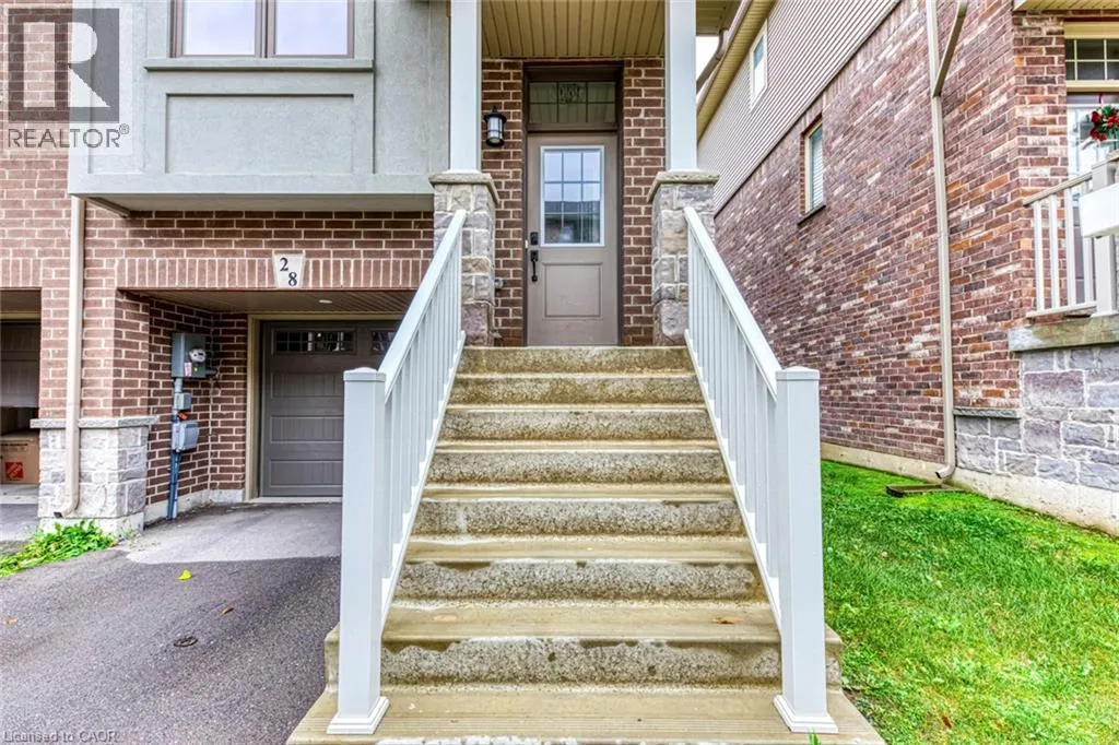 Turn left on Garner Road East onto Barley Lane Welcome to 28 Barley Lane! This stunning 3-bedroom, 3-bathroom end-unit townhome is located in the highly desirable Meadowlands of Ancaster. Built in 2019, it offers modern finishes throughout, including a sleek kitchen with stainless steel appliances, a custom island, and quartz countertops. The main floor features durable laminate flooring, large windows for plenty of natural light, and access to a premium second-floor deck. The fully finished walkout basement adds extra living space, while the 1-car attached garage provides added convenience. Perfectly designed for comfortable living, this home is close to schools, parks, shopping, and major highways. Don't miss your opportunityâschedule a showing today! (id:27476)