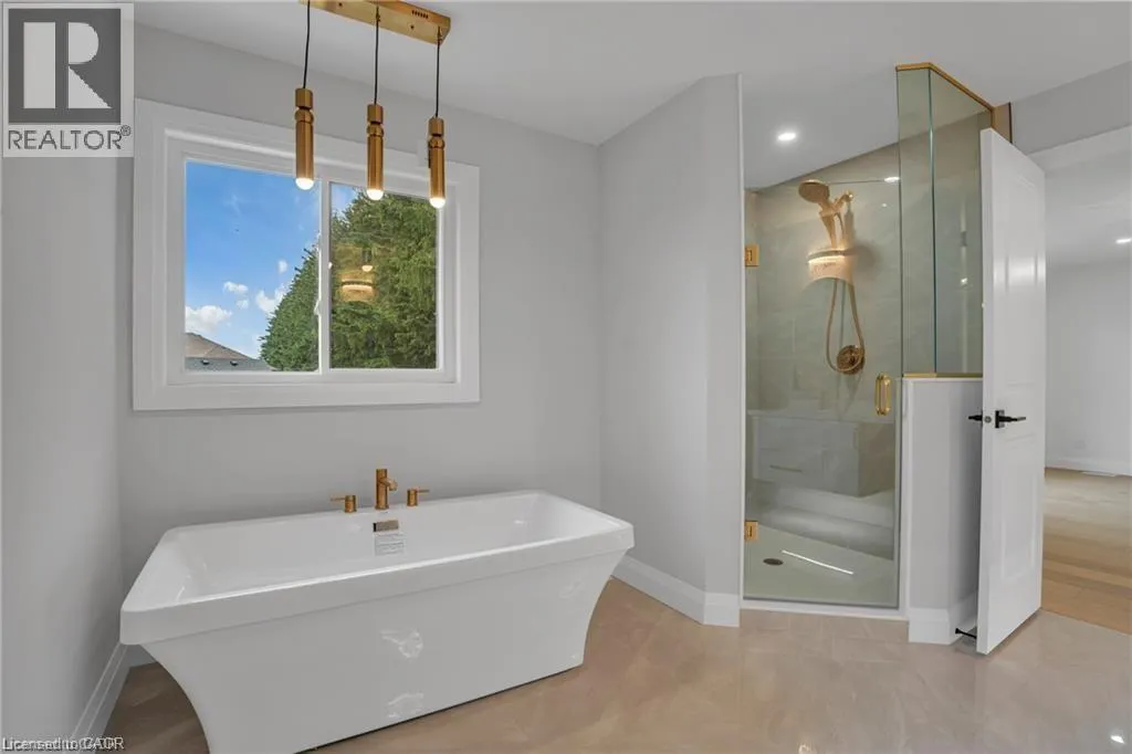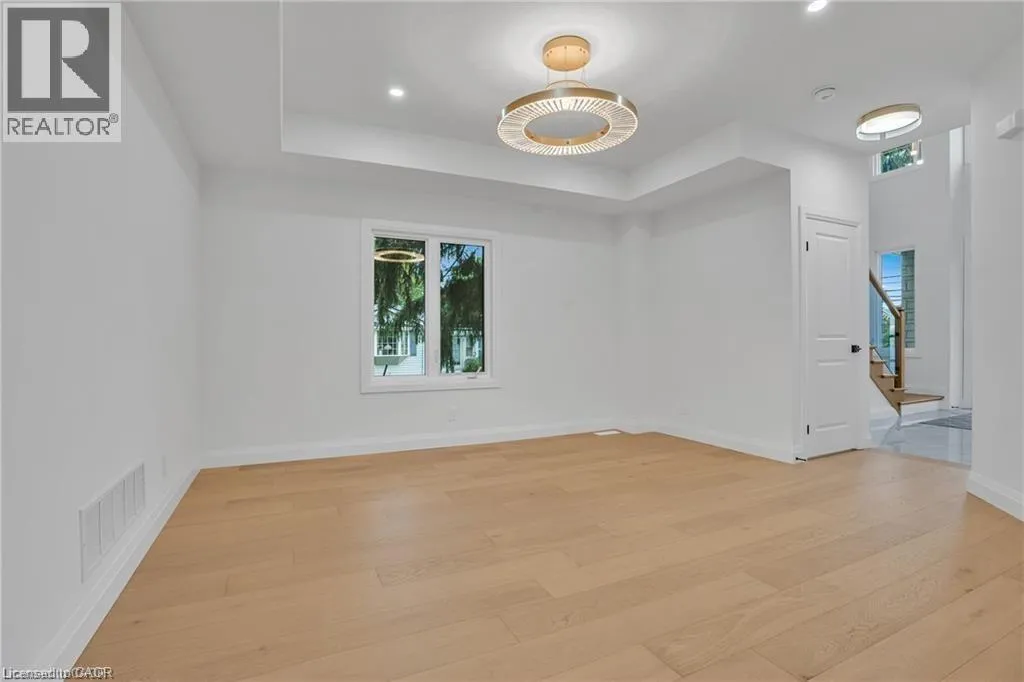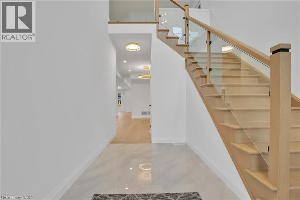 Southcote Rd and Bookjans Dr Zeina Homes RoyalView Model â This beautiful custom home sits on a 40 x 124 ft lot and features 5 spacious bedrooms plus a den and 5 bathrooms, including a main-floor bedroom. The fully finished basement includes a separate side entrance, making it ideal for an in-law suite. The open-concept main floor offers a welcoming double-door entrance, modern décor, and abundant natural light. The custom kitchen features a center island, extensive cabinetry, and stylish light fixtures. Sliding doors lead to the backyard. Additional highlights include an elegant oak staircase, oversized windows, granite/quartz countertops, hardwood floors, a brick-to-roof exterior, and a 2-car garage. Located in a mature Ancaster neighborhood, this home is close to parks, schools, shopping, restaurants, Costco, and more. (id:27476)