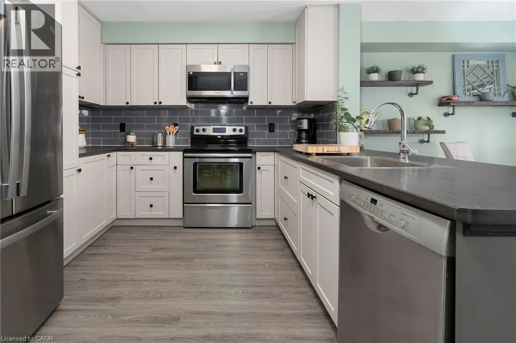 Turn right at the 1st cross street onto Derbyshire St, Turn left on Foxborough Dr LOCATION LOCATION LOCATION!!!!! Check out this spacious end unit FREEHOLD town with single car garage in the sought after Maple Lane area. This great layout with open concept living room & eat-in kitchen with walk-out to the back deck make this one ideal for entertaining family & friends. The eat-in kitchen was updated in 2025 and offers plenty of modern white cabinets, modern yet classic subway tile backsplash, ample stone counter space including the large peninsula with additional seating. The living room offers plenty of natural light giving a spacious feel. This floor is complete with the convenience of a 2 piece powder rm. Upstairs offers plenty of space for the family with a three spacious beds and a 3 piece bath. The Master retreat offers plenty of space, ensuite privilege and his and her closets. Looking for even more space for the family the finished basement offers, large rec room perfect for family games or movie nights with plenty of space for an office or kids play area & there is still plenty of room for storage. The fully fenced backyard is a great size for a townhome and offers an extra large covered deck for entertaining and meals and a bonus hook up for gas BBQ and a shed for all your outdoor storage. This home has it ALL and close to all conveniences including highway access for commuting. (id:27476)