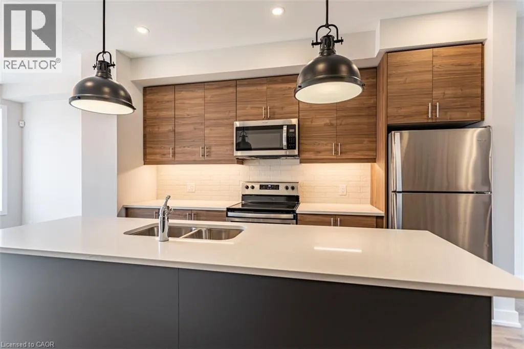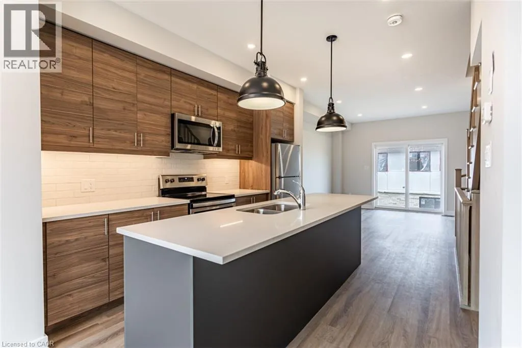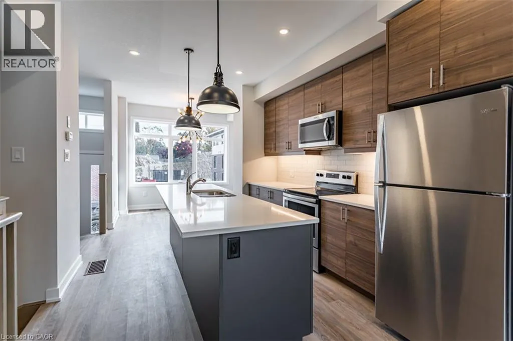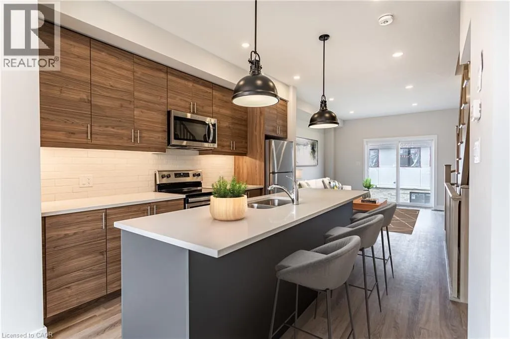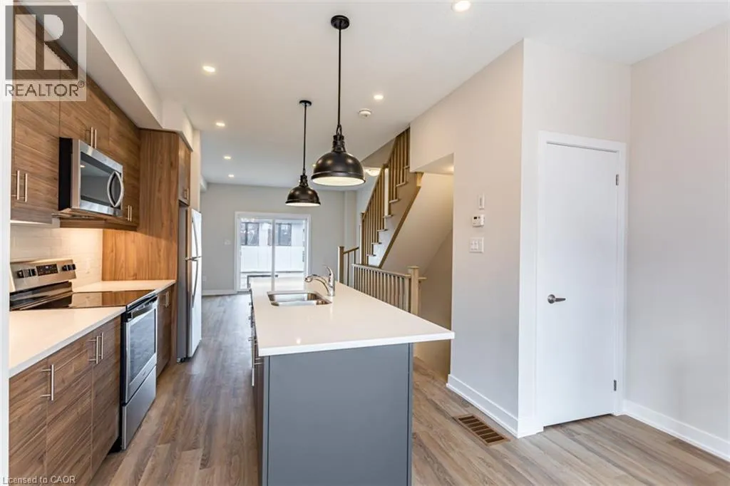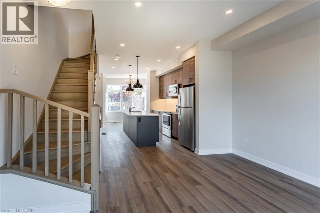 Garner Rd to Munay Lane to Wilings Lane Welcome to Monterey Heights â a DiCenzo Homes community! Monterey Heights will be a preferred address for active families looking for the perfect blend of urban convenience and outdoor enjoyment and hometown. This high-end, beautifully finished home contains upgraded features such as quartz countertops with under-mount stainless-steel sink, kitchen island with breakfast bar, brand new stainless steel kitchen appliances, designer subway tile backsplash and under cabinetry lighting, custom California Shutter window coverings, pot lights and modern light fixtures on main floor. Located in a sought-after, family-friendly neighbourhood, this trendy 3-level townhome features loads of living space, main floor balcony, walk-out access to backyard, singleâcar driveway and garage with additional visitor parking available. The home includes extended 9- foot ceilings on the main floor, which gives this home a spacious open concept from the kitchen to the great room, ideal for entertaining. Carpet-free living on main and lower levels. Large windows allow for light-filled living spaces within the home. With a stucco and brick exterior and great curb appeal, this townhome is truly stunning. Conveniently located across the street from Ancasterâs Smart Centre (Walmart, Longoâs, Good Life, Loweâs etc.), close to many parks, schools and Hamiltonâs Health Sciences hospital network. Convenient highway access makes its location perfect for commuters. It is also a 15-minute drive to McMaster University, Mohawk College and Redeemer College, and is within walking distance to public transit (id:27476)