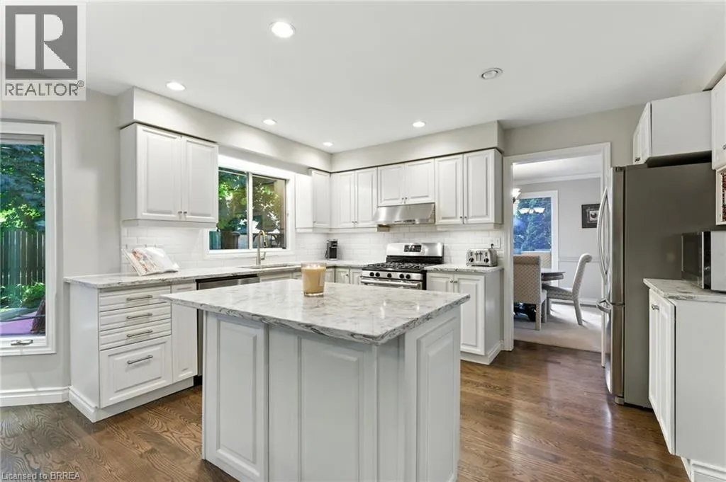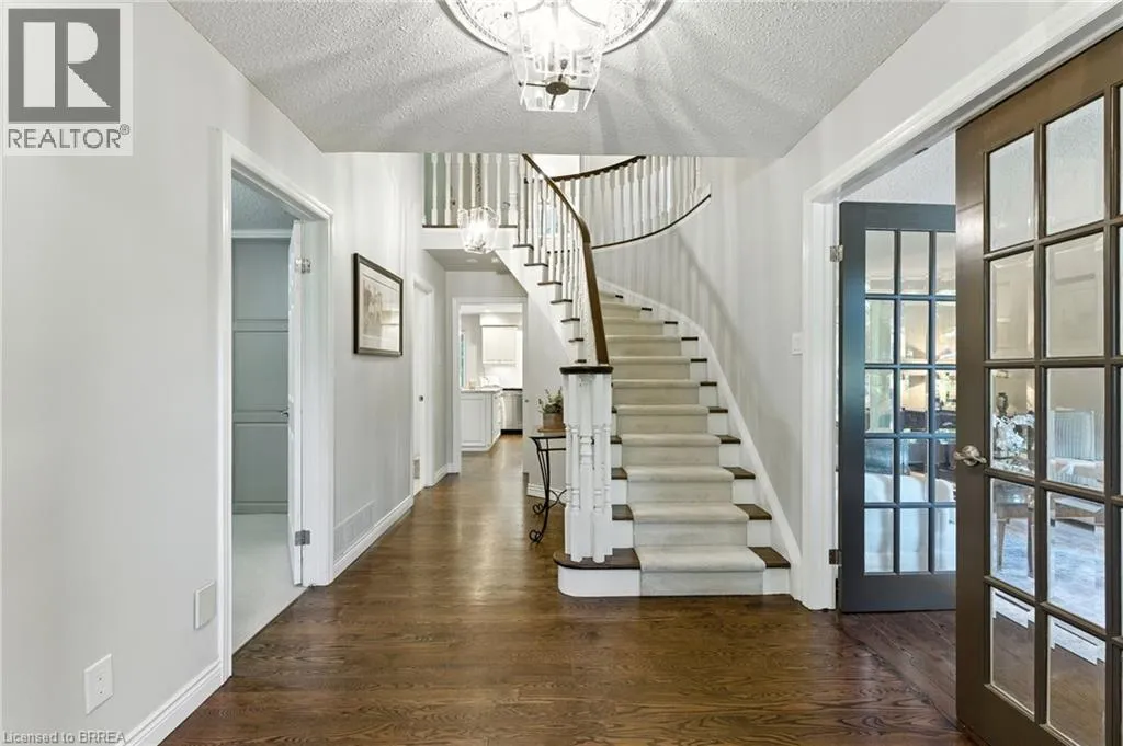 Wilson Street or Jerseyville Road to Meadowbrook Drive, to Abbey Close. Nestled in one of Ancasterâs most desirable neighbourhoods, this warm and inviting 4-bed, 4-bath home offers the perfect blend of elegance, comfort, and functionality. Boasting incredible curb appeal with beautifully landscaped yards, this property is a true sanctuary for families and entertainers alike. Step inside to a chefâs kitchen featuring quartz countertops, stainless steel appliances, and ample space for cooking and gathering. The heart of the home, the cozy family room, invites you to unwind with a gas fireplaceâperfect for those chilly nights with loved ones. In addition to the generously sized bedrooms, the main floor features a dedicated office spaceâperfect for working from home in privacy and comfort. A separate formal living room provides a welcoming space for guests or quiet relaxation, while the distinct dining room offers the ideal setting for family gatherings. Whether you're hosting or unwinding, this home offers the flexibility and functionality to suit your lifestyle. Downstairs, the fully finished basement offers incredible flexibility with in-law suite capability, complete with a separate entrance and a spacious recreational room, ideal for entertaining or accommodating guests. Step outside into your private backyard oasisâcomplete with a tranquil water fountain, surround sound speaker system, and a charming gazebo with hydro, perfect for relaxing evenings under the stars. A matching steel-roofed shed with 60-amp service adds more function to this already impressive yard. This home is built for comfort and efficiency with a NuTone attic space ventilator system, a durable steel roof, 200-amp main panel, 100-amp and 60-amp sub panels. The intercom system throughout the home provides added convenience for seamless communication. Whether you're hosting family gatherings, enjoying peaceful nights in, or accommodating extended family, this home checks all the boxes. Don't miss your chance to own this exceptional Ancaster gem! (id:27476)