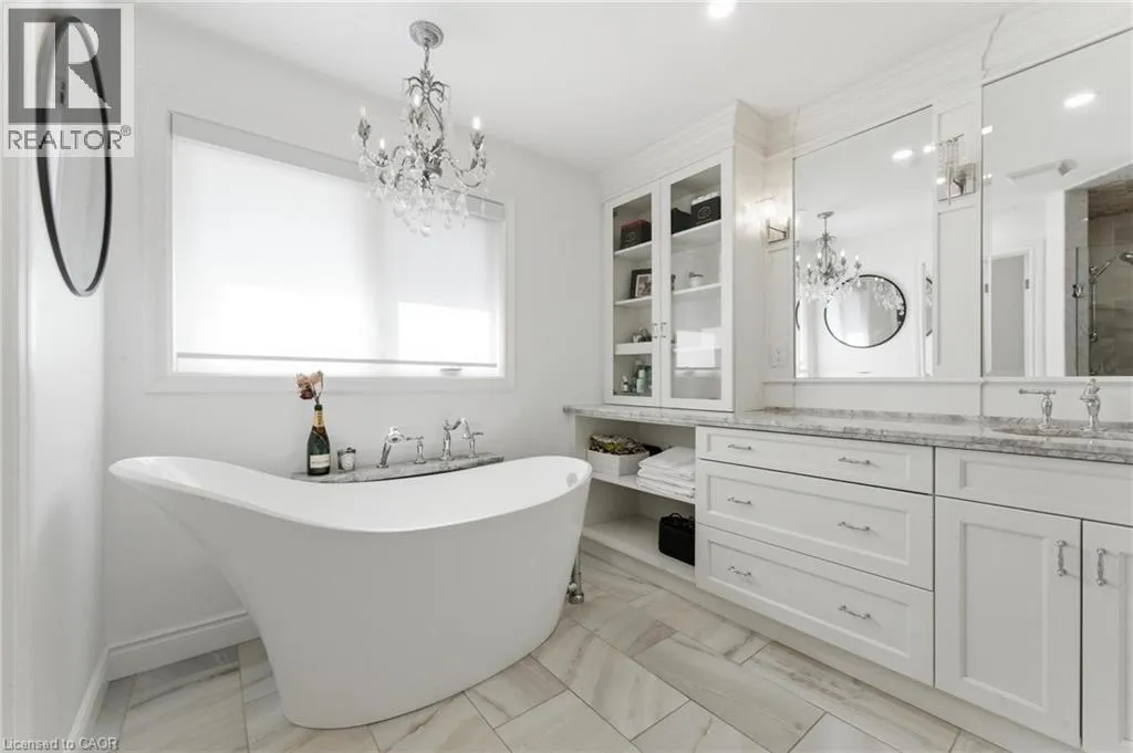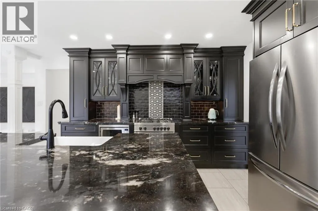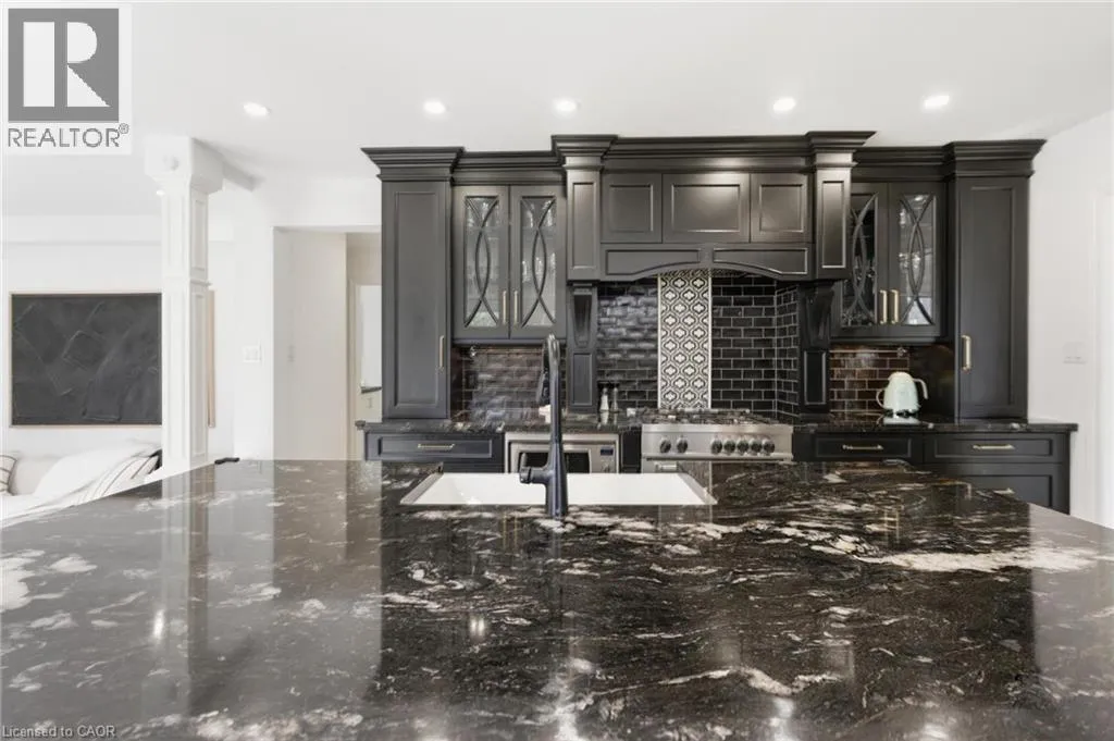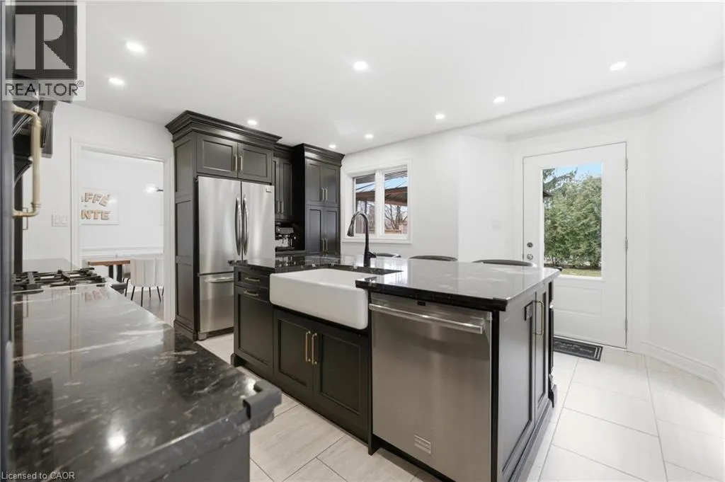 Garner Rd E to Anson Dr to Miller Dr Welcome to 138 Miller Drive in beautiful Ancaster! This stunning 4-bedroom home offers a perfect blend of space, style, and functionality. The impressive entryway features soaring ceilings, leading into a bright and spacious main floor with a modern kitchen complete with top-of-the-line appliances, a formal dining room, and a sunken living room. Upstairs, youâll find four generously sized bedrooms, including a primary suite with a spa-like ensuite, as well as the convenience of upper-level laundry and an additional full bathroom. The fully finished basement offers excellent versatility with in-law suite potential, featuring an updated kitchen, full bathroom, finished living space, and a walk-up to the backyard. (id:27476)