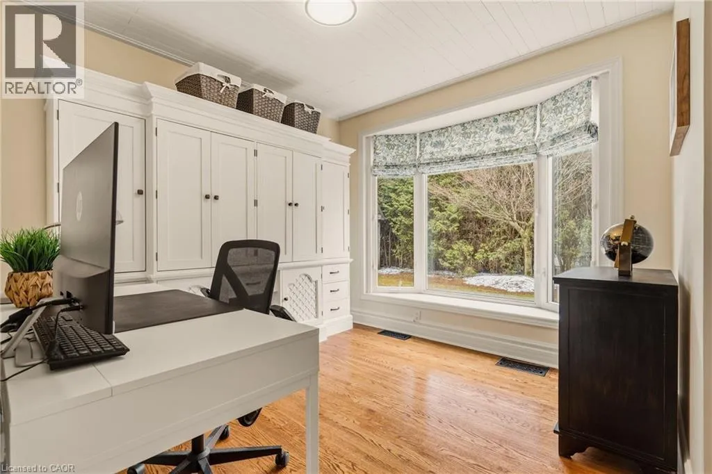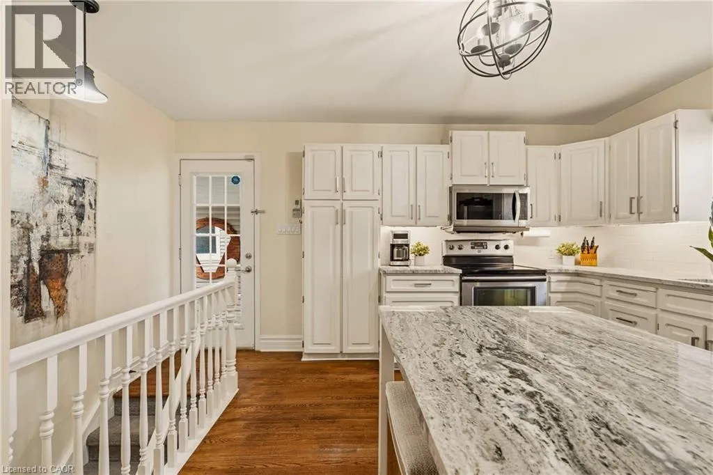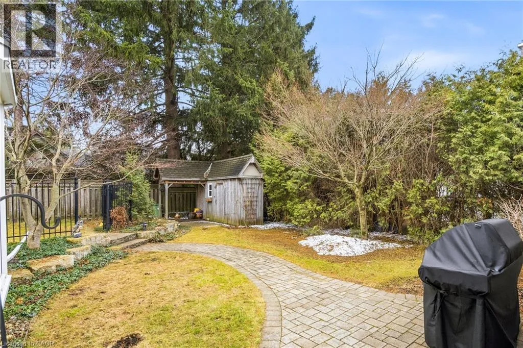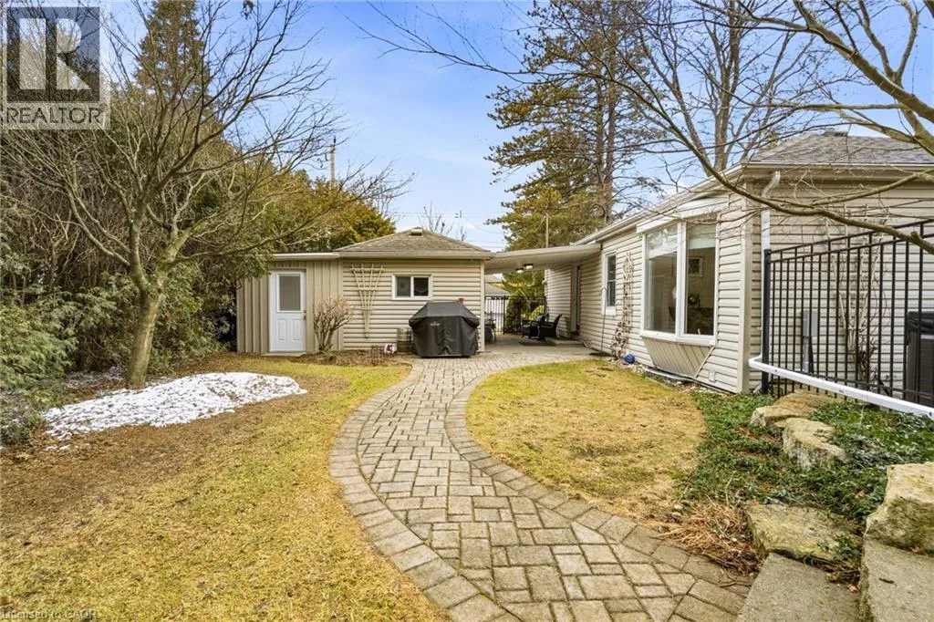 LOVERS LANE TO PARKER AVE Welcome to this beautifully maintained home in the highly desirable Oakhill neighbourhood in the heart of Old Ancaster. Situated on a large, mature lot, this property offers charm, space, and exceptional outdoor living. The main level features 3 spacious bedrooms and an updated 3 piece bathroom, along with a bright living and dining room combination with hardwood floors throughout and a cozy gas fireplace. The kitchen is well appointed with brand new quartz countertops (2026) and stainless steel appliances. The primary bedroom features built ins as well as sliding doors to the backyard. Stunning finished basement offers excellent additional living space with a large rec room, fourth bedroom, laundry area, and an oversized bathroom featuring a soaker tub and separate shower. The basement walk-up to the side entrance provides excellent potential for a future in-law suite or secondary unit. Step outside to your private backyard oasis with beautiful landscaping, mature greenery, and plenty of space to relax or entertain. Additional features include a detached single car garage with new concrete floor, an 8' x 16' storage room addition beside garage, and a separate backyard shed. A gas BBQ line adds extra convenience for outdoor entertaining. A rare opportunity to own a charming bungalow in the coveted Old Ancaster community, close to parks, schools, and all local amenities. (id:27476)