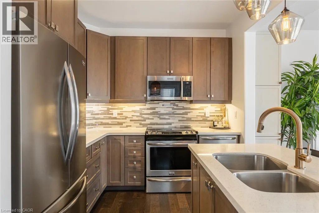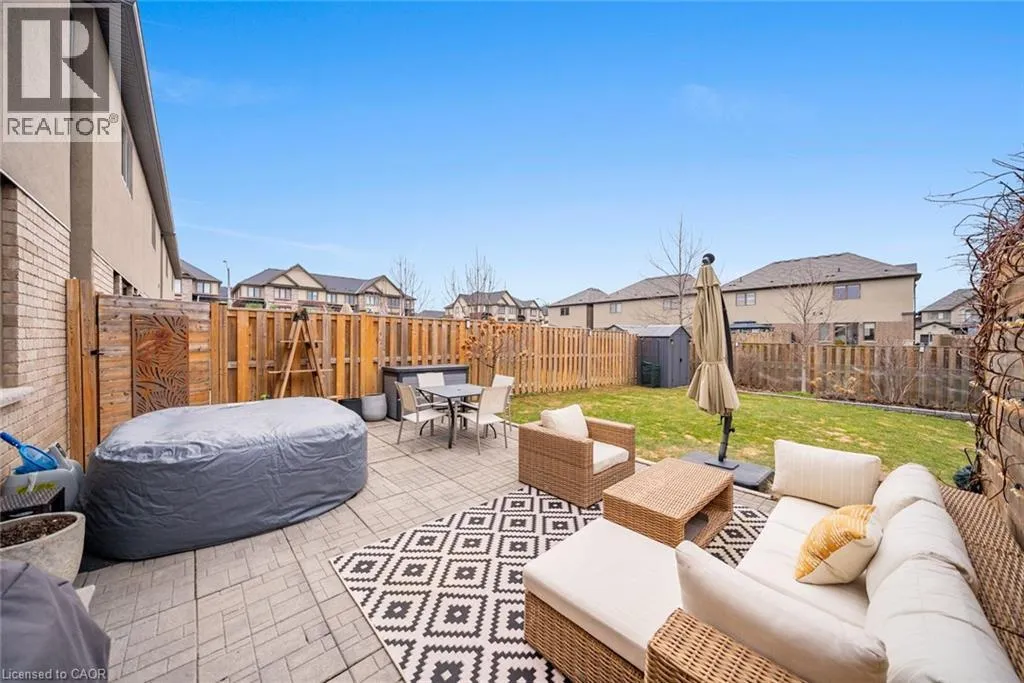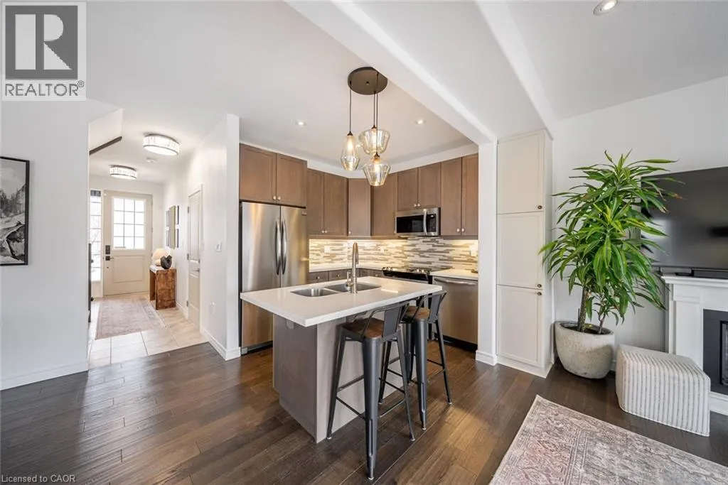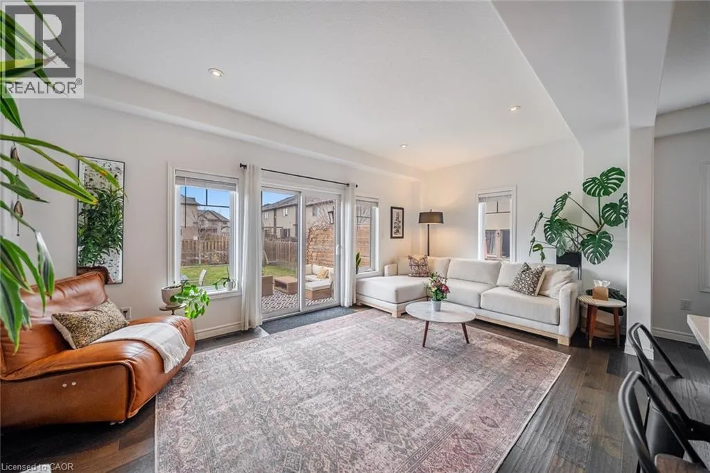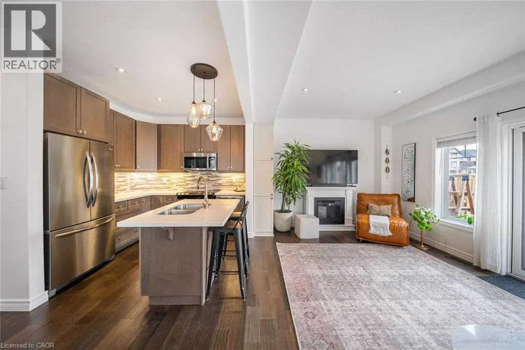 Garner Road to John Frederick Gorgeous freehold end-unit townhome in a highly sought-after Ancaster neighbourhood with no condo fees. Attached only at the garage, offering added privacy and minimal noise, with a layout that lives closer to a detached home. Set on a premium lot larger than most surrounding homes, this property is filled with natural light from multiple sides and features engineered hardwood floors and consistent, quality updates throughout. Thoughtfully maintained and well cared for, this is a home where what you see is exactly what you get. Offering three bedrooms and three bathrooms, with a functional layout. The main floor has been upgraded with quartz countertops, updated faucets, lighting, and fixtures, along with a custom pantry and built-in shelving. The primary suite features custom built-in closets and dresser. The professionally finished basement (2025) adds additional living space, ideal for a gym, entertaining area, or accommodating extended family. The backyard is fully fenced, private, and larger than typical for the area, complete with newer landscaping, stonework, and established gardens. The driveway has been newly asphalted and sealed, offering parking for three vehicles in addition to the garage. This is a turnkey, well-maintained home in a safe, family-friendly community close to parks, schools, and amenities. Come see it in person; itâs even better than in the photos. (id:27476)
