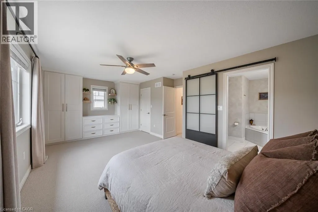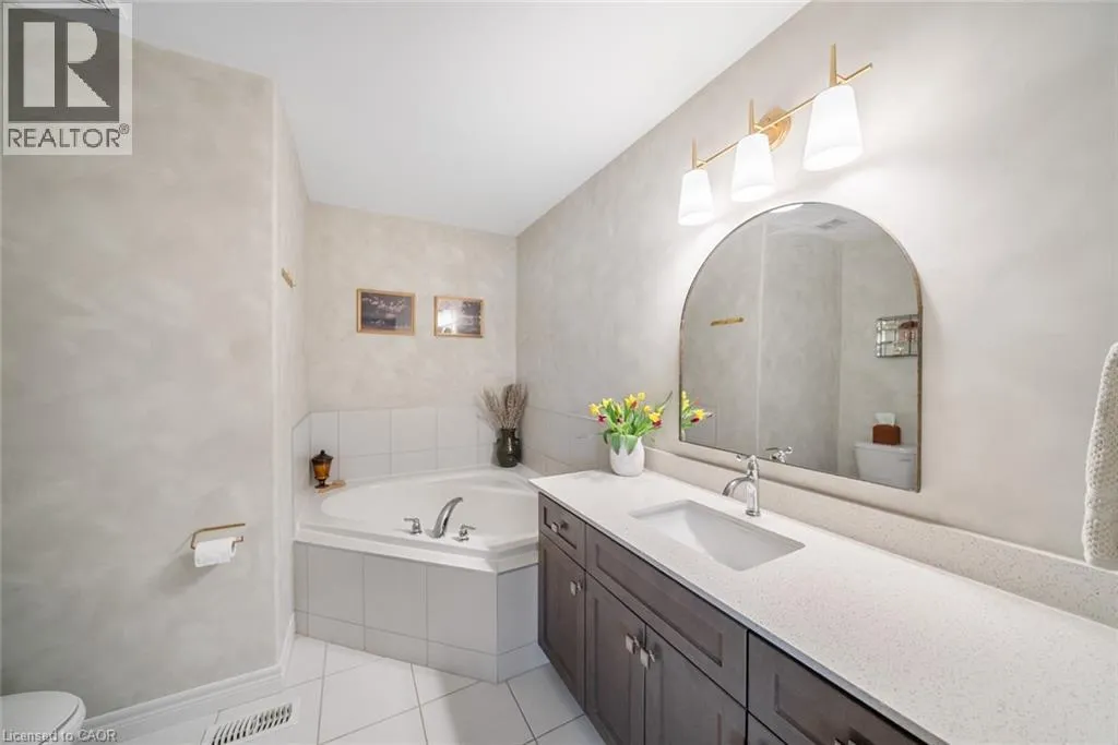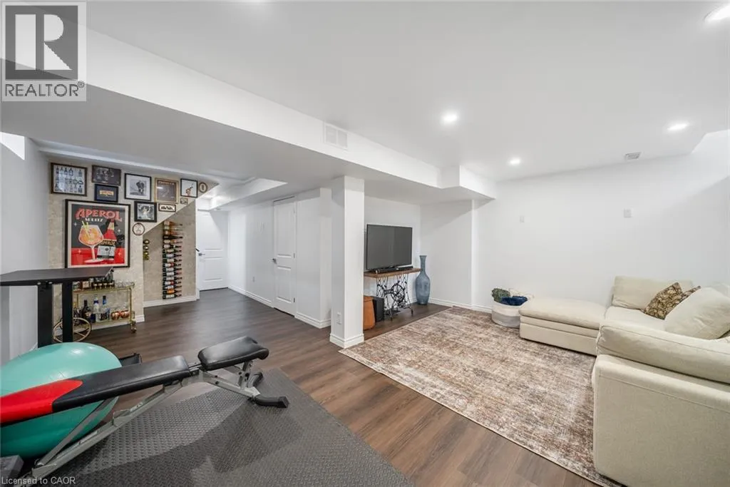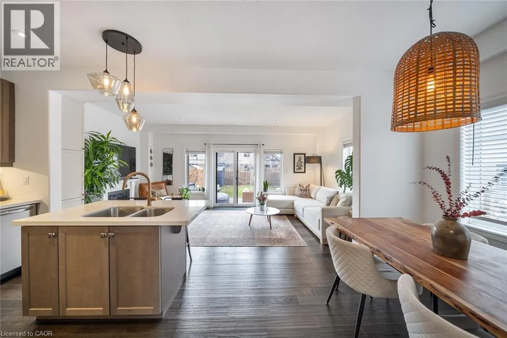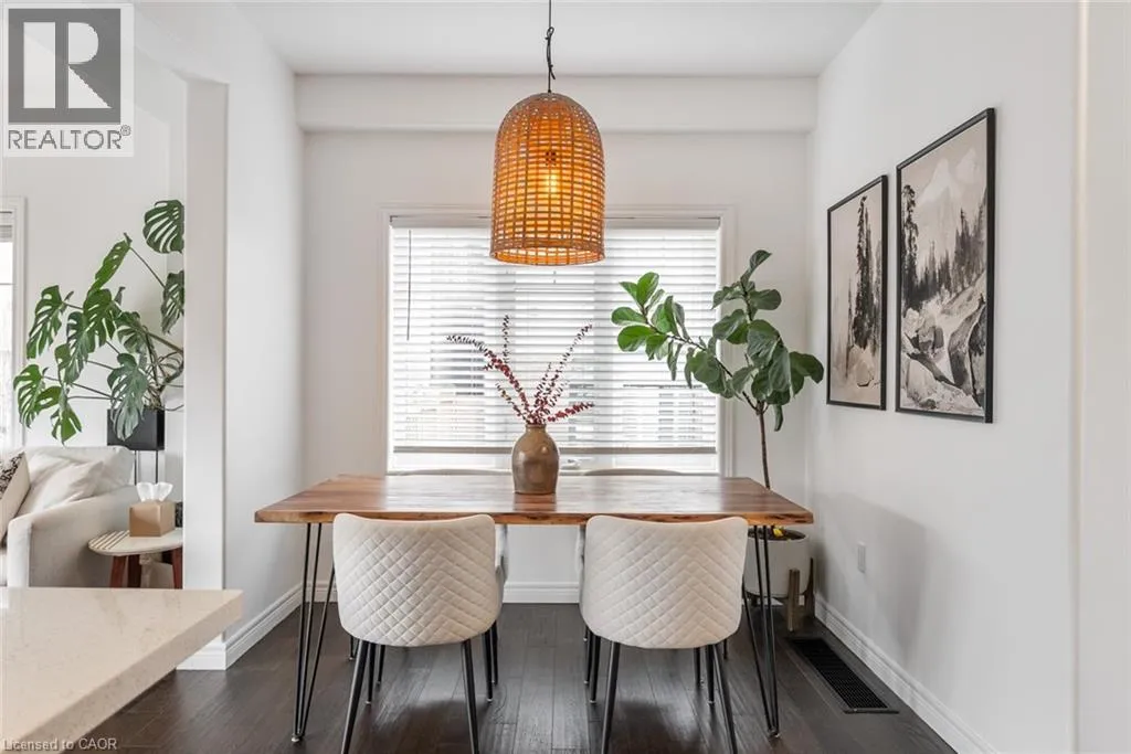 Garner Road to John Frederick Gorgeous freehold end-unit townhome in a highly sought-after Ancaster neighbourhood with no condo fees. Attached only at the garage, offering added privacy and minimal noise, with a layout that lives closer to a detached home. Set on a premium lot larger than most surrounding homes, this property is filled with natural light from multiple sides and features engineered hardwood floors and consistent, quality updates throughout. Thoughtfully maintained and well cared for, this is a home where what you see is exactly what you get. Offering three bedrooms and three bathrooms, with a functional layout. The main floor has been upgraded with quartz countertops, updated faucets, lighting, and fixtures, along with a custom pantry and built-in shelving. The primary suite features custom built-in closets and dresser. The professionally finished basement (2025) adds additional living space, ideal for a gym, entertaining area, or accommodating extended family. The backyard is fully fenced, private, and larger than typical for the area, complete with newer landscaping, stonework, and established gardens. The driveway has been newly asphalted and sealed, offering parking for three vehicles in addition to the garage. This is a turnkey, well-maintained home in a safe, family-friendly community close to parks, schools, and amenities. Come see it in person; itâs even better than in the photos. (id:27476)
