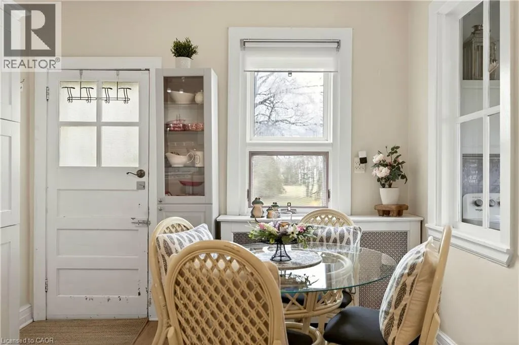 West of Trinity Rd. Discover the perfect blend of timeless charm and modern comfort in this stunning 3-bedroom home, set on a picturesque, park-like lot just minutes from the heart of Ancaster. Surrounded by peaceful farmland views, this property offers a rare balance of privacy, space, and convenience, with easy access to highways, shopping, and commuter routes. The homeâs 1850s character has been thoughtfully reimagined with stylish modern updates, creating warm, inviting spaces filled with natural light. The main floor offers a spacious eat-in kitchen, an oversized dining room ideal for entertaining, a bright living room, and a versatile office and home gym. Rich hardwood floors and quality finishes enhance the homeâs timeless appeal. Step outside to your own private retreat, featuring a large patio, fire pit, and expansive yard, perfect for relaxing or hosting family and friends. Practicality meets convenience with a 22' x 24' double car garage with electrical, along with a generous driveway accommodating up to five additional vehicles. Extensive updates provide peace of mind, including shingles on both the house and garage (2016), jet pump and water supply system (2020), stove (2021), gas line and on-demand hot water heater (2022), sump pumps, washer and refrigerator (2022), premium water filtration system (2022), refinished hardwood floors (2022), driveway (2024), and basement waterproofing (2025). This move-in-ready home offers a rare opportunity to enjoy country-style living with modern upgrades in a highly desirable location. (id:27476)