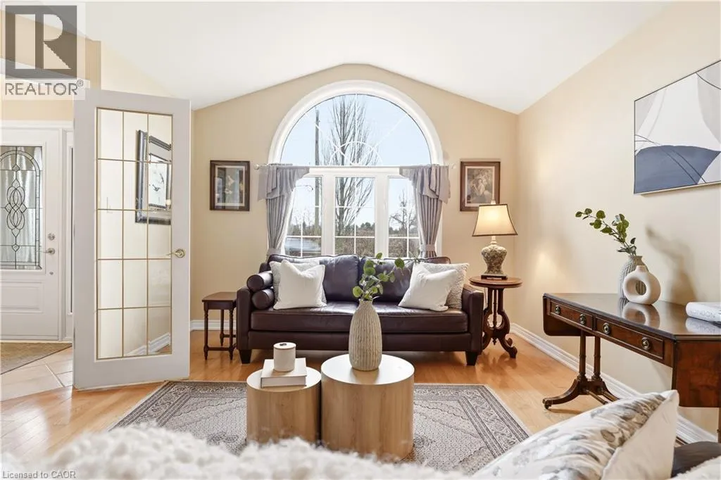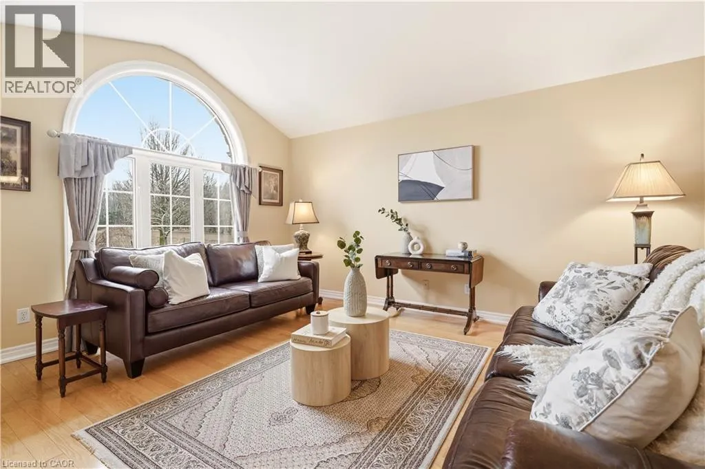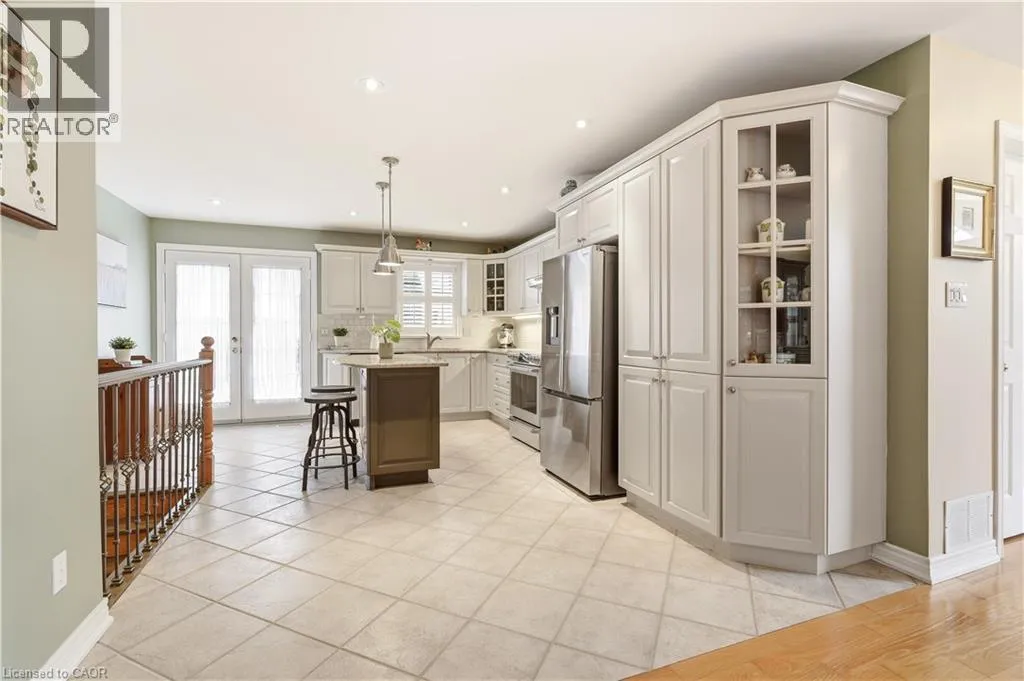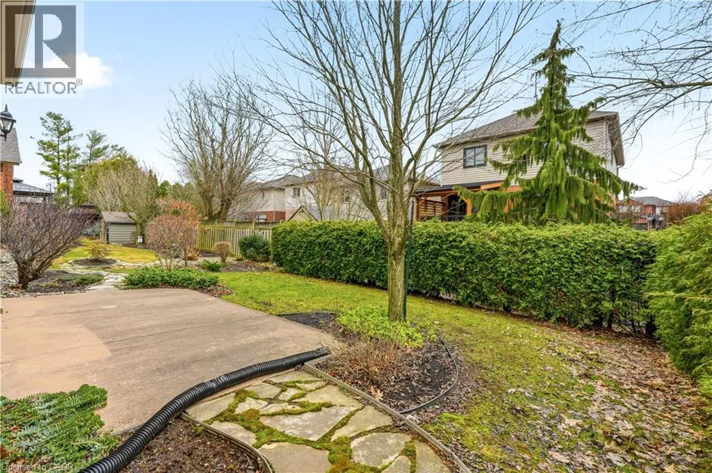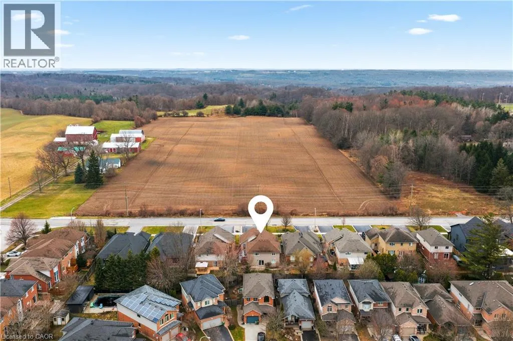From Wilson St, take Jerseyville Rd W This beautifully maintained detached backsplit in Ancaster, built in 2001, offers the perfect blend of space, comfort, and low-maintenance living. With almost 3,000 square feet of finished living space, this move-in ready home features 4 bedrooms, 2 full bathrooms, and a convenient powder room on the main level. The bright, open-concept main floor seamlessly connects the living room, dining area, and kitchenâideal for both everyday living and entertaining. The kitchen is thoughtfully designed with an eat-at island, stone countertops, and sleek stainless steel appliances, all complemented by neutral finishes throughout. Upstairs, youâll find three generously sized bedrooms and a stunning, recently renovated spa-like bathroom complete with a soaker tub, double sink vanity, and a walk-in glass shower. Carpet-free throughout, the home showcases rich hardwood flooring that adds warmth and continuity. The lower level features a spacious family room with a cozy gas fireplace and walkout access to a private backyard retreatâyour own secret garden filled with low-maintenance perennials and lush greenery. This level also includes a separate fourth bedroom and full bathroom, making it ideal for guests or extended family. The basement offers additional flexibility with a mostly finished space perfect for a home office, in-law suite, or additional bedroom, along with ample storage throughout. The exterior impresses with exceptional curb appeal, a large double driveway, and a double car garage with parking for 6+ vehicles. Set in a quiet, tranquil neighbourhood surrounded by picturesque farmland, yet just minutes to shopping, everyday amenities, and quick access to the 403 and the Linc, this home truly offers the best of both worlds. (id:27476)