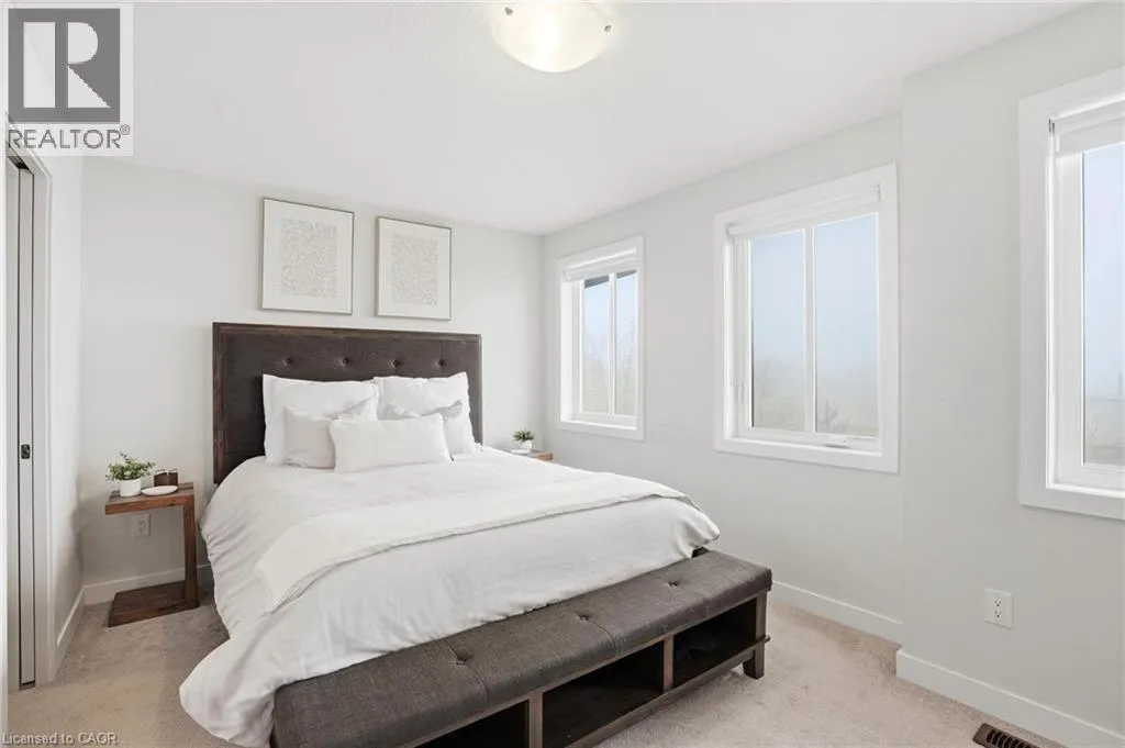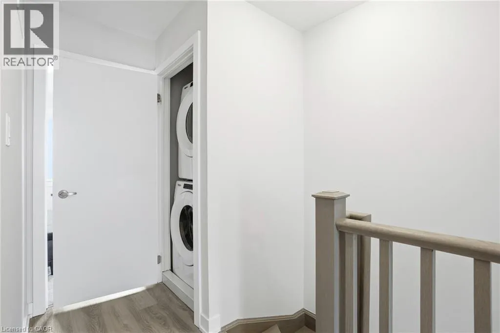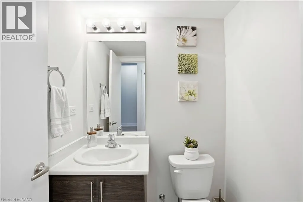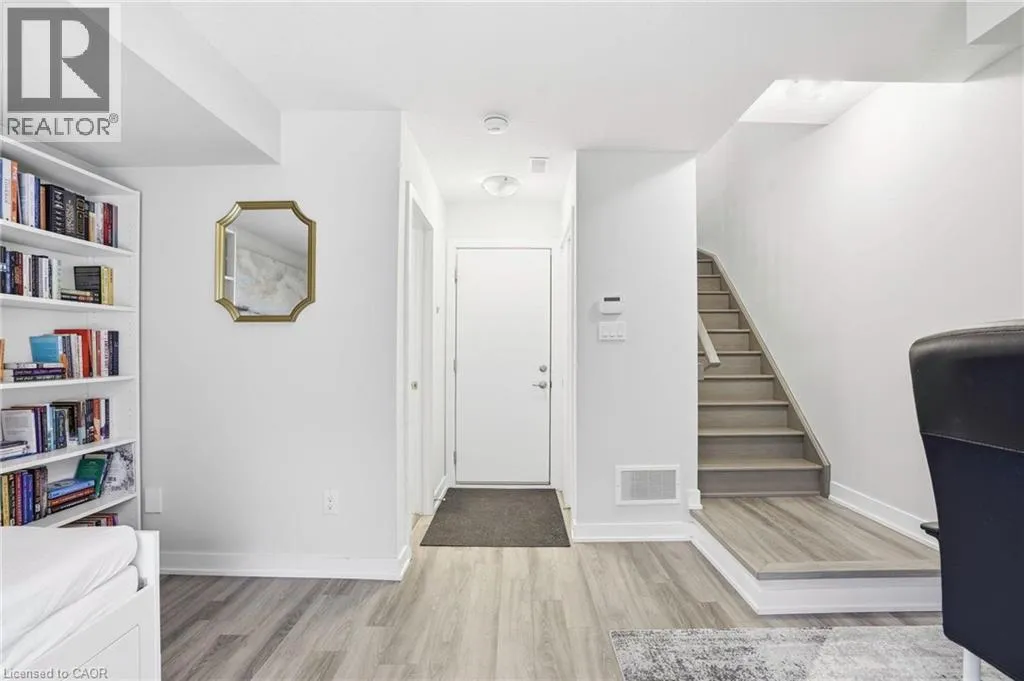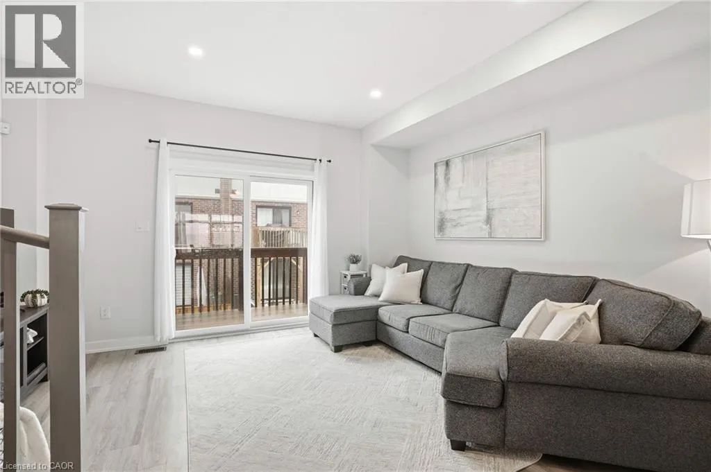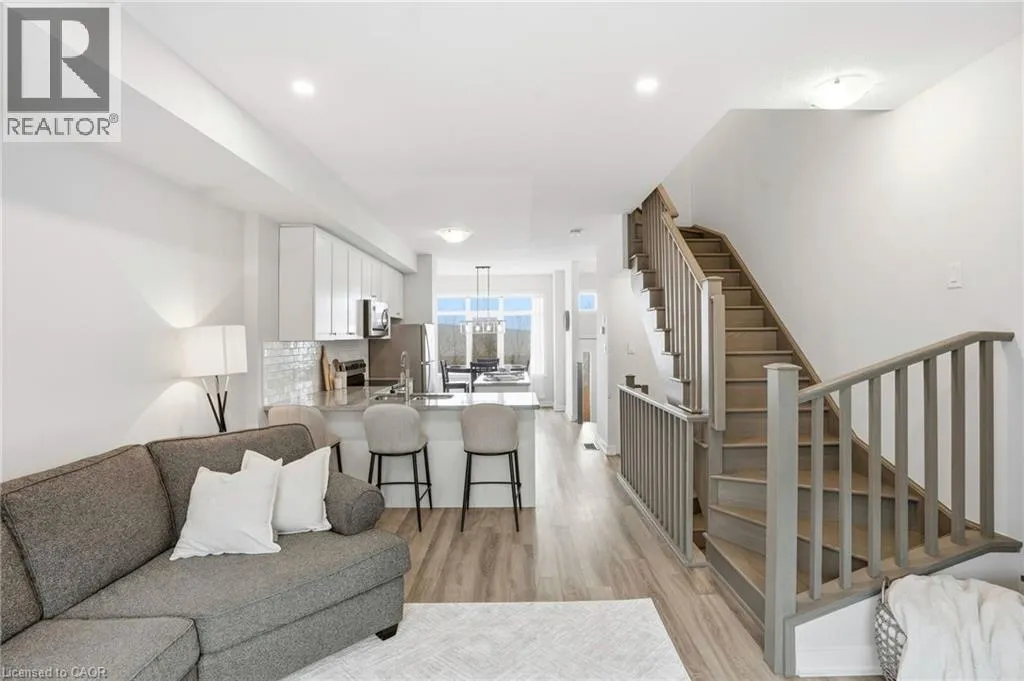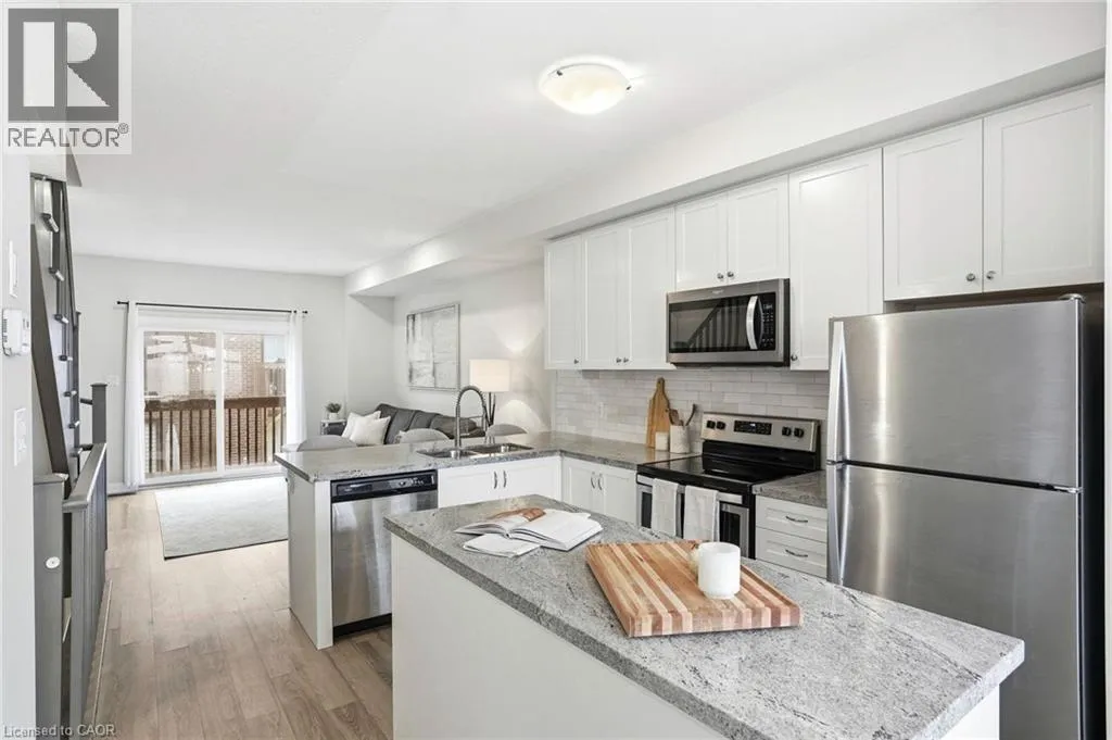 Welcome to this bright and thoughtfully designed 2-bedroom, 1.5-bathroom home in sought-after Ancaster. With 9-foot ceilings, the second floor features an open-concept living room, kitchen, and dining area. The spacious living room with pot lights opens onto a deck, while the kitchen includes granite countertops, shaker cabinetry, an island, and a peninsula with seating that provides additional storage and counter space. Upstairs, you will find two generously sized bedrooms, a full bathroom, convenient third-floor laundry, and a primary bedroom with a walk-in closet. The ground level, easily converted into a third bedroom or used as a guest suite, offers inside access to the garage, a powder room, and a family room with a walkout to the backyard. Low condo fees of $115/month cover building insurance, common elements, and parking. A standout opportunity in a highly desirable Ancaster location. (id:27476)