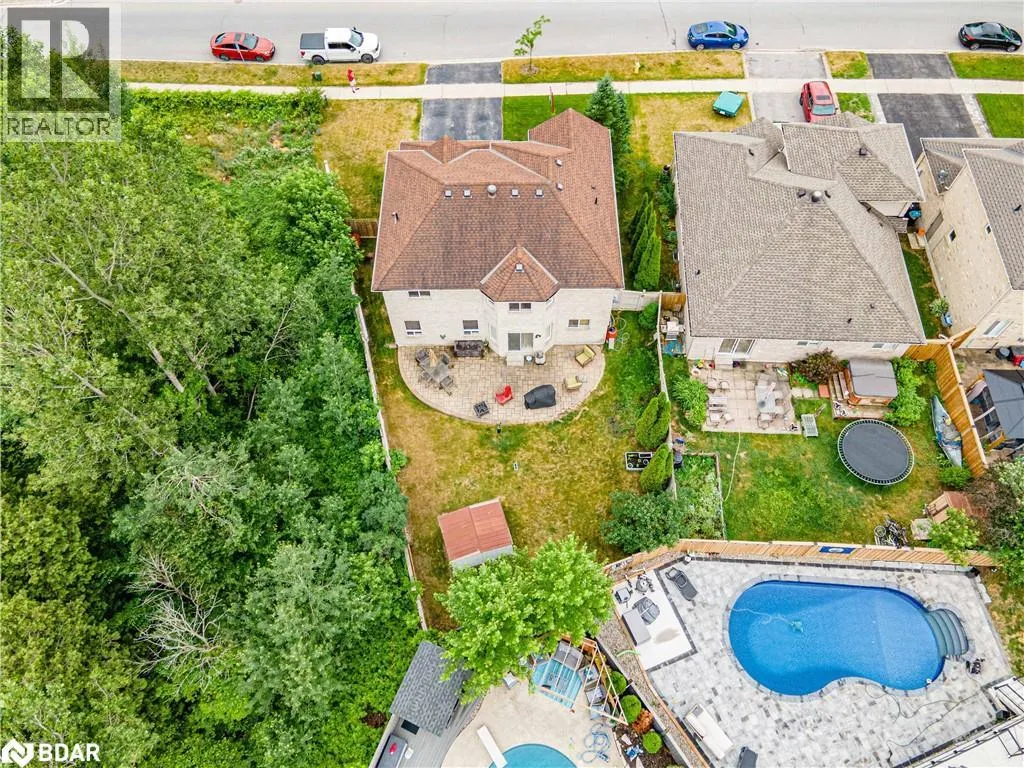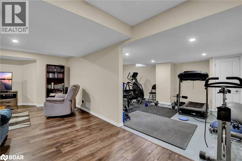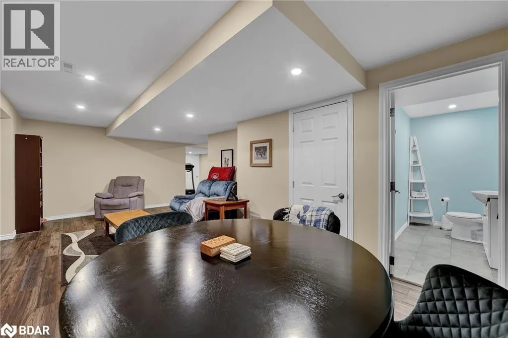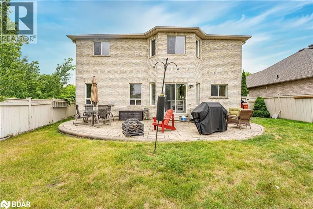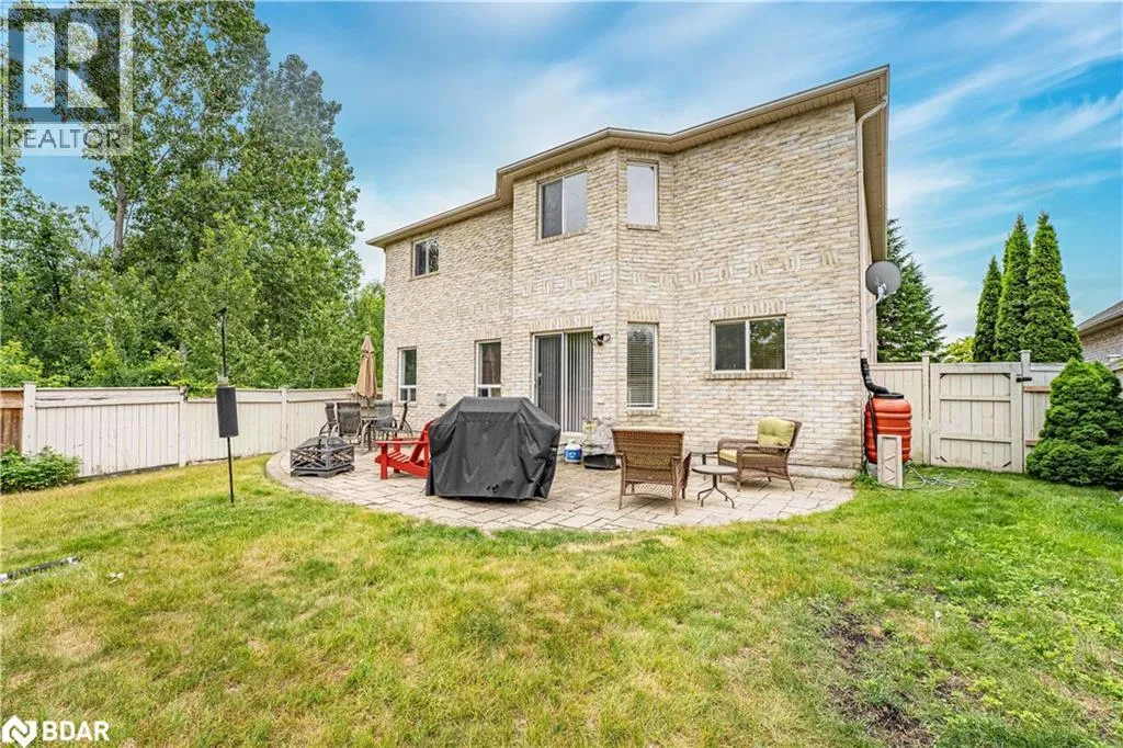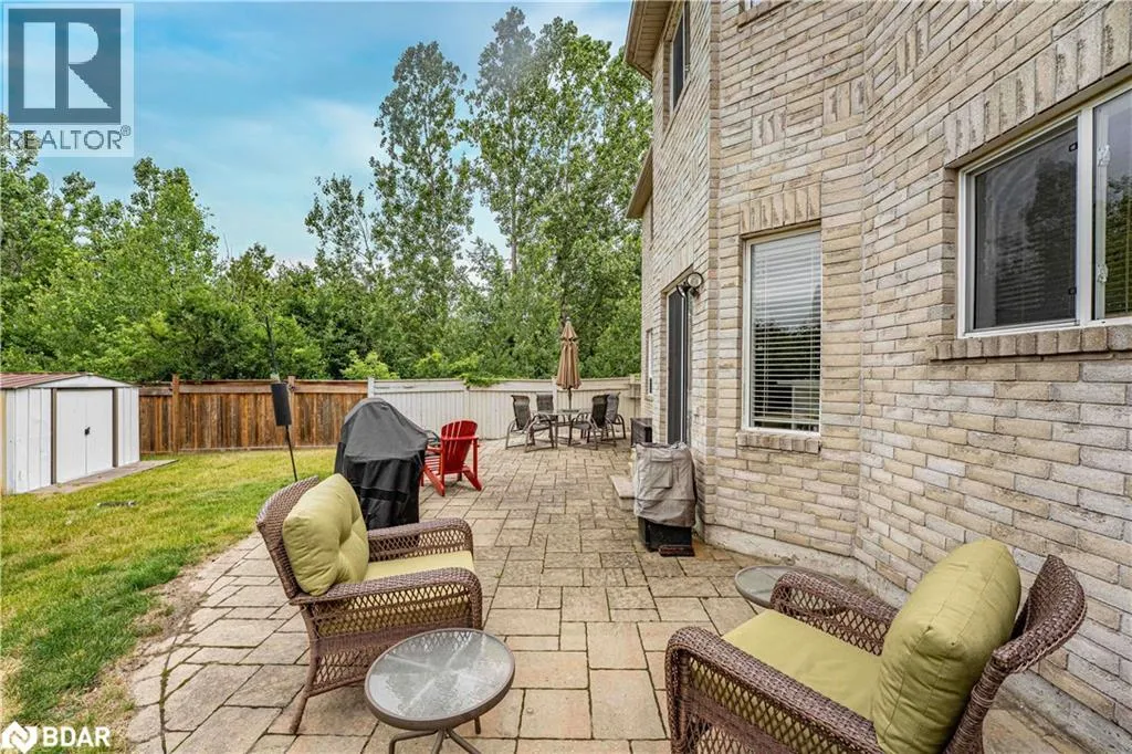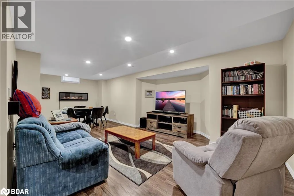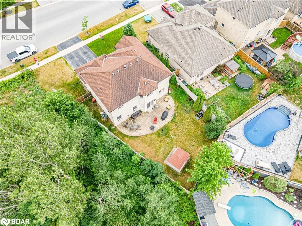 5TH LINE TO GOLD PARK GATE Discover this exceptionally well-maintained, all-brick family home at 4 Gold Park Gate in Angus. Boasting over 2800 sq. ft. of fully finished living space on great lot. This spacious and bright home features a double-door entry, 9-ft ceilings, and a formal living and dining room with hardwood floors and pot lighting. The beautifully renovated eat-in kitchen (2022) showcases quartz counters, a stylish backsplash, new appliances, pot lighting, a breakfast bar, and a walkout to a stone patio and fenced yard with a garden shed. The cozy family room offers a gas fireplace and hardwood flooring. A main floor laundry with garage access and a powder room add convenience. Upstairs, the refinished primary suite includes a walk-in closet, an ensuite with a new vanity and shower, and a relaxing corner jet tub. Three additional generously sized bedrooms complete the second floor. The finished basement features a large rec room, a 2-pc bath, and ample storage. Upgrades include new garage doors (2021), central air (2024), and a water softener. (id:27476)