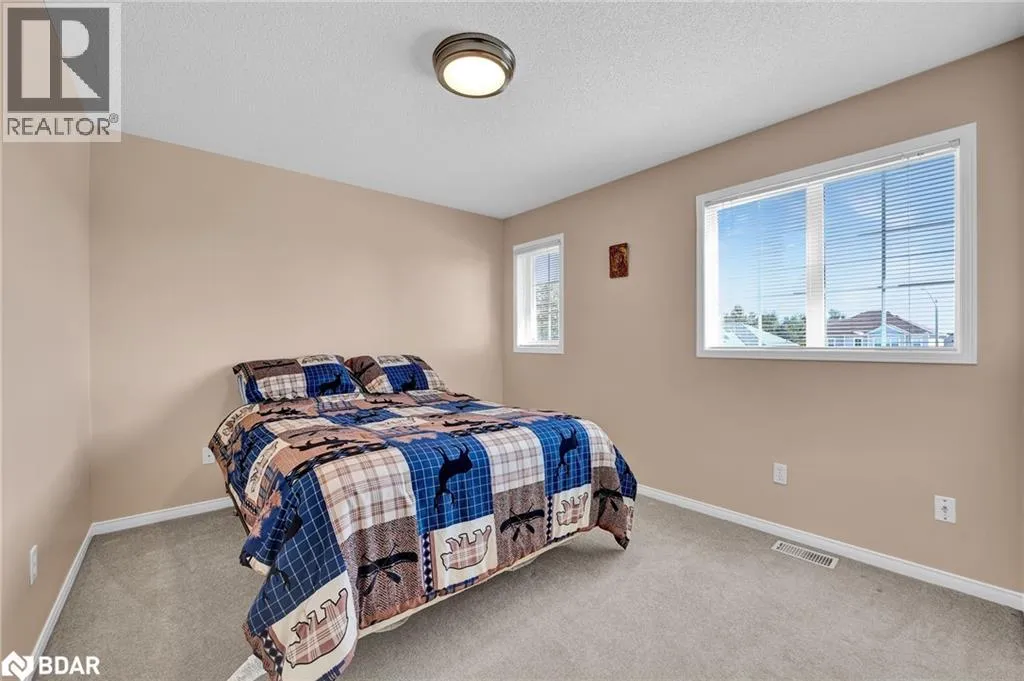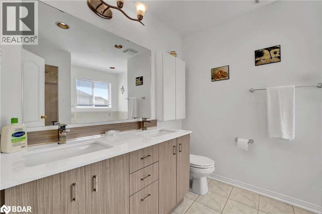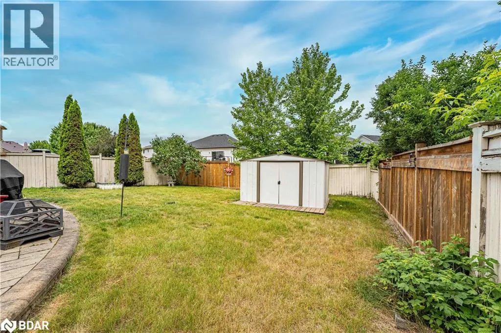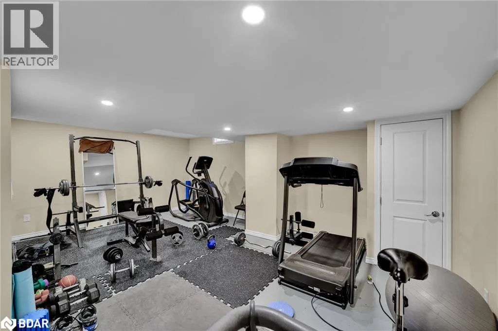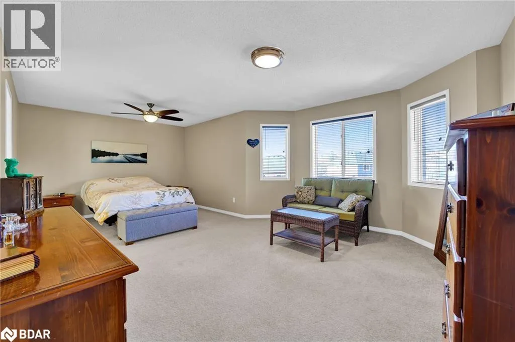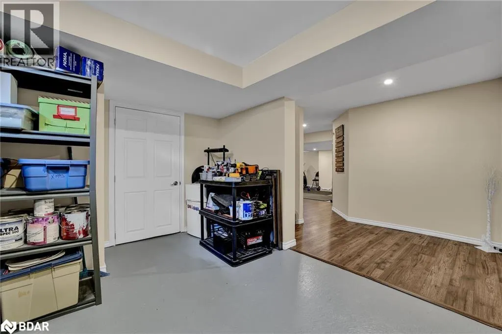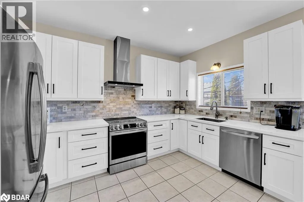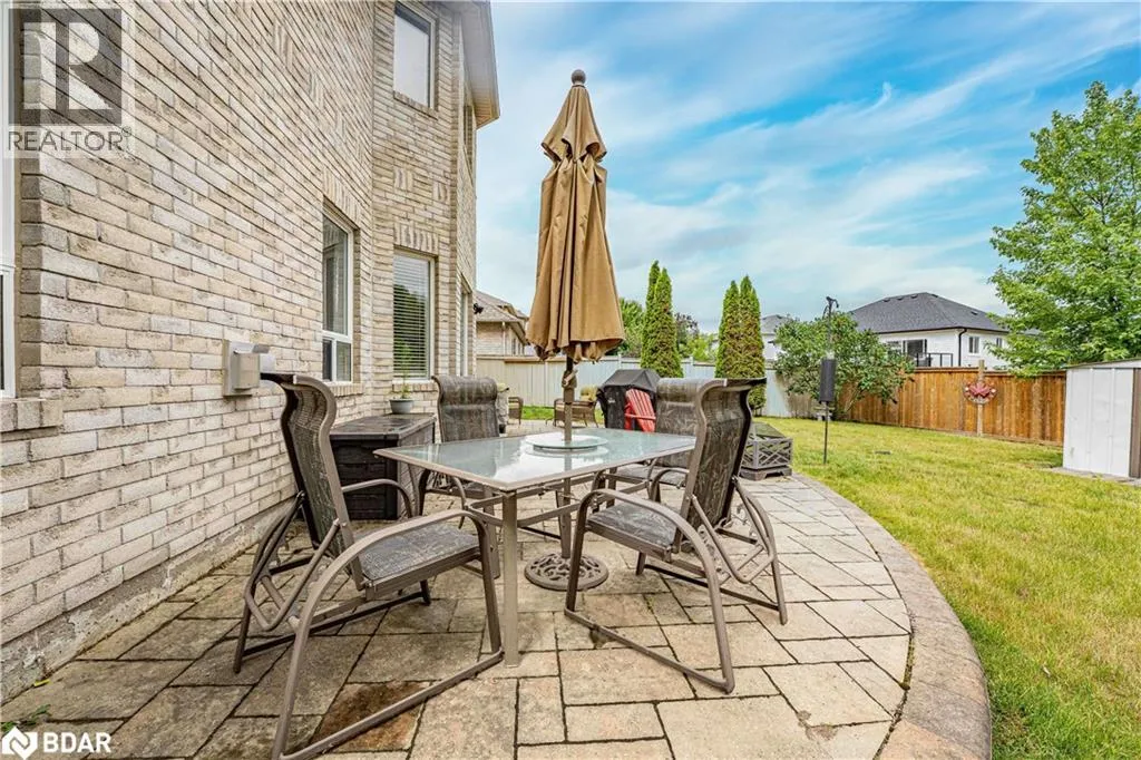 5TH LINE TO GOLD PARK GATE Discover this exceptionally well-maintained, all-brick family home at 4 Gold Park Gate in Angus. Boasting over 2800 sq. ft. of fully finished living space on great lot. This spacious and bright home features a double-door entry, 9-ft ceilings, and a formal living and dining room with hardwood floors and pot lighting. The beautifully renovated eat-in kitchen (2022) showcases quartz counters, a stylish backsplash, new appliances, pot lighting, a breakfast bar, and a walkout to a stone patio and fenced yard with a garden shed. The cozy family room offers a gas fireplace and hardwood flooring. A main floor laundry with garage access and a powder room add convenience. Upstairs, the refinished primary suite includes a walk-in closet, an ensuite with a new vanity and shower, and a relaxing corner jet tub. Three additional generously sized bedrooms complete the second floor. The finished basement features a large rec room, a 2-pc bath, and ample storage. Upgrades include new garage doors (2021), central air (2024), and a water softener. (id:27476)