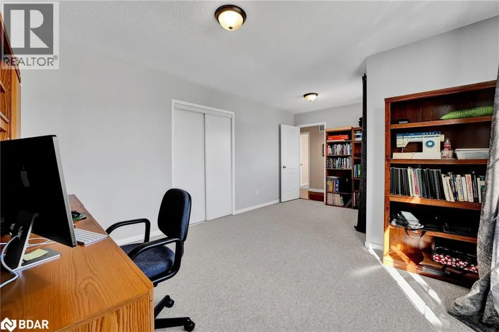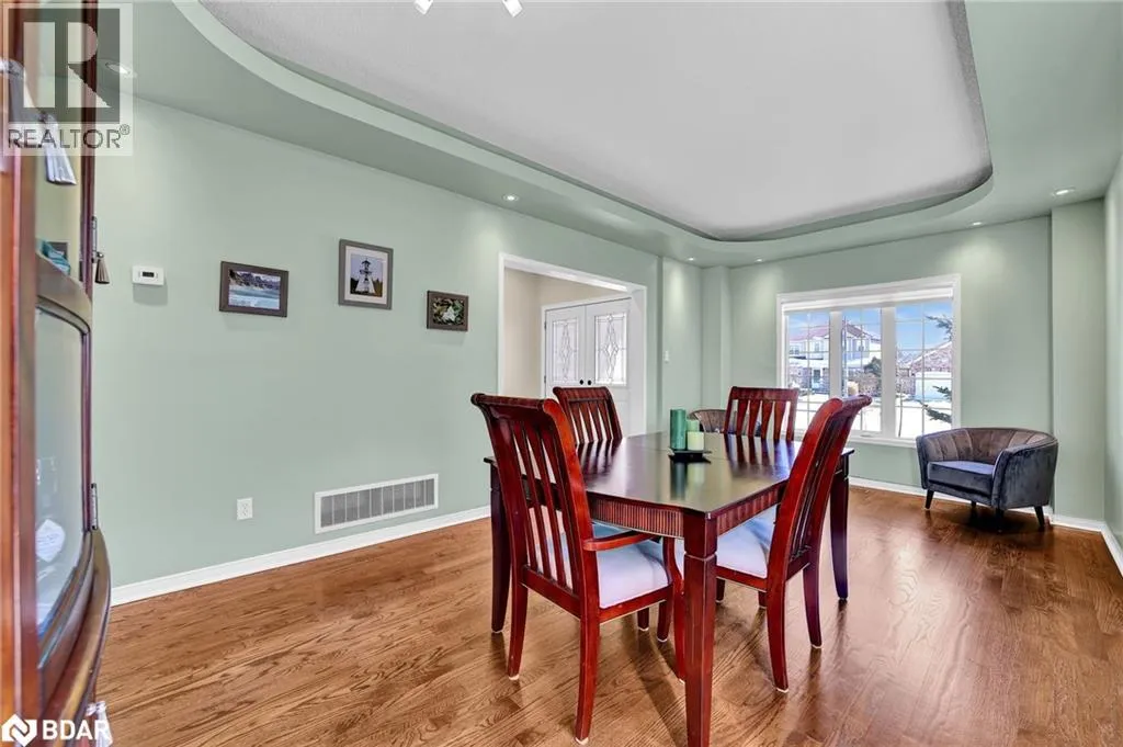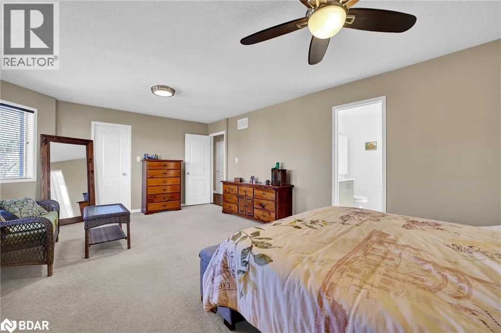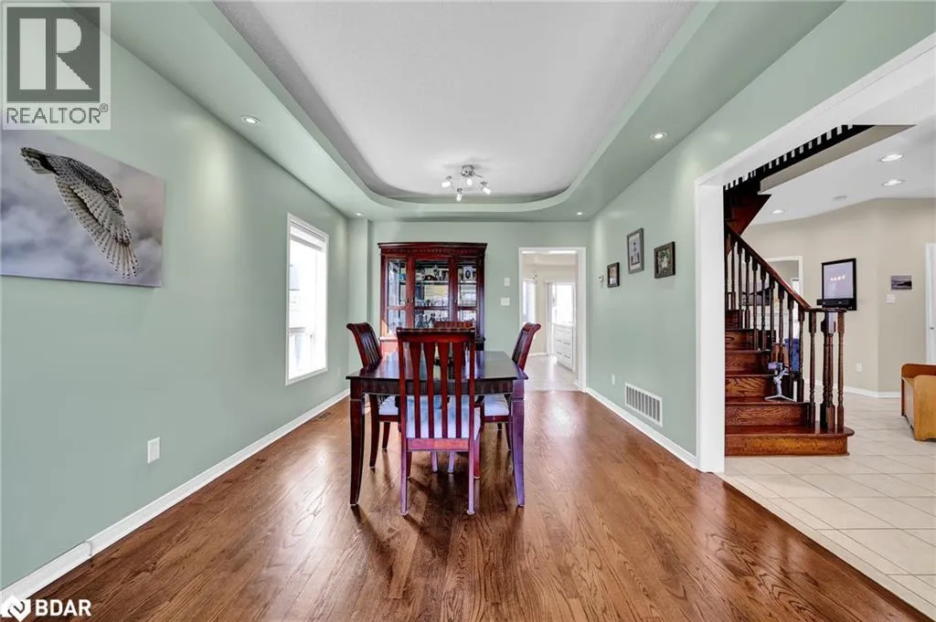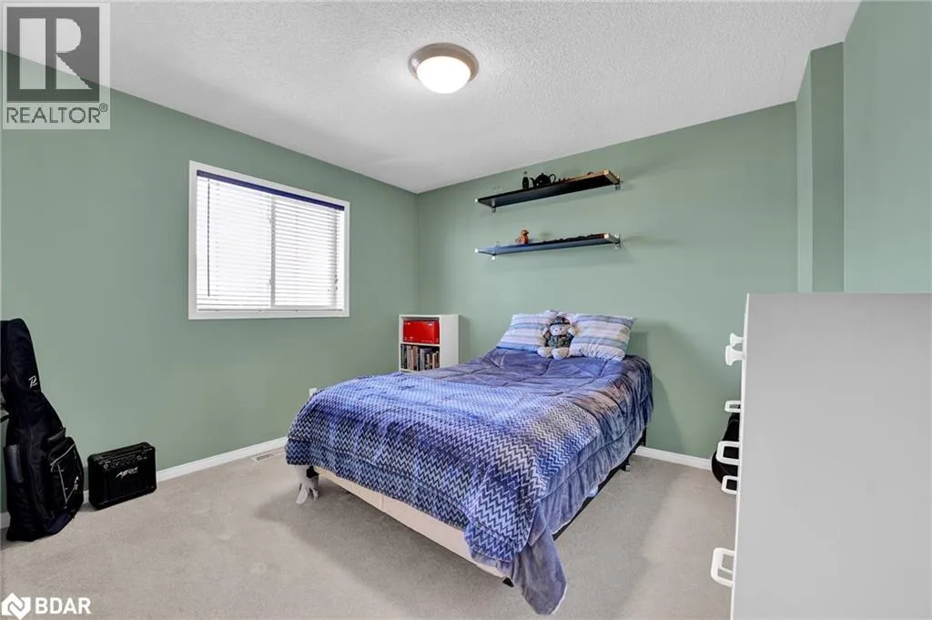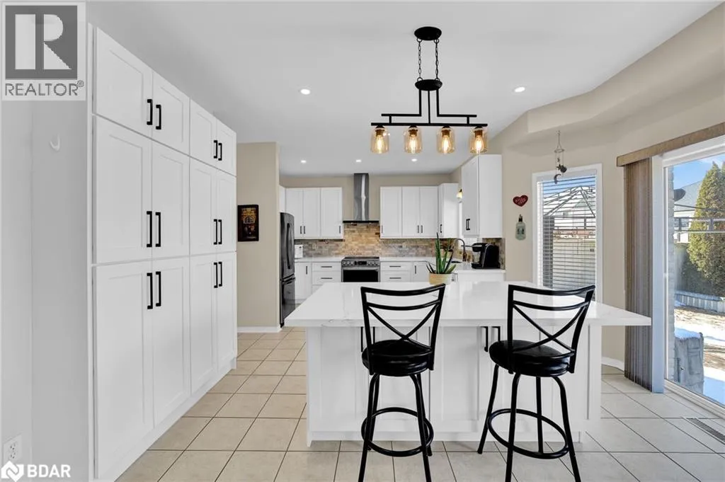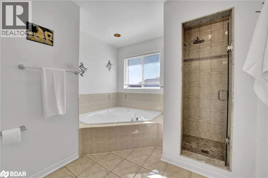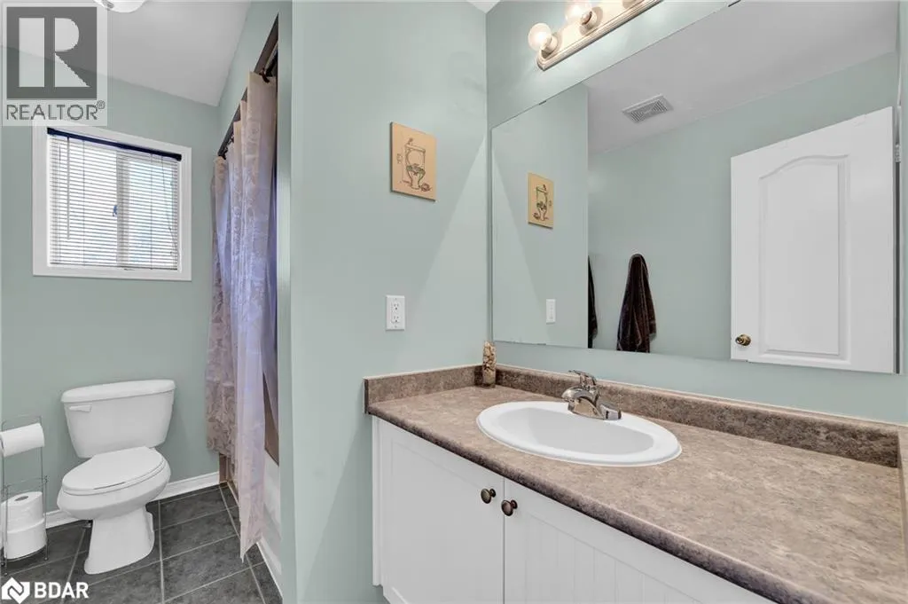 5TH LINE TO GOLD PARK GATE Discover this exceptionally well-maintained, all-brick family home at 4 Gold Park Gate in Angus. Boasting over 2800 sq. ft. of fully finished living space on great lot. This spacious and bright home features a double-door entry, 9-ft ceilings, and a formal living and dining room with hardwood floors and pot lighting. The beautifully renovated eat-in kitchen (2022) showcases quartz counters, a stylish backsplash, new appliances, pot lighting, a breakfast bar, and a walkout to a stone patio and fenced yard with a garden shed. The cozy family room offers a gas fireplace and hardwood flooring. A main floor laundry with garage access and a powder room add convenience. Upstairs, the refinished primary suite includes a walk-in closet, an ensuite with a new vanity and shower, and a relaxing corner jet tub. Three additional generously sized bedrooms complete the second floor. The finished basement features a large rec room, a 2-pc bath, and ample storage. Upgrades include new garage doors (2021), central air (2024), and a water softener. (id:27476)