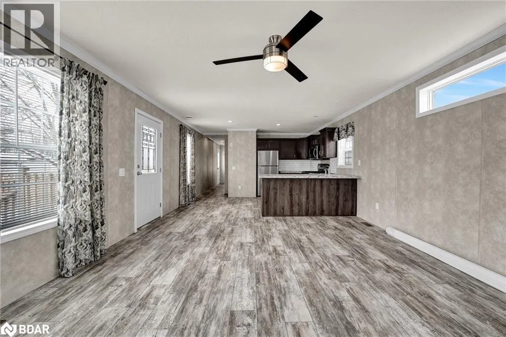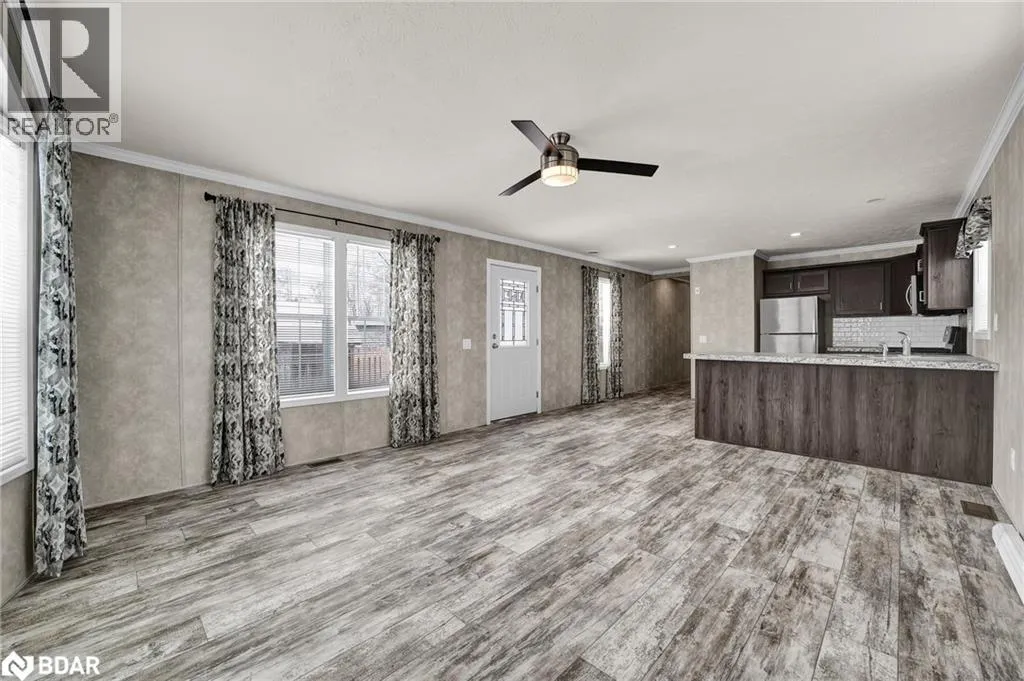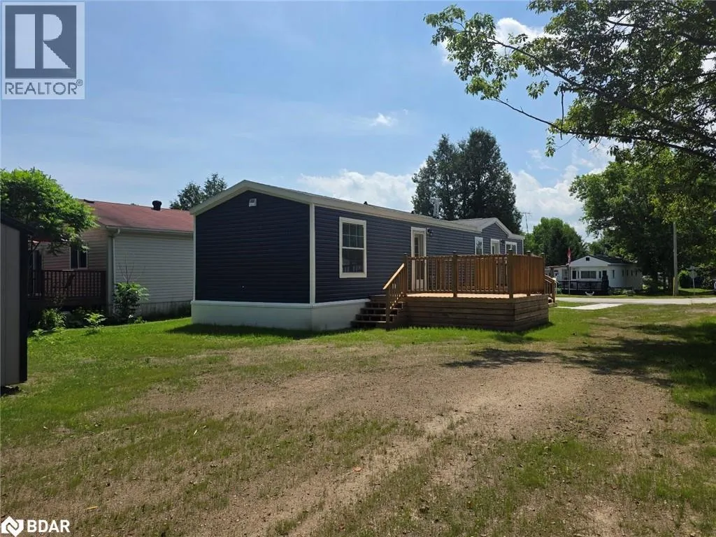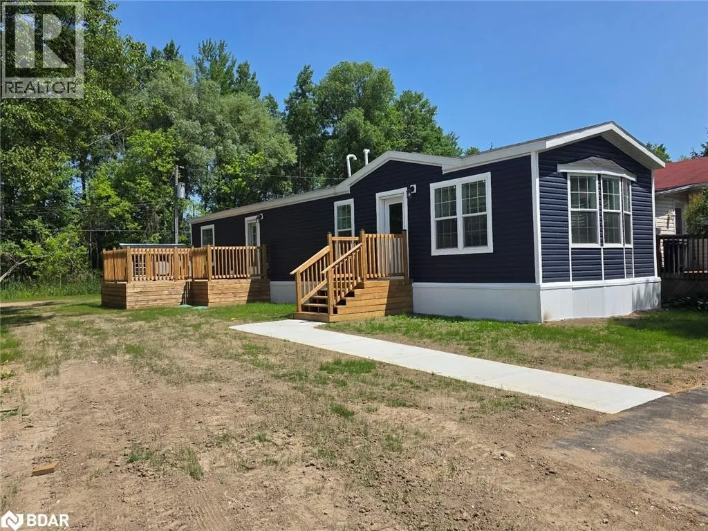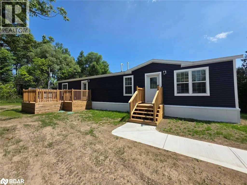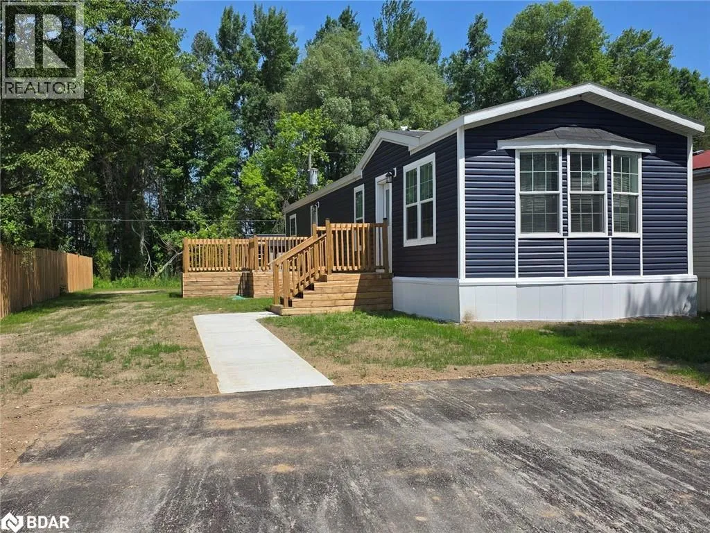 Cty Rd 10 to 25th Side Road to Shamrock Cres This brand-new mobile home is situated in a quiet, well-maintained Angus park, offering a peaceful and convenient lifestyle. Built on a solid concrete pad with hurricane straps, this home is designed for durability and comfort. Step inside to discover a spacious, open-concept layout featuring a modern eat-in kitchen with sleek stainless steel appliances and stylish laminate flooring throughout - completely carpet-free! The home offers two generously sized bedrooms, a full bathroom with ample storage, and a walkout to 2 brand-new decks - front and back, overlooking a fully fenced yard on a generous lot. A new garden shed provides additional storage space, while the double driveway adds extra convenience. All appliances are brand new, including a gas dryer. Located just minutes from all amenities, with quick access to Angus, Base Borden, and Alliston, this home is perfect for those seeking comfort, style, and easy living. Fees $511.52/Month include taxes, water, and road maintenence. Don't miss this fantastic opportunity - schedule your viewing today! (id:27476)