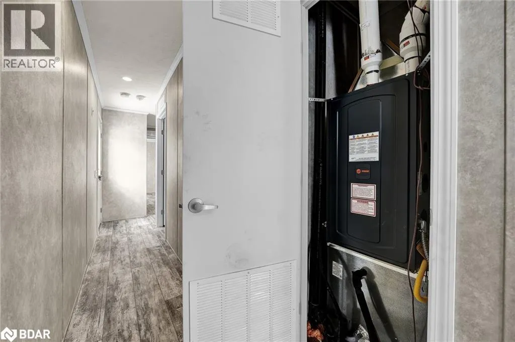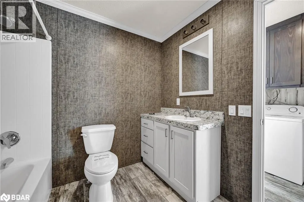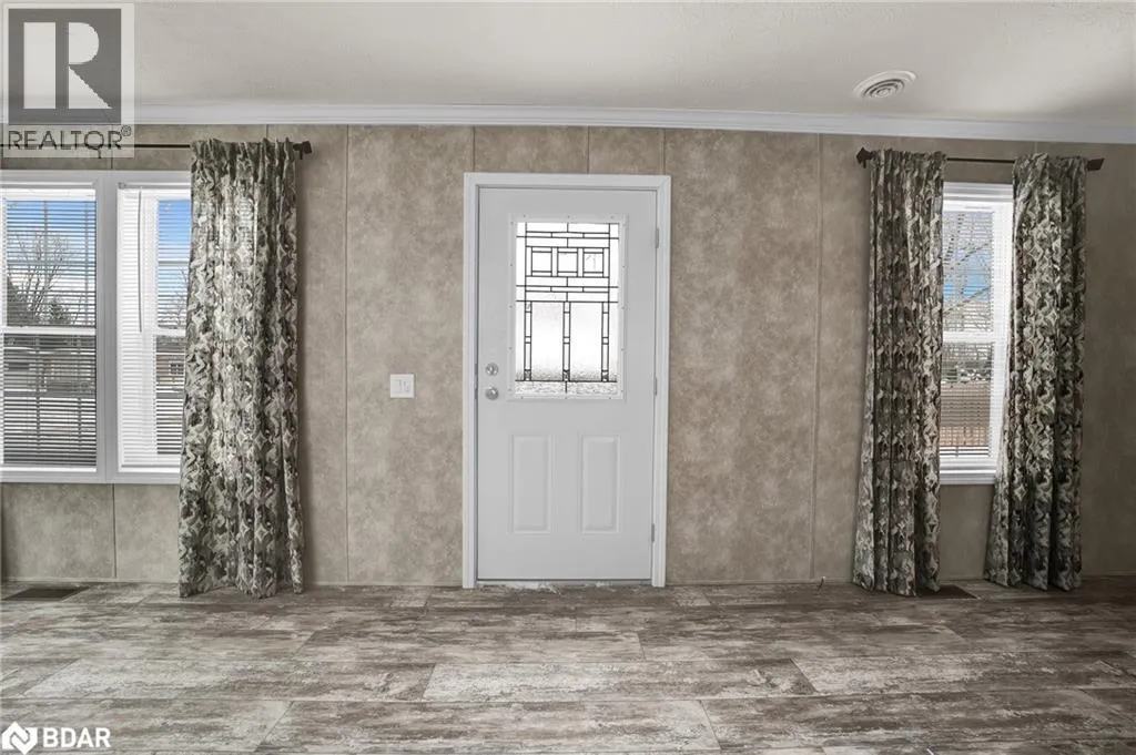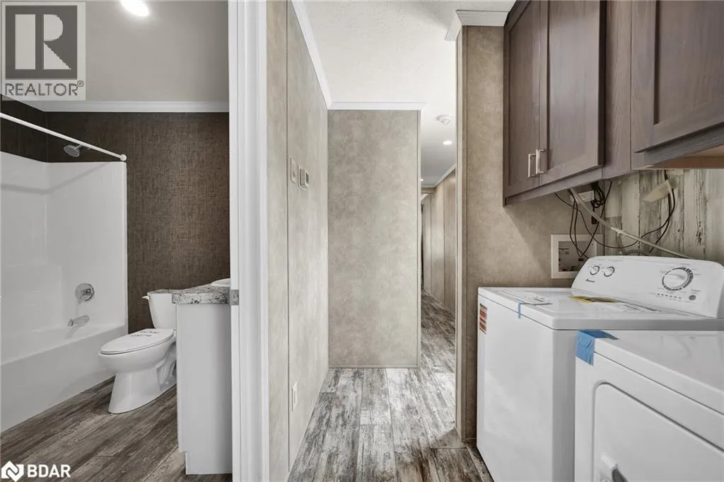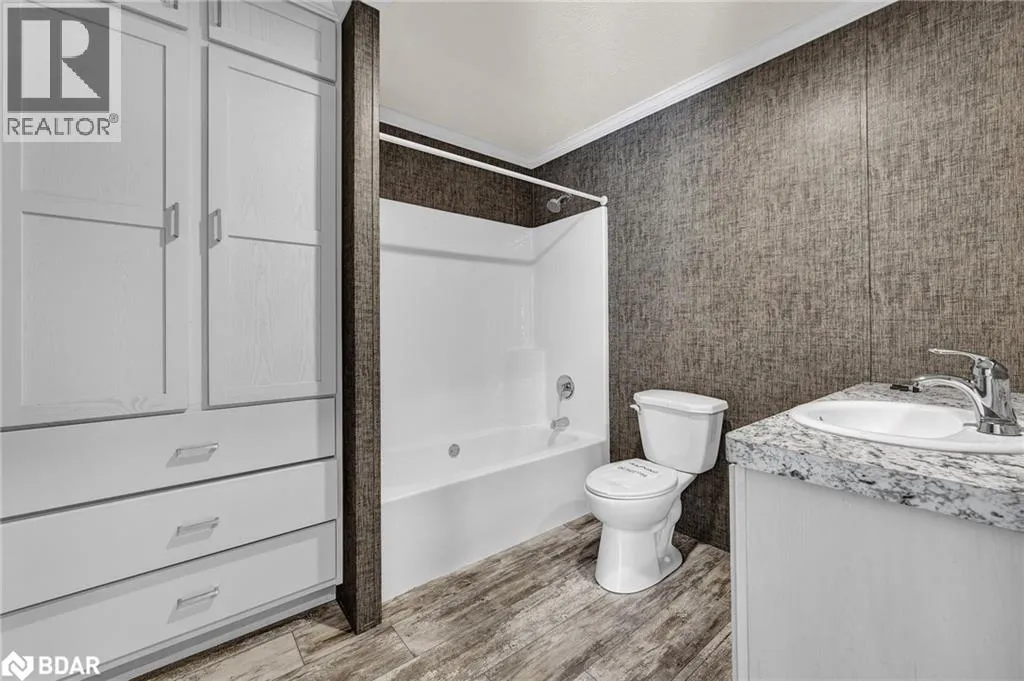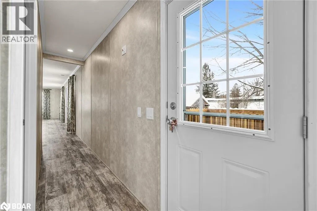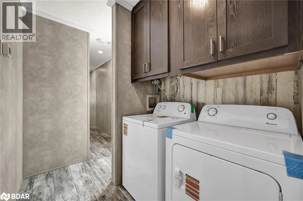 Cty Rd 10 to 25th Side Road to Shamrock Cres This brand-new mobile home is situated in a quiet, well-maintained Angus park, offering a peaceful and convenient lifestyle. Built on a solid concrete pad with hurricane straps, this home is designed for durability and comfort. Step inside to discover a spacious, open-concept layout featuring a modern eat-in kitchen with sleek stainless steel appliances and stylish laminate flooring throughout - completely carpet-free! The home offers two generously sized bedrooms, a full bathroom with ample storage, and a walkout to 2 brand-new decks - front and back, overlooking a fully fenced yard on a generous lot. A new garden shed provides additional storage space, while the double driveway adds extra convenience. All appliances are brand new, including a gas dryer. Located just minutes from all amenities, with quick access to Angus, Base Borden, and Alliston, this home is perfect for those seeking comfort, style, and easy living. Fees $511.52/Month include taxes, water, and road maintenence. Don't miss this fantastic opportunity - schedule your viewing today! (id:27476)