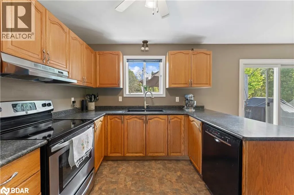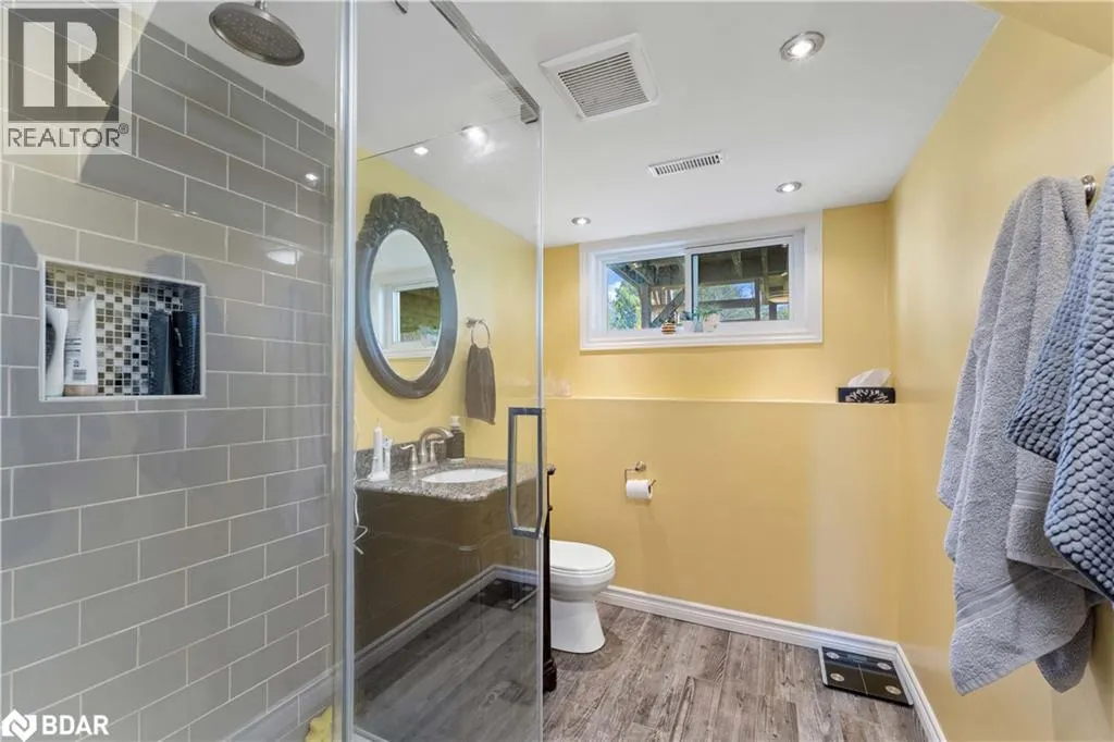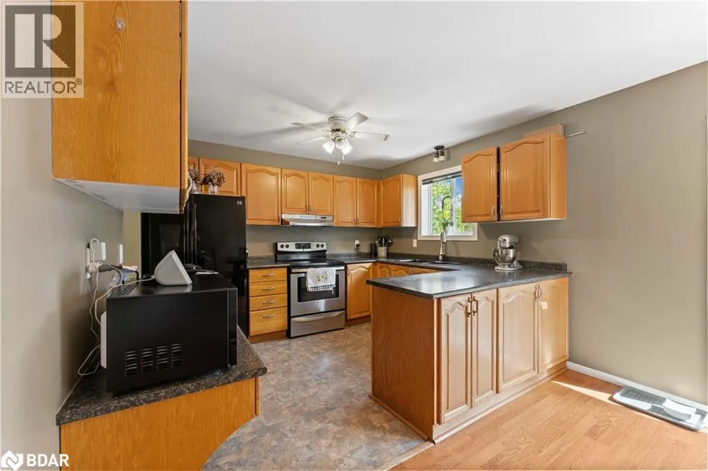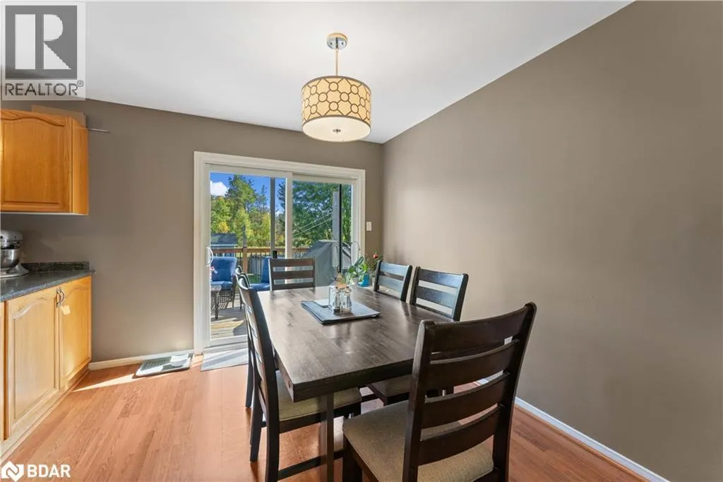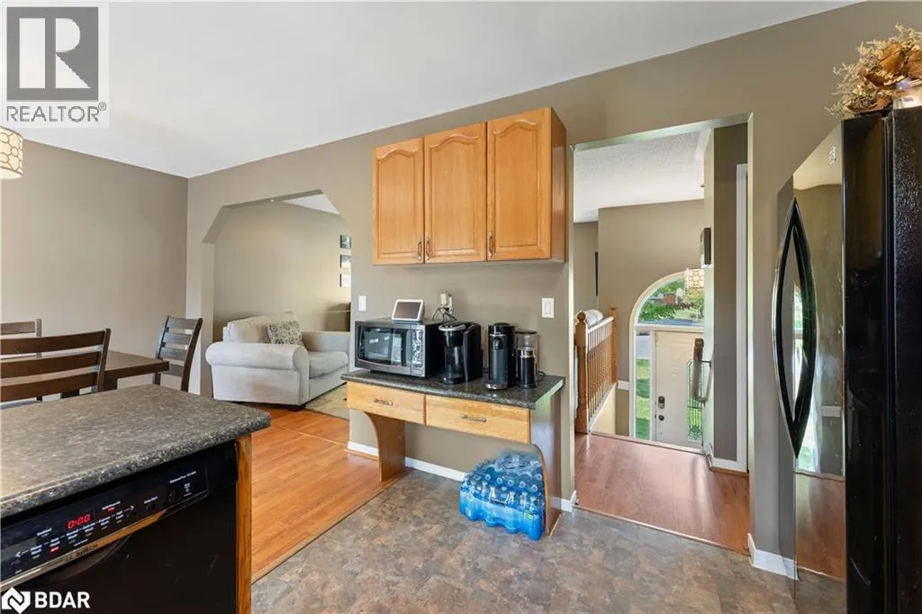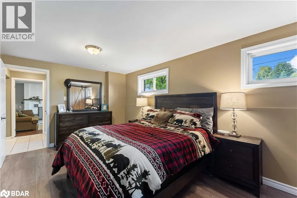 Mill St to Roth St Welcome to this beautifully maintained raised bungalow with in-law potential, offering the perfect blend of comfort, space, and convenience located in the town of Angus. The bright, open-concept main floor features a spacious kitchen overlooking the dining area with a walkout to the rear deck - ideal for entertaining. A large living room with a striking bay window floods the space with natural light. The main level includes three generous bedrooms, including a primary suite with direct access to a semi-ensuite bathroom. Downstairs, the fully finished basement - with a separate entrance - boasts a massive family room with a cozy gas fireplace, a fourth bedroom, a 3-piece bathroom with heated floors, and plenty of storage. This home is fully plumbed for natural gas, including a BBQ hookup on the back deck. The oversized, fully fenced backyard backs directly onto Leclair Park, offering serene views and no rear neighbours. A detached, insulated shop equipped with a heat pump, 30-amp service, heating, and air conditioning provides the perfect space for hobbies, a workshop, or additional storage. Conveniently located within walking distance to schools, shopping, trails, and town amenities, and just a short drive to Base Borden, Alliston, and Barrie - this home has it all. Dont miss your chance to make it yours! (id:27476)