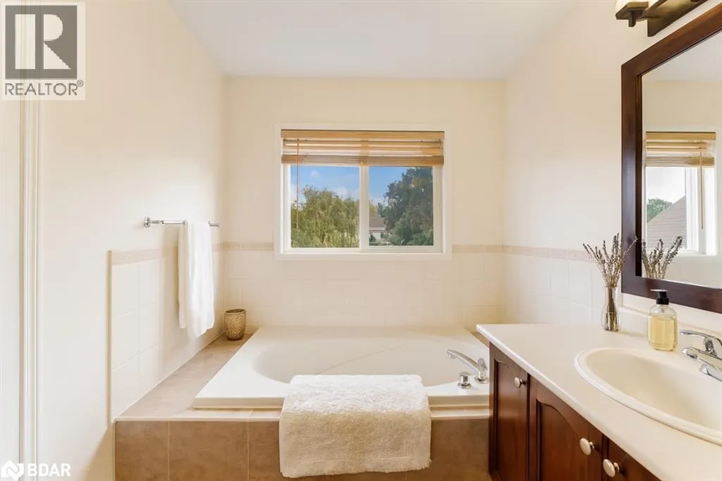5TH LINE TO GOLD PARK TO BROOKSIDE TO TRUAX Welcome to this perfect family home offering space, style, and comfort throughout located in popular Angus subdivision! The main floor features a huge eat-in kitchen with ceramic tile, a large island, and a walkout to the back patio â ideal for family meals and entertaining. The open-concept dining area showcases beautiful hardwood floors and flows seamlessly into a cozy yet bright living room with 9-foot ceilings. Convenient inside entry from the double-car garage adds everyday practicality. Upstairs, youâll find four massive bedrooms, including a spacious primary suite complete with a full ensuite featuring a relaxing soaker tub and separate corner shower. The upper-level laundry adds extra convenience for busy family life. The finished basement provides even more living space with both a family room and a recreation area, plus plenty of storage. Outside, enjoy the large fenced yard with an above-ground pool â perfect for summer fun! Located within walking distance to parks, trails, and a school bus stop, and just a short drive to all amenities, Base Borden, Alliston, and Barrie â this home truly has it all. (id:27476)