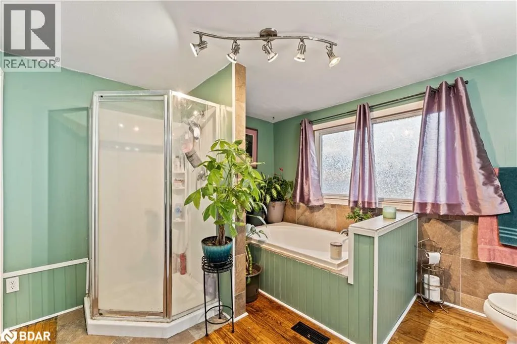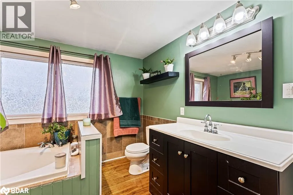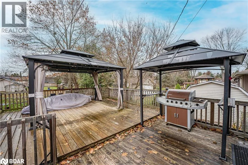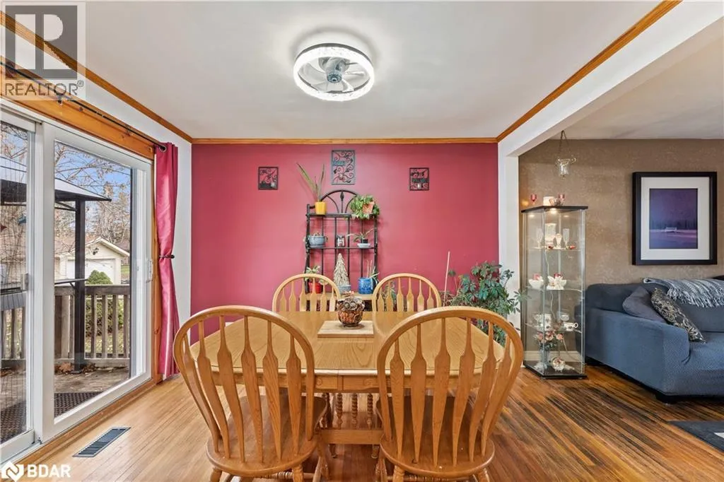 CENTRE TO SHELLY TO CALFORD Charming Family Home in Quiet Angus Neighbourhood! Ideally situated just steps from a local park and minutes to grocery stores, restaurants, and schools, this welcoming home blends comfort, convenience, and family-friendly living. Bright, sun-filled rooms showcase hardwood floors and a functional layout. The spacious kitchen opens to the dining room and living room, with a walkout to a large deck overlooking the fully fenced backyardâperfect for kids, pets, and outdoor entertaining. A cozy family room with a wood-burning fireplace adds warmth and charm. The oversized detached garage is a standout feature, offering excellent workspace and storage for any hobbyist or handyman. With 4 generous bedrooms, 3 bathrooms, and plenty of storage, thereâs room for everyone to live comfortably. Recent updates include a reshingled roof (2018) and two separate sump pumps for peace of mind. Just a short drive to CFB Borden, Alliston, and Barrie, this is an ideal spot for commuters and growing families. (id:27476)