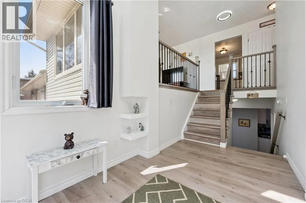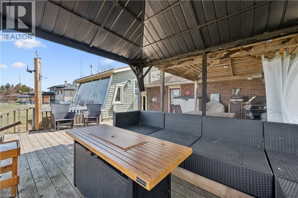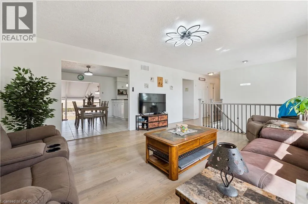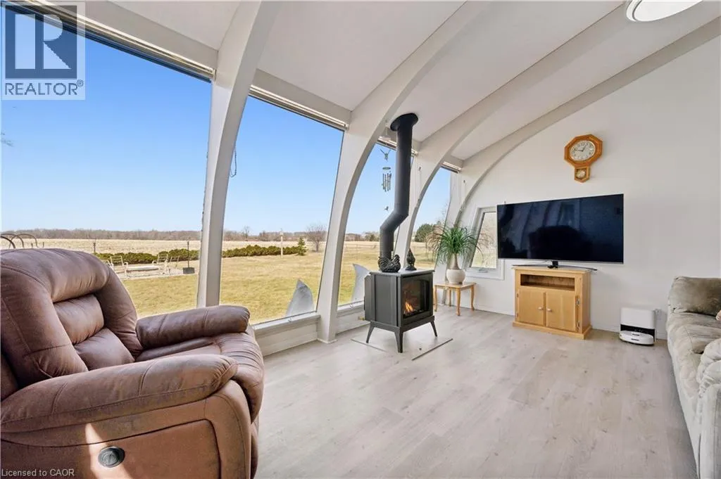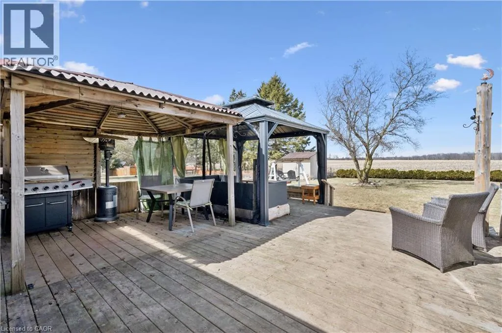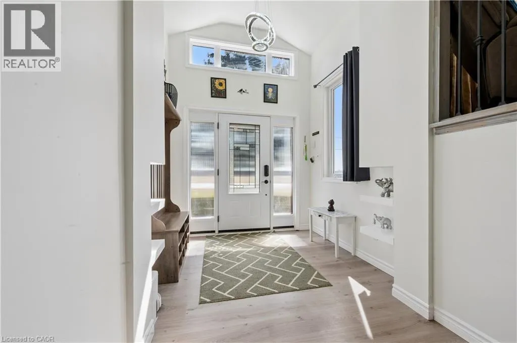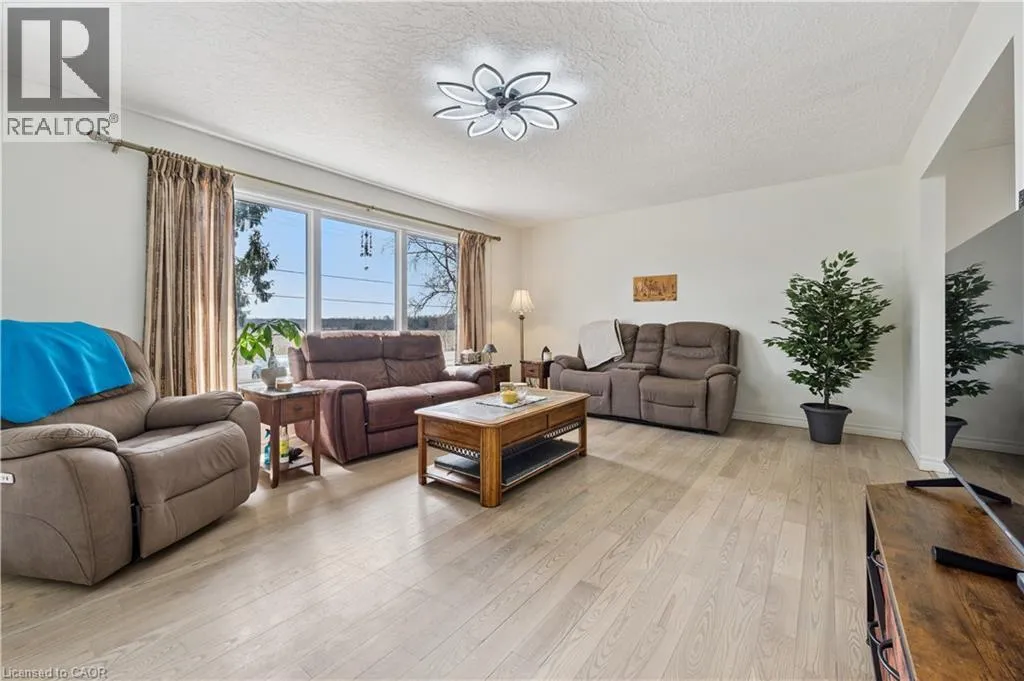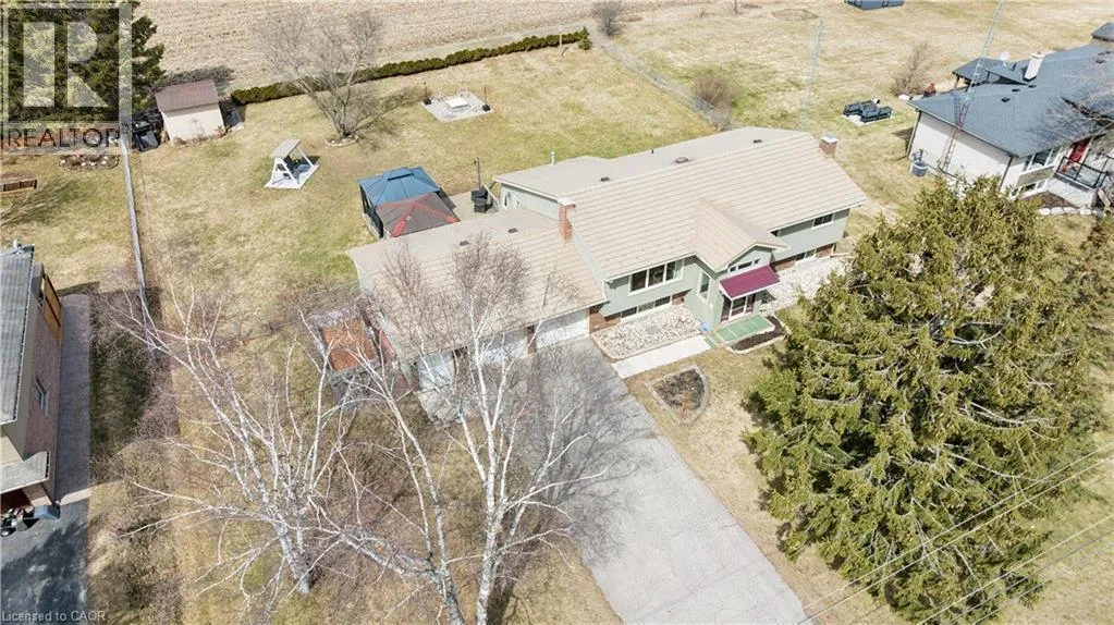 Wellington Rd 51 and Wellington Rd 7 Set on a 0.52-acre lot in Ariss, 7422 Wellington Road 51 presents country living w/convenience of nearby urban amenities. This fully renovated, 2,756 sqft raised bungalow backs onto open farm fields, offering a serene backdrop of uninterrupted views. The main living area boasts a large window with expansive views of the front yard while the dining room adjacent to the kitchen welcomes guests for daily meals. Thoughtfully updated from top to bottom including a refreshed kitchen w/crisp white cabinetry, Corian countertops, new hardware, sink, & modern fixtures. Three spacious bedrooms & renovated family bathroom, a luxurious soaker tub, updated finishes, & double-sink Corian vanity. An all year sunroom with views of the backyard is found here. The fully finished lower level extends the living space w/stylish rec room & a cozy gas fireplace, custom built-in cabinetry, a feature wall with mounted 65â TV, & well-appointed bar area. An additional versatile room w/large lookout windows, luxury vinyl plank flooring, and a 2nd full bathroom are on this level with the laundry room. Upgrades include refinished hardwood floors, iron spindles, LED lighting, updated trim and doors, & designer paint. A standout feature is the impressive front foyer addition, offering soaring ceiling heights & abundance of natural light. Major mechanical improvements, including a new well pump & system updates, humidifier, & a Generac generator and rough-in for laundry upstairs. A fully fenced yard, expansive deck, & covered gazebo w/durable steel roof, updated insulated siding, a 12x12 shed, a rare 2.5-bay garage, & parking for 6 cars. Enjoy nearby outdoor destinations such as Guelph Lake Conservation Area, scenic trails, and local farmersâ markets, all while being conveniently connected to major routes for commuting. This is a truly turn-key residence that masterfully blends space, style, and lifestyleâan elevated country retreat without compromise. (id:27476)