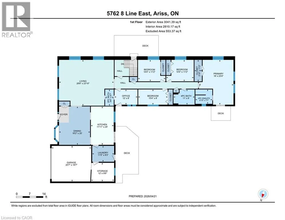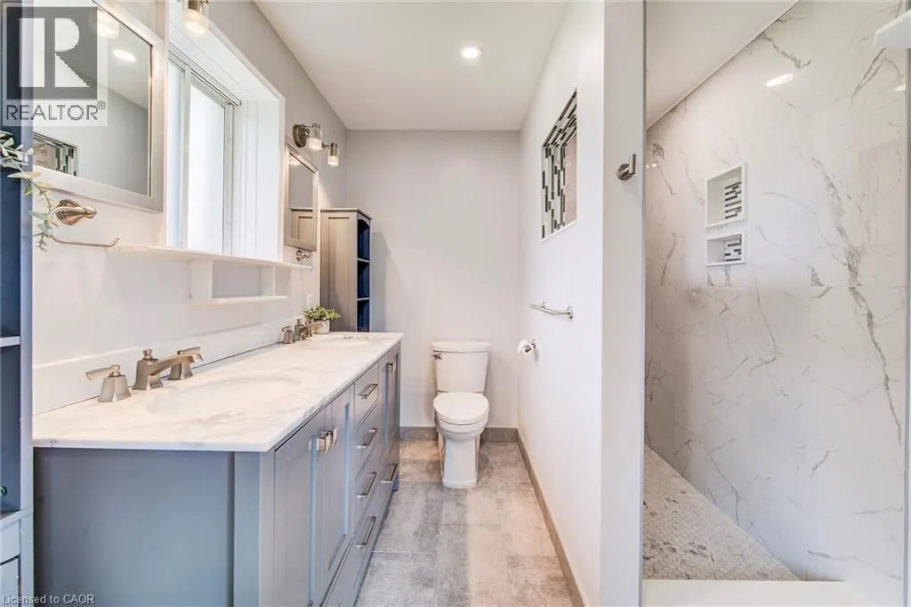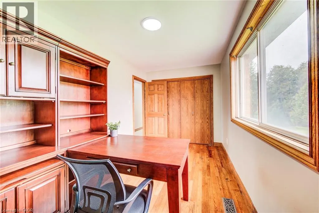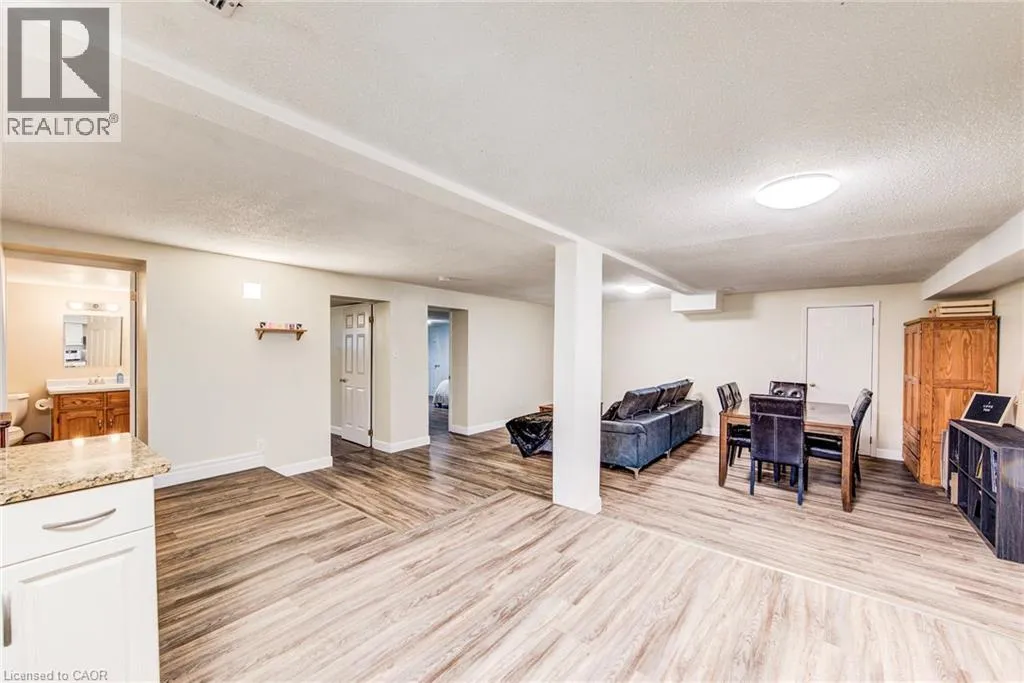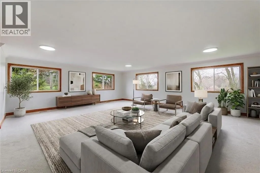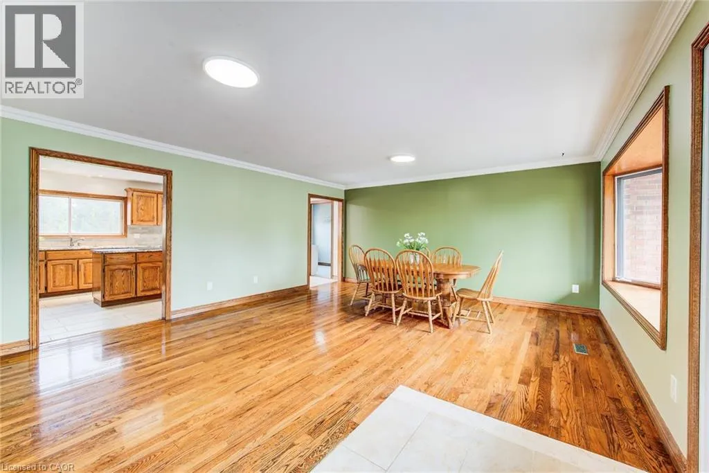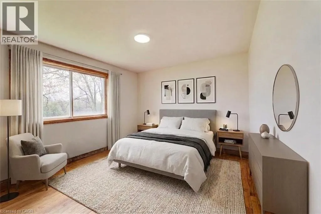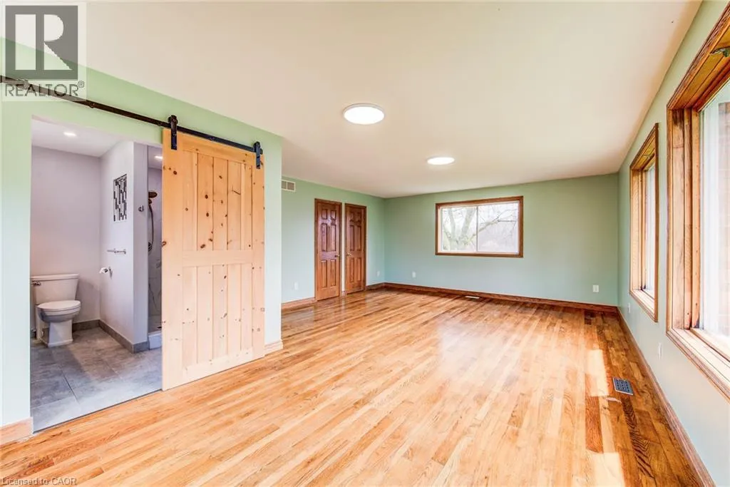 Set on just over 1 acre just outside the Village of Ariss, this spacious bungalow offers the perfect mix of country space and everyday convenience, with easy access to Guelph, Waterloo, Kitchener, Elmira and surrounding areas. Offering over 5,900 sq ft of finished living space, the main floor is a standout with 5 bedrooms, a bright oversized living room, and a separate bedroom wing that keeps family living both functional and private. Hardwood flooring, rich oak trim, and large windows add warmth throughout. The kitchen walks out to a generous deck overlooking the property, and the primary bedroom features a private ensuite and its own deck. The lower level adds incredible flexibility with a massive rec room, a 1 bedroom in-law suite, and a fully self-contained 2 bedroom accessory apartment with a separate entrance, ideal for multi-generational living or potential income opportunities. The wide driveway and double car garage offer ample parking for multiple vehicles. The property itself provides a private, open setting surrounded by mature trees. Recent updates include furnace (2024), A/C (2025), new front and side doors, and armour stone landscaping. A rare opportunity to own a home with this much space, inside and out, in a peaceful setting just minutes from the city. Photos are virtually staged. (id:27476)