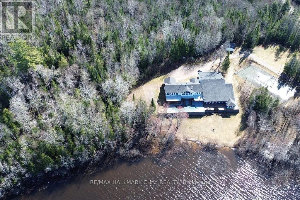 Cross Streets: Hwy 11 & Pickerel & Jack Lake Rd. ** Directions: Highway 11 North to Burks Falls, take Pickerel & Jack Lake Rd. out to Pickerel Lake. 2318 is the first property on the west edge of the lake. HUGE PRICE REDUCTION!!! The BUYER will definitely benefit here! Ultimate FOUR-SEASON Lakeside Retreat! Welcome to 2318 Pickerel & Jack Lake Road, an unparalleled private estate offering 1,752 feet of pristine shoreline and 34.7 acres of secluded beauty on Pickerel Lake. This 6,290 sq ft year-round home is the ultimate family resort or corporate retreat, designed for those who love active living and recreation. INDOOR SPORTS & WELLNESS CENTER - Enjoy the climate-controlled indoor heated pool and an exercise room, all complemented by a change room, shower and washroom. Challenge friends on the dual racquetball/squash court with an adjustable glass wall or unwind in the hot tub. OUTDOOR & GAMES ENTERTAINMENT - Take the competition outside on the full-size tennis court, inlaid shuffleboard court, and natural sand beach. Indoors, the expansive games room features a pool table and shuffleboard table, perfect for endless fun. Walk, ride or hike your own private trails throughout the property. Or ride the snowmobile trails (OFSC D123) nearby. LUXURY & COMFORT - The open-concept great room boasts a cathedral pine-accented ceiling, woodstove, and breathtaking lake views. Multiple walkouts lead to an expansive deck, ideal for sunset gatherings. A bright dining area, modern kitchen with stainless steel appliances and granite countertops, and main-level laundry facilities offer ease and functionality. ADDITIONAL FEATURES - A heated triple-car garage, whole-home Generac generator, and hundreds of kilometers of snowmobile trails just outside your door make this the ultimate four-season retreat. Also a detached double car drive shed, ideal for storing all of your sports toys! Whether for family gatherings, corporate escapes, or rental potential, this property delivers luxury, recreation, and tranquility in one breathtaking package. House built 1995 - Pool section built in 1998. Please note that furniture in photos is staged. Book your private tour today! (id:27476)