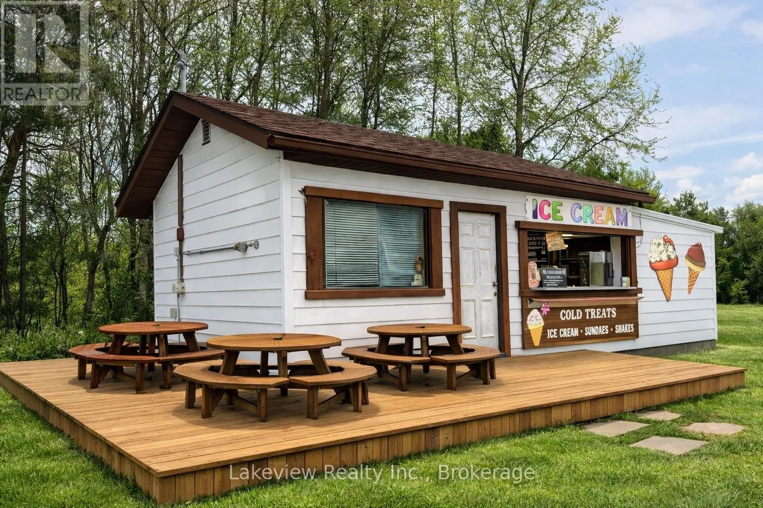 Cross Streets: Three Mile Lake & Katrine Rd. ** Directions: North Highway 11 , exit Katrine Rd west toward Three Mile Lake Rd, site corner of Katrine Rd and Three Mile Lake Rd. Thriving, turn-key chip truck business with an established 30-year history and loyal Katrine / Little Doe Lake community clientele. Prime, high-traffic riverside location just off the Hwy 11 cloverleaf. Limited nearby dining options helping drive steady local demand plus strong seasonal and pass-through traffic. Currently operated seasonally (May-Oct) with potential to extend the season and/or operate year-round . Seller indicates strong profitability (approx. 32% margin after owner draw). Sale includes two fully equipped mobile chip trucks plus a BBQ/smoker trailer, covered dining area, newer fire suppression & exhaust system, and 9 picnic tables. Second chip truck features electric stainless flat-top grills-ideal for expanding the menu (e.g., breakfast items such as pancakes, bacon & eggs, and more). Low overhead and affordable lease . Owner offers training. Classic Canadian favourites complemented by popular Korean beef dishes, along with sandwiches, plates and wraps. (id:27476)