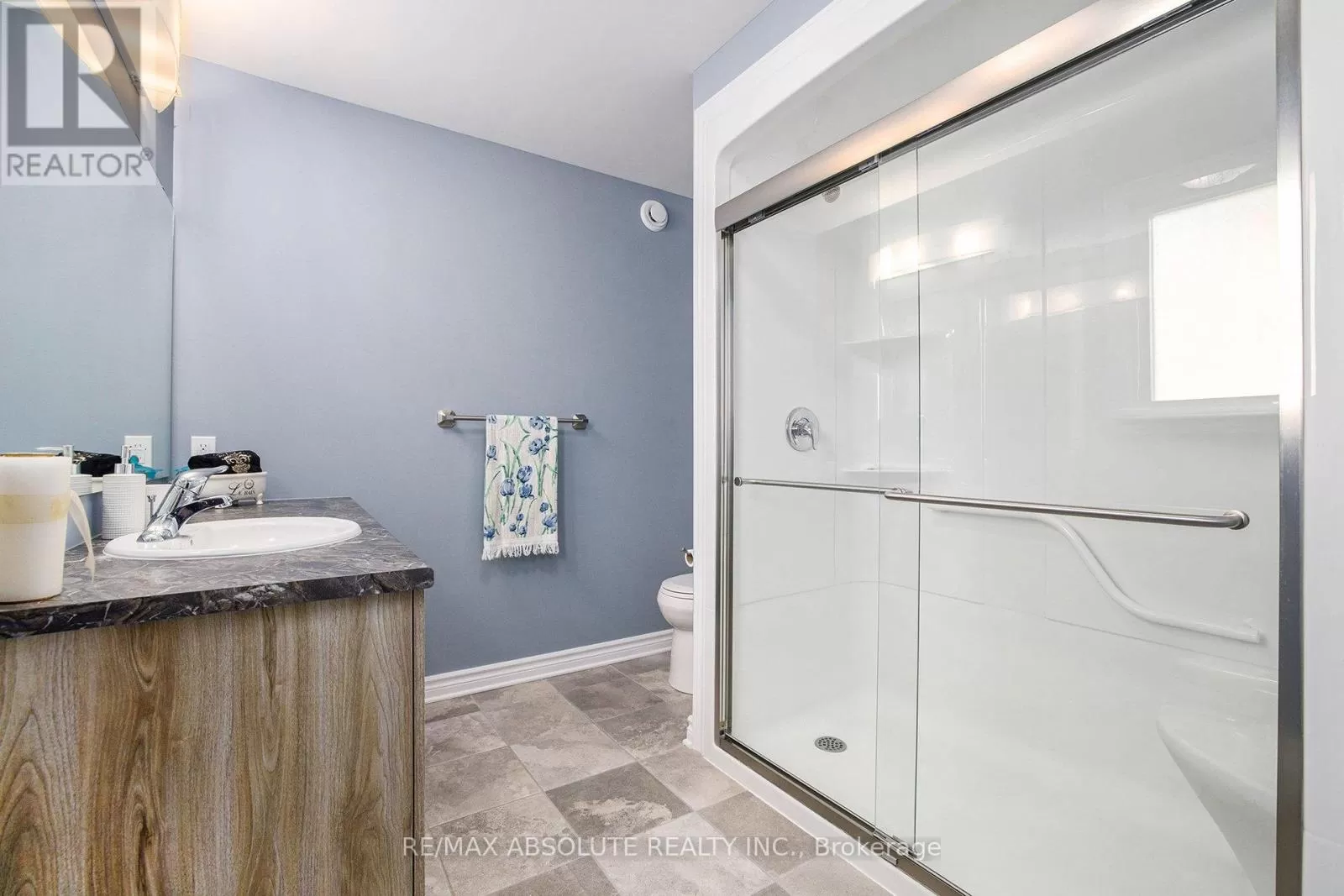 Cross Streets: Edward Levesque Gate/Madawaska Blvd. ** Directions: From Ottawa take the 417 West to the first Arnprior Exit, HWY 29 turn right, turn left onto HWY 17 (at Urban Ford Dealership, road becomes Madawaska Blvd.), right on Edward Levesque Gate, left on Morgan Clouthier Way, property on the left near bend. Welcome to this bright and inviting 2 bedroom, 2 bathroom, end unit bungalow in the charming Town of Arnprior! The open concept main level features a spacious living room with patio doors leading to a lovely outdoor patio space, ideal for relaxing and entertaining, a sun filled kitchen with plenty of cabinet and counter space and a new fridge making meal prep a breeze, a primary bedroom with updated vinyl plank flooring, which includes ensuite bathroom (new comfort height toilet) and a large closet, a second bedroom also with vinyl plank flooring, that is bright and spacious, and convenient main floor laundry to add to the homes functionality, main bath with new comfort height toilet. Only carpet in this home is on the stairs to the basement. The large unfinished basement (drywalled and spray foam insulated) with oversized windows and a rough in for a third bathroom provides endless possibilities- whether you envision a rec room, home office, gym, third bedroom, or additional living space, a second laundry hook-up adds extra flexibility. With the low maintenance layout and quiet location, this home is a perfect choice for downsizers, first-time home buyers, or anyone looking for comfortable one level living. Arnprior offers- hospital, schools (both French and English), library, museum, movie theatre, bowling alley, restaurants, shopping, churches, recreation centre, beaches, parks, nature trails and so much more, and a short 25 minute commute to Kanata. (id:27476)
