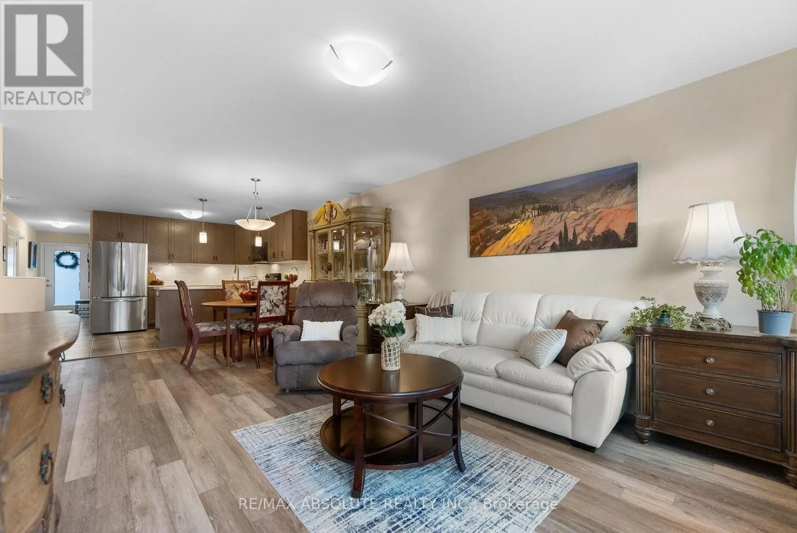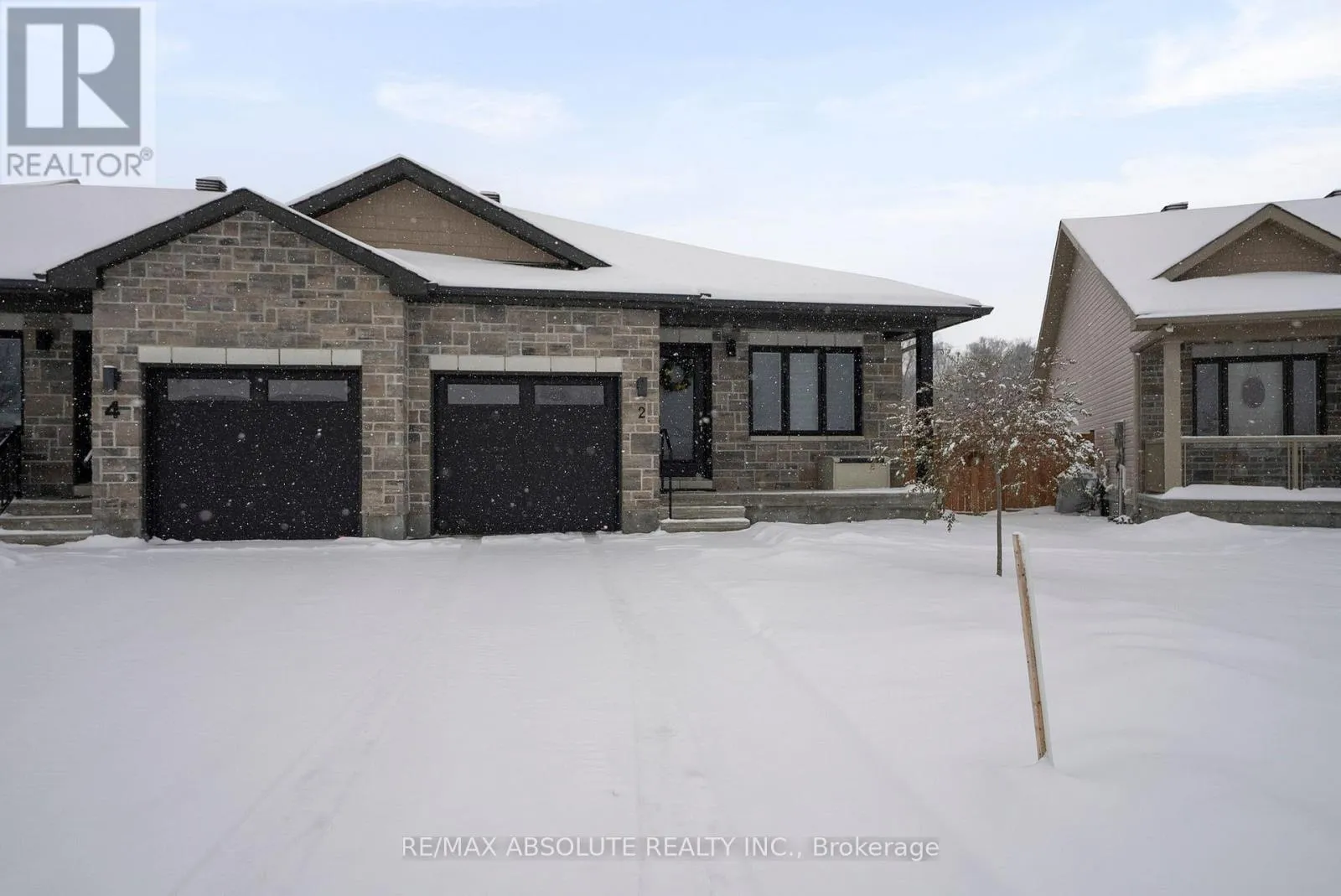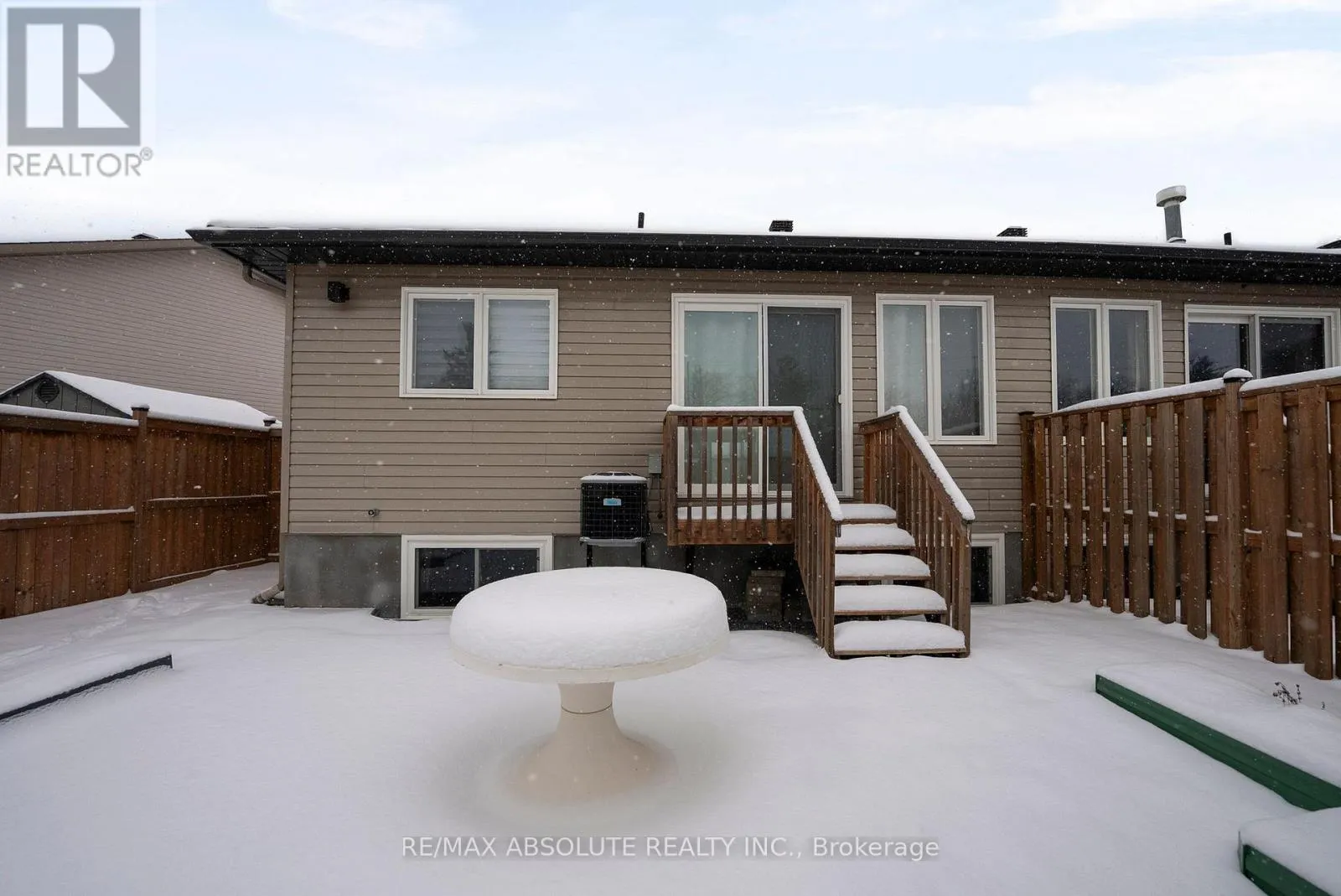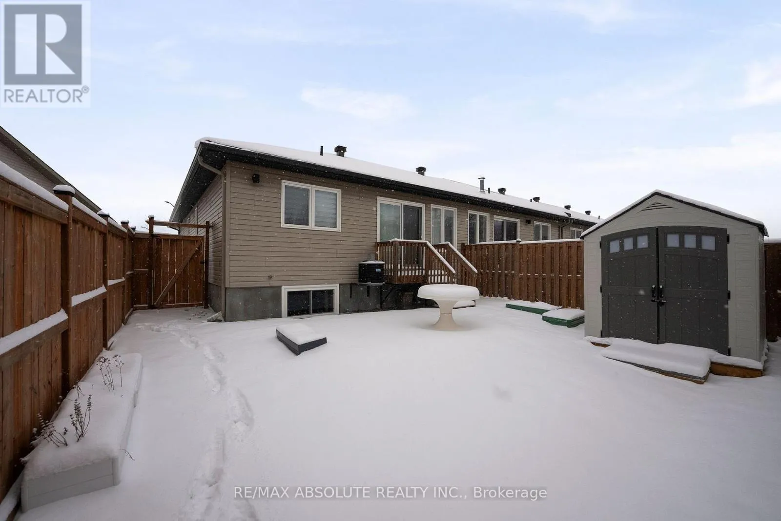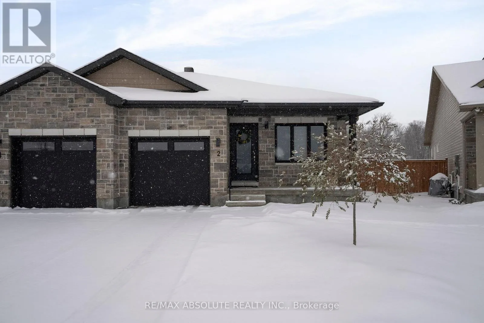 Cross Streets: Edward Levesque Gate/Madawaska Blvd. ** Directions: From Ottawa take the 417 West to the first Arnprior Exit, HWY 29 turn right, turn left onto HWY 17 (at Urban Ford Dealership, road becomes Madawaska Blvd.), right on Edward Levesque Gate, left on Morgan Clouthier Way, property on the left near bend. Welcome to this bright and inviting 2 bedroom, 2 bathroom, end unit bungalow in the charming Town of Arnprior! The open concept main level features a spacious living room with patio doors leading to a lovely outdoor patio space, ideal for relaxing and entertaining, a sun filled kitchen with plenty of cabinet and counter space and a new fridge making meal prep a breeze, a primary bedroom with updated vinyl plank flooring, which includes ensuite bathroom (new comfort height toilet) and a large closet, a second bedroom also with vinyl plank flooring, that is bright and spacious, and convenient main floor laundry to add to the homes functionality, main bath with new comfort height toilet. Only carpet in this home is on the stairs to the basement. The large unfinished basement (drywalled and spray foam insulated) with oversized windows and a rough in for a third bathroom provides endless possibilities- whether you envision a rec room, home office, gym, third bedroom, or additional living space, a second laundry hook-up adds extra flexibility. With the low maintenance layout and quiet location, this home is a perfect choice for downsizers, first-time home buyers, or anyone looking for comfortable one level living. Arnprior offers- hospital, schools (both French and English), library, museum, movie theatre, bowling alley, restaurants, shopping, churches, recreation centre, beaches, parks, nature trails and so much more, and a short 25 minute commute to Kanata. (id:27476)