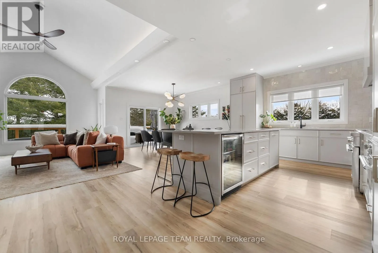 Daniel Street and Charles Street Welcome to refined riverfront living in this impeccably updated 3-bedroom, 3-bath brick bungalow - where luxury finishes meet resort-style outdoor living. The open-concept main floor is anchored by a dramatic 14-ft cathedral ceiling and elegant gas fireplace, creating a space that feels both grand and inviting. The designer kitchen is truly exceptional, featuring a handcrafted Moroccan Zellige tile backsplash, natural quartzite countertops, a Thermador dual fuel range, built-in Thermador speed oven, Thermador dishwasher, and a panel-ready Bosch fridge. A pot filler, wine and beverage cooler, and sophisticated black fixtures with champagne bronze accents complete the room. The primary suite offers a private retreat with walk-in closet, a statement chandelier, balcony access with serene river views, and a killer ensuite! Downstairs, two generously sized bedrooms feature oversized windows that flood the space with natural light while capturing beautiful river views - a rare and elevated lower-level experience complemented by 9-ft ceilings. Step outside to your own backyard sanctuary - complete with pool (new liner and safety cover), covered patio, natural gas BBQ hookup, manicured gardens, and a private path leading to the river. With upgraded trim and doors, new patio doors, and most windows replaced, every detail has been thoughtfully curated. A rare blend of craftsmanship, elegance, and lifestyle. (id:27476)