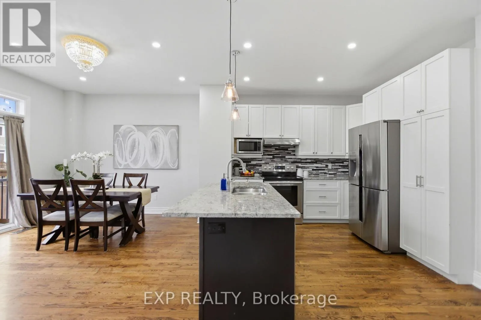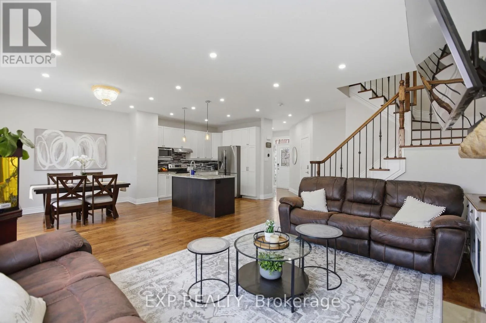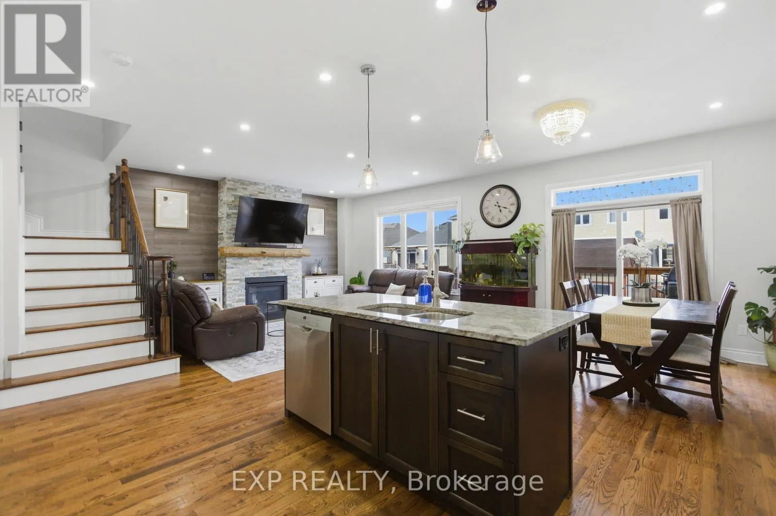 Hwy 417 West to Exit 184 turn left onto White Lake Road, turn right onto Vanjumar Rd, (across from Antrim Truck Stop) left onto Desmond Trudeau Dr, turn right onto Bert Hall St. property is on the right. Beautifully maintained two-storey home in the desirable Village Creek community, just minutes to Highway 417 and the town of Arnprior along the Ottawa River. This upgraded 4-bedroom residence features a welcoming interlock patio leading to a bright foyer with ceramic flooring and an open-concept main level. The kitchen offers stainless steel appliances, a functional island with seating, and flows seamlessly into the dining area with patio doors to a 12' x 6' rear deck. The living room is highlighted by a stunning stone-faced gas fireplace with wood accents. Hardwood flooring extends throughout the main and second levels, including the staircase with elegant iron railings. Upstairs, you'll find three spacious secondary bedrooms, a full bathroom, convenient laundry, and a generous primary suite complete with ensuite bath. The finished lower level boasts a large recreation room with ample space for both relaxation and exercise. Located in a sought-after family-friendly neighbourhood close to schools, parks, churches, hospital, library, community centre, shopping, skiing, golf, and nearby lakes. (id:27476)