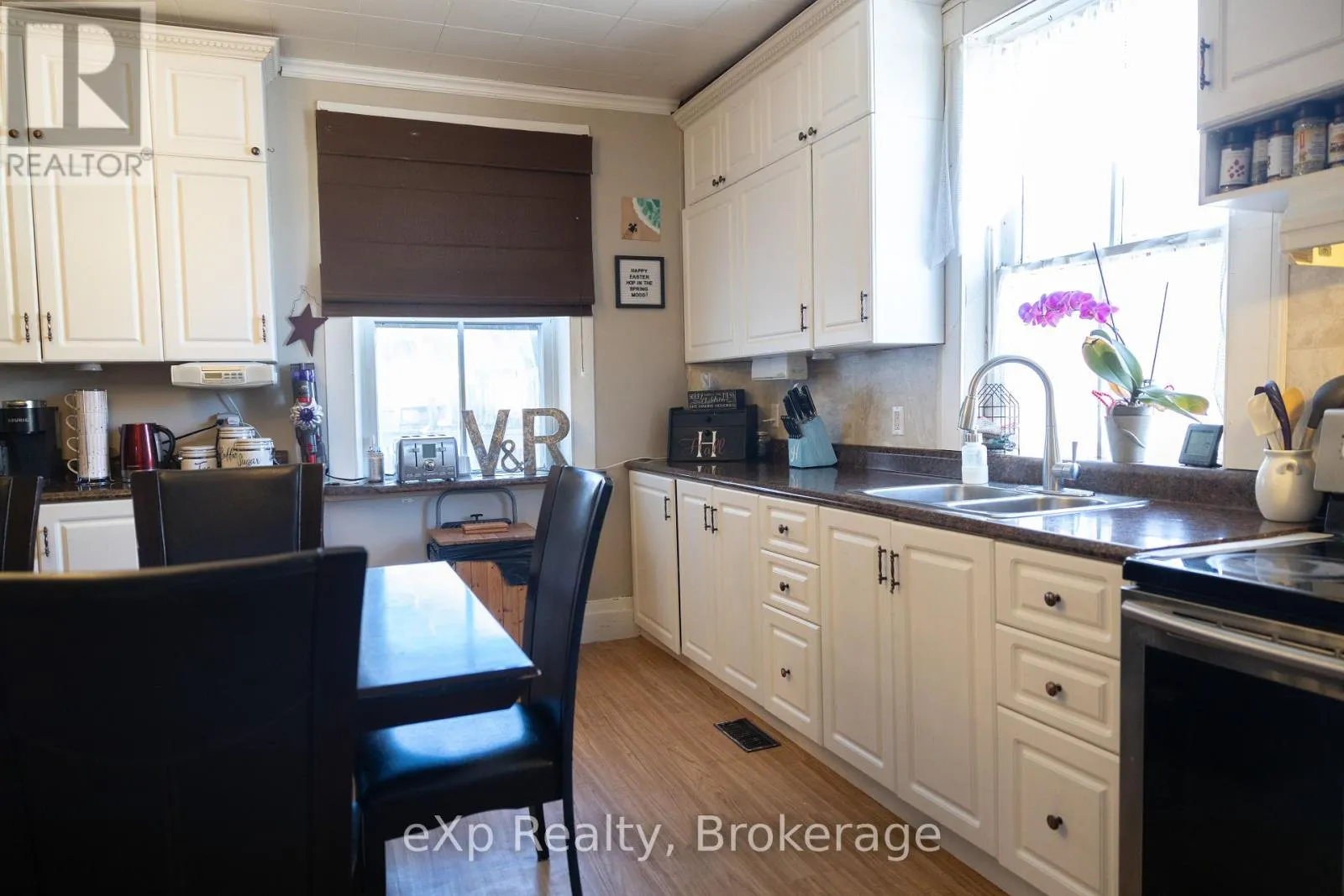 Cross Streets: 3rd Street SW and 3rd Avenue SW. ** Directions: Going North in the Town of Chesley, turn left either at 4th Street SW and right at 3rd Ave SW. Welcome to this spacious and well-maintained home in the heart of Chesley - perfectly located near schools, parks, downtown shops, the arena, and local trails. Inside, you'll find a large kitchen ideal for family meals, a bright living area, and flexible space that can serve as 4 bedrooms or 3 plus an office or playroom. The mudroom/laundry room adds convenience, and the patio and deck create the perfect outdoor retreat for entertaining. Recent updates include new windows (July 2025) and a roof replaced in 2016, giving you peace of mind. Air conditioned for those hot summer months. The fully fenced yard offers great space for kids and pets, plus a 10 x 14 shed for all your storage needs. Laminate and vinyl flooring flow throughout the home (except for the carpeted stairs), adding both comfort and easy maintenance. Located in a friendly Chesley neighbourhood close to everything - perfect for first-time buyers, growing families, or anyone looking for small-town charm with modern comfort! (id:27476)