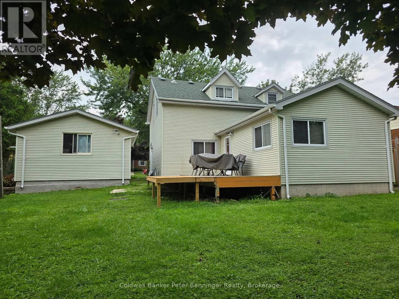 Cross Streets: Queen and Inkerman. ** Directions: South end of the Village of Paisley, East side of the main street. Sign. Charming clean curb appeal with this home that is larger than it looks, nestled in the Village of Paisley. Large bright picture window gives a great view of the front yard where you can watch life go by in the comfort of your own home. Back living area opens up to a deck and the 165 foot deep lush lot. Upstairs are 3 bedrooms and 1 full bathroom accented by dormers. Main floor laundry is shared with a secluded powder room. Basement is partial and not built for living space but typical of the age of the home. Detached garage is for your favorite car or tools / toys! Home was resided with exterior walls re-insulated in 2008. Roof re-shingled and new Hot Water Tank (owned) in 2013/2014. Home has all newer vinyl windows. * Being done NOW is a new Breaker Panel and Ductless Heater! Will be finished prior to any Closing. Property is located between the down town area and the Health Unit / School. Generous sidewalk out front. Lots going on in the Village with all needful amenities close at hand! (id:27476)