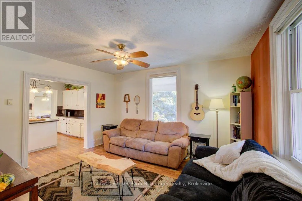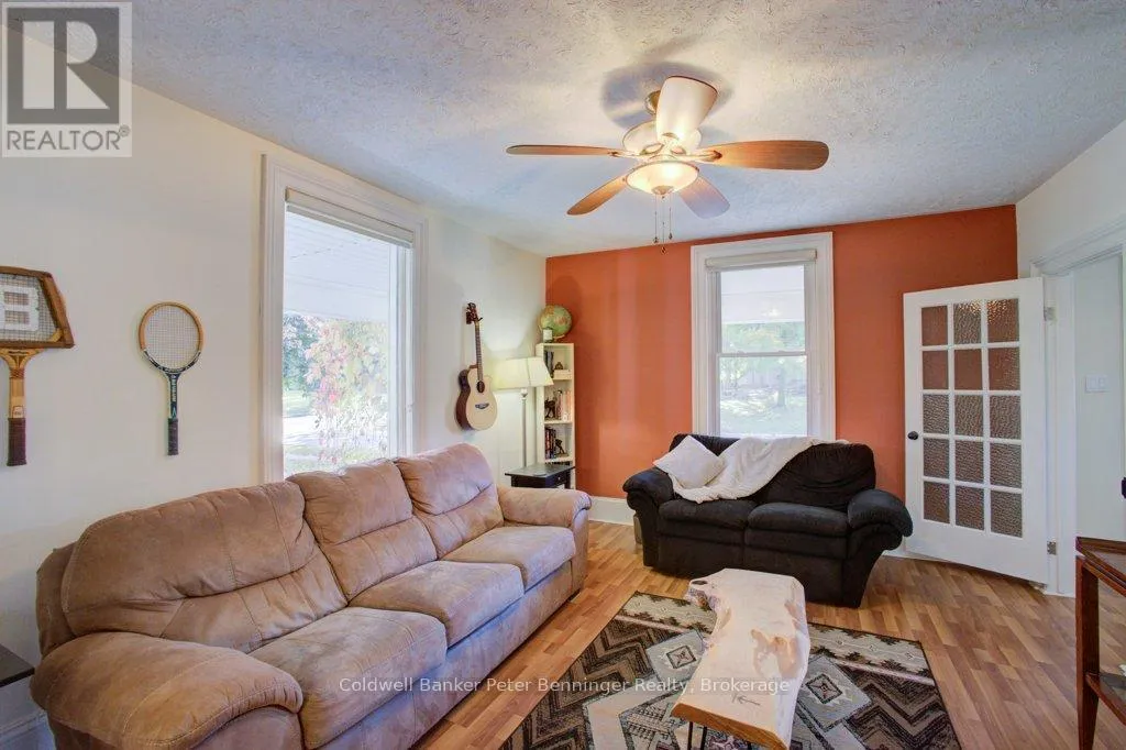 Cross Streets: Inkerman and Victoria. ** Directions: Turn West in Paisley at the Intersection of County Rd 3 (Queen St S) and County Rd 1 (Inkerman St). Property at the corner of Inkerman and Victoria. Good solid brick home on a corner lot waits for its new owner, plenty of features to please someone who hasn't found their special home yet. Home borders near the lot line on the west which leaves plenty of room for a large side deck and yard. Almost lives like a double lot. Wrap around covered porch really adds to function and curb appeal! Front formal and back entry doors lead to attractive living spaces and a practical floor plan. Back addition features the Family Room, main floor Bathroom and Laundry room with a back door opening to a porch and the Garden Shed. Kitchen has been updated with an attractive island and open concept to the Dining-room space. Second floor has the second full bathroom and two roomy bedrooms with bright windows. Driveway can hold up to 4 vehicles and the property is located close to the Rail Trail and the Teeswater River. 1 Block away offers all the amenities in the Village of Paisley. 22 km's from the Bruce Power Visitor Centre and a 15 minute drive to the sandy beaches of Port Elgin, there is much to be considered here. Quality of life and affordability. (id:27476)