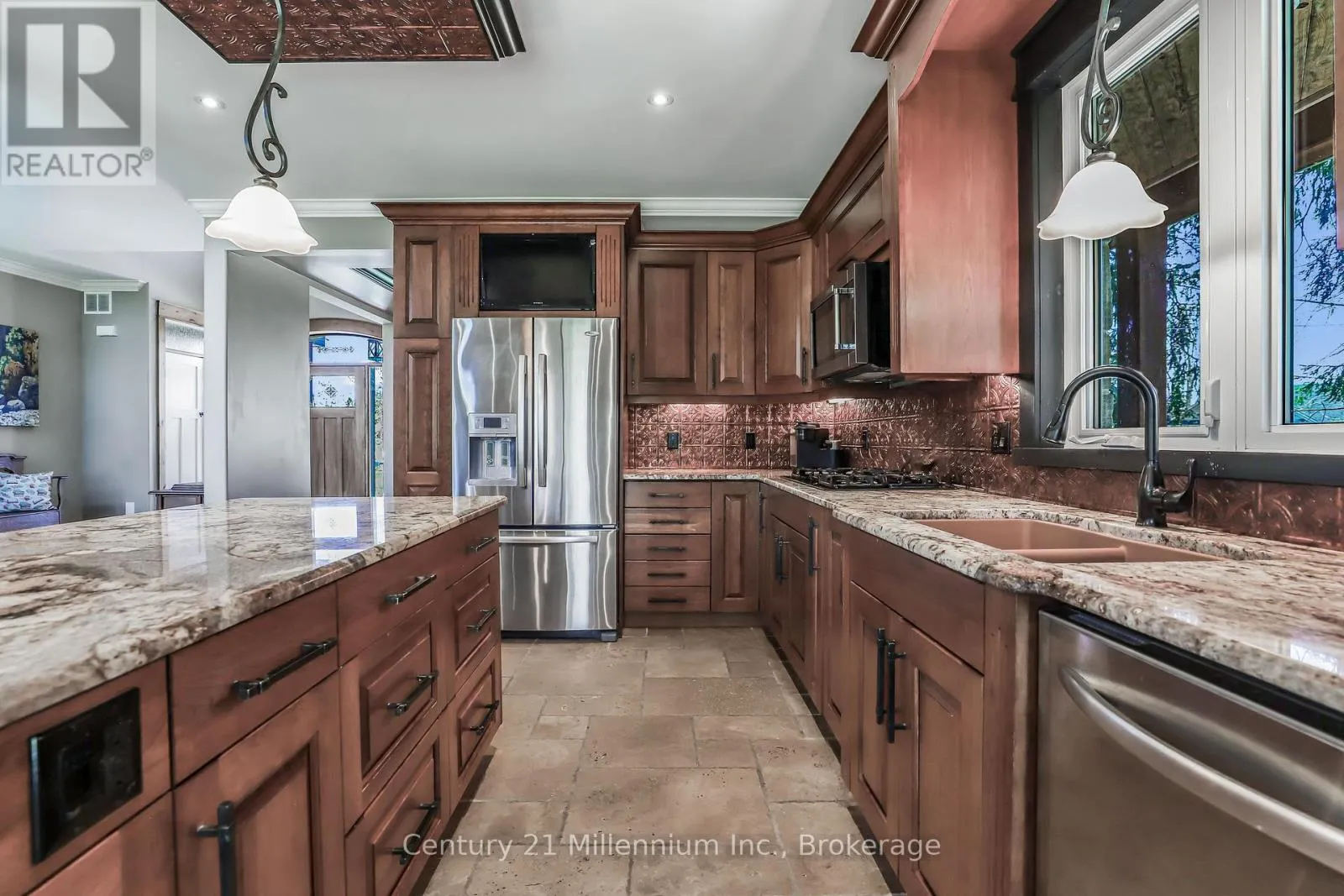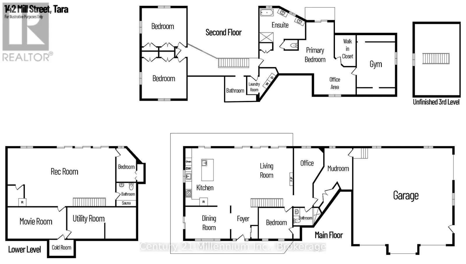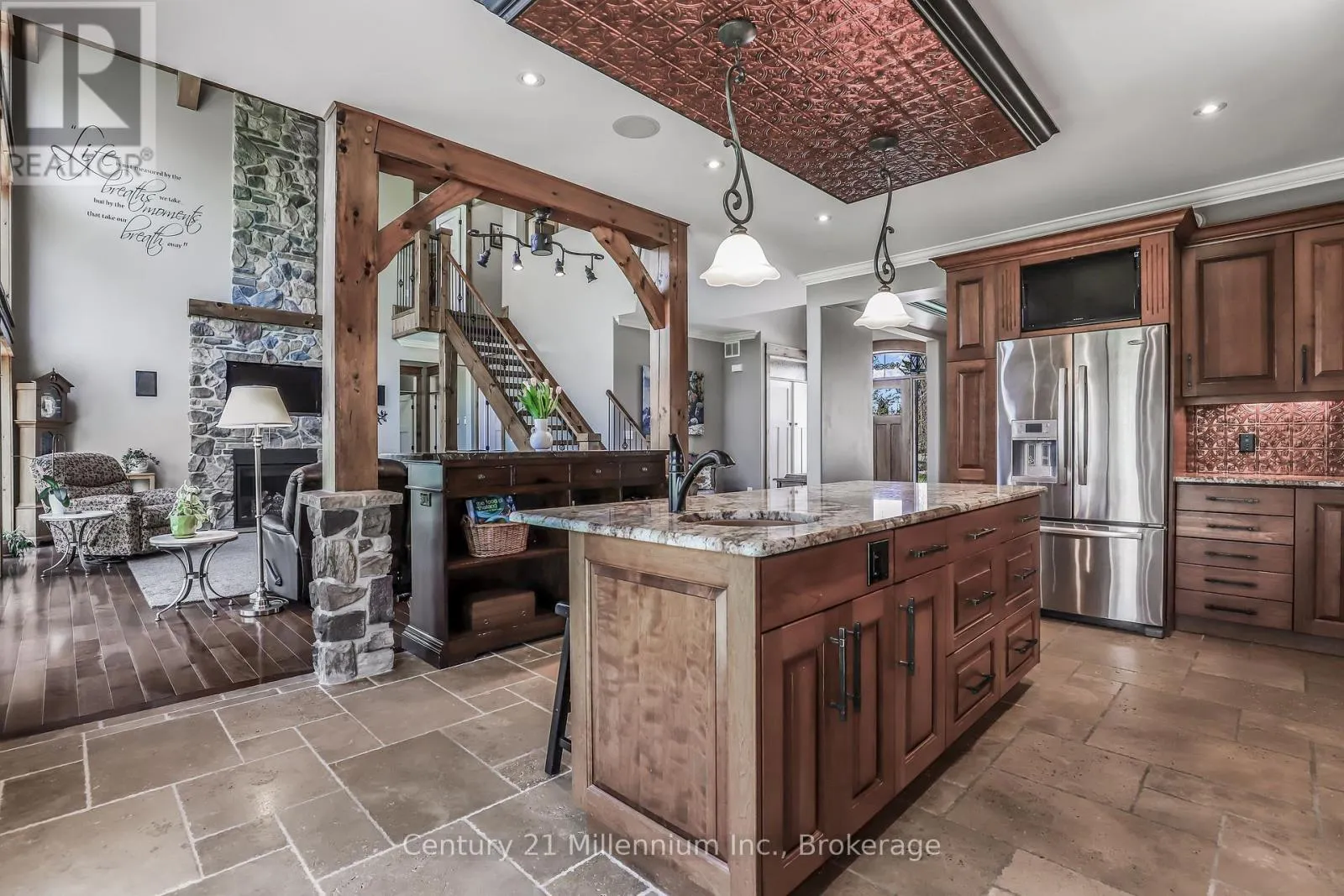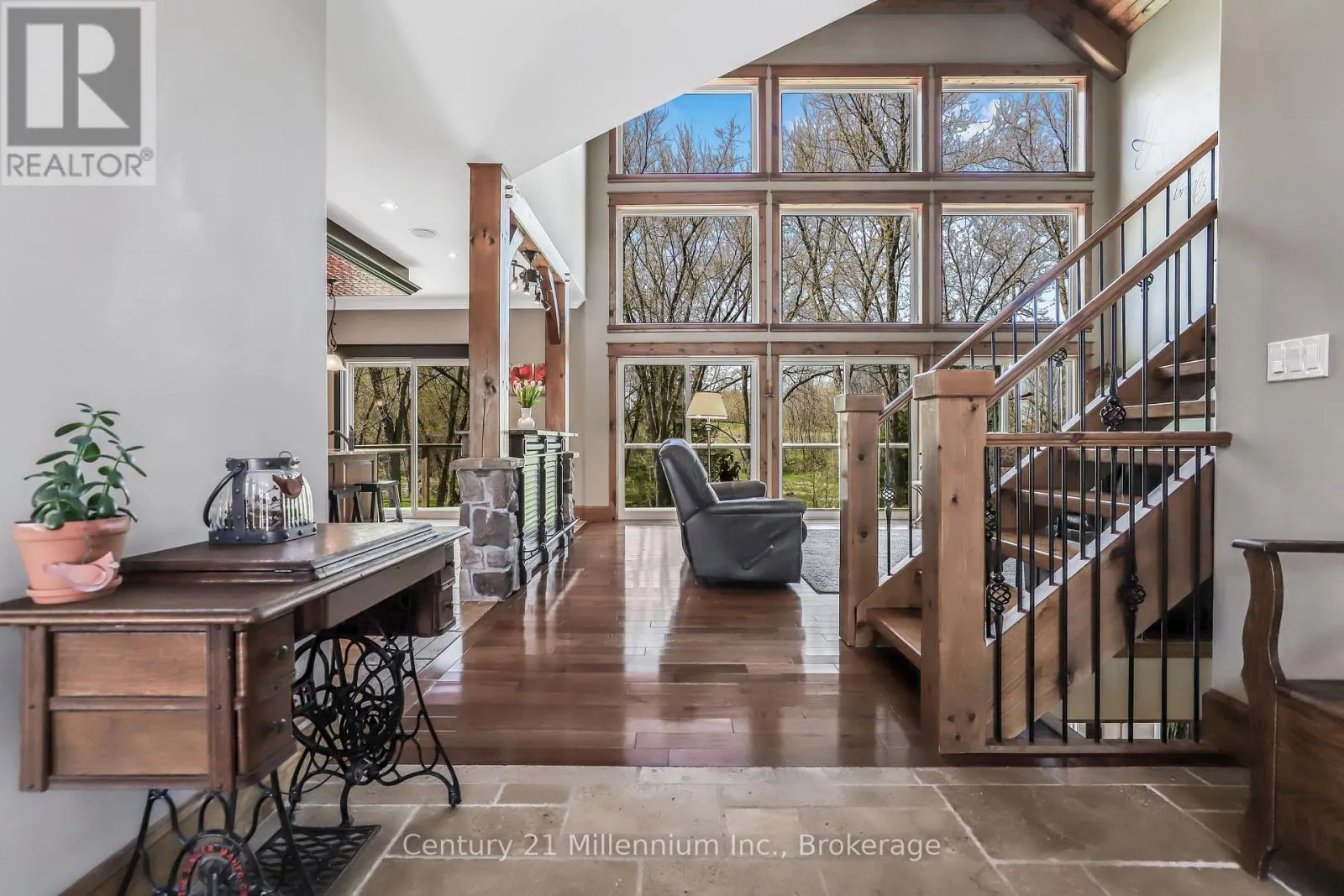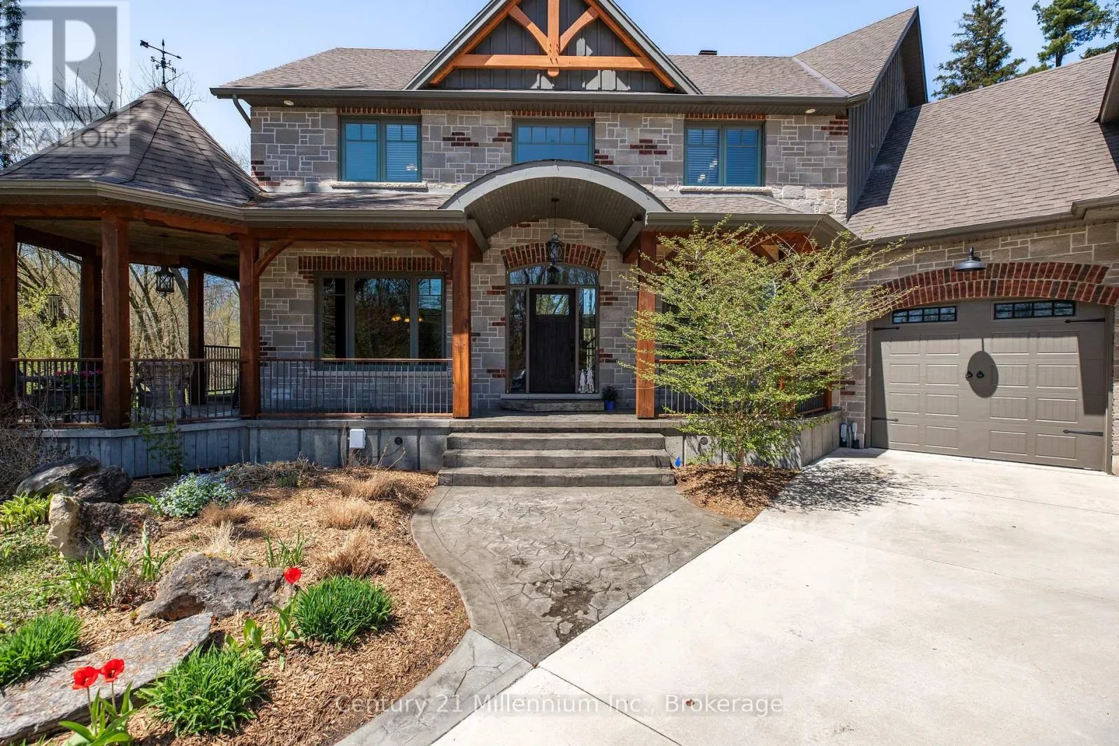 Cross Streets: Mill & Yonge. ** Directions: Yonge St. to Mill. West on Mill to the very last property on the right. Welcome to 142 Mill St., a stunning luxury estate set on approximately 2 acres along the Sauble River. A grand circular concrete drive leads to this serene property where timeless elegance meets modern comfort. The post & beam covered wraparound porch and gazebo create the perfect setting for morning coffee or peaceful evenings, showcasing beautiful river views and seamless indoor-outdoor living. Watch for otter, beaver and muskrat as well as bald eagle, egret and blue heron, fox and turtles along your private shoreline. Inside, a dramatic two-storey foyer with limestone flooring opens to a bright living room with floor-to-ceiling windows reaching to the 23' post and beam cathedral ceiling, rich cherry hardwood, and a striking stone gas fireplace. The gourmet cherry kitchen features granite countertops and sinks, a centre island, built-in appliances, and a breakfast credenza, plus a multi-tiered deck ideal for entertaining against the river backdrop. A formal dining room is perfect for gatherings, while a private main-floor office enjoys inspiring water views. The oversized triple-car garage with in-floor radiant heat (a mechanic's dream) connects to a spacious mudroom. Upstairs, the primary suite offers a sitting area and spa-inspired ensuite with a freestanding tub overlooking the river, glass-and-tile shower, double vanities, and private water closet. Two additional bedrooms with double closets share a full bath, plus second-floor laundry. A third-level bonus room offers many options! The Lower level is an entertainer's dream with a large family room, dry bar, media room, infrared sauna, 5th bedroom, cold room and walk-out to the stamped concrete patio. The property extends across the river with water rights. The 4,000 sq.ft. detached "Bee House" includes a workshop heated with natural gas, playroom, and plenty of flexible storage. A welcoming community, ideally located between Owen Sound, the Lake Huron shoreline, and Bruce Power in the middle of everywhere! (id:27476)