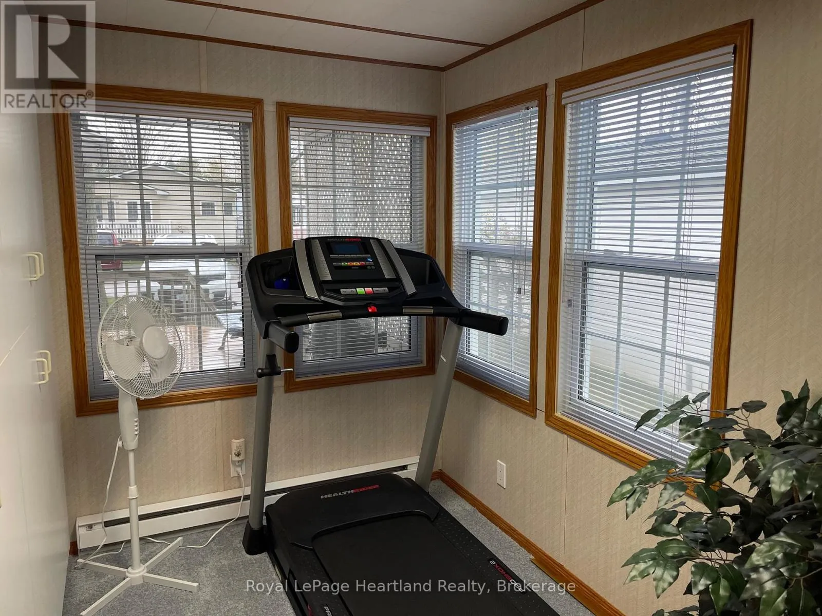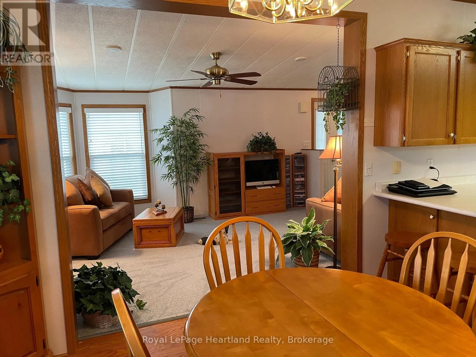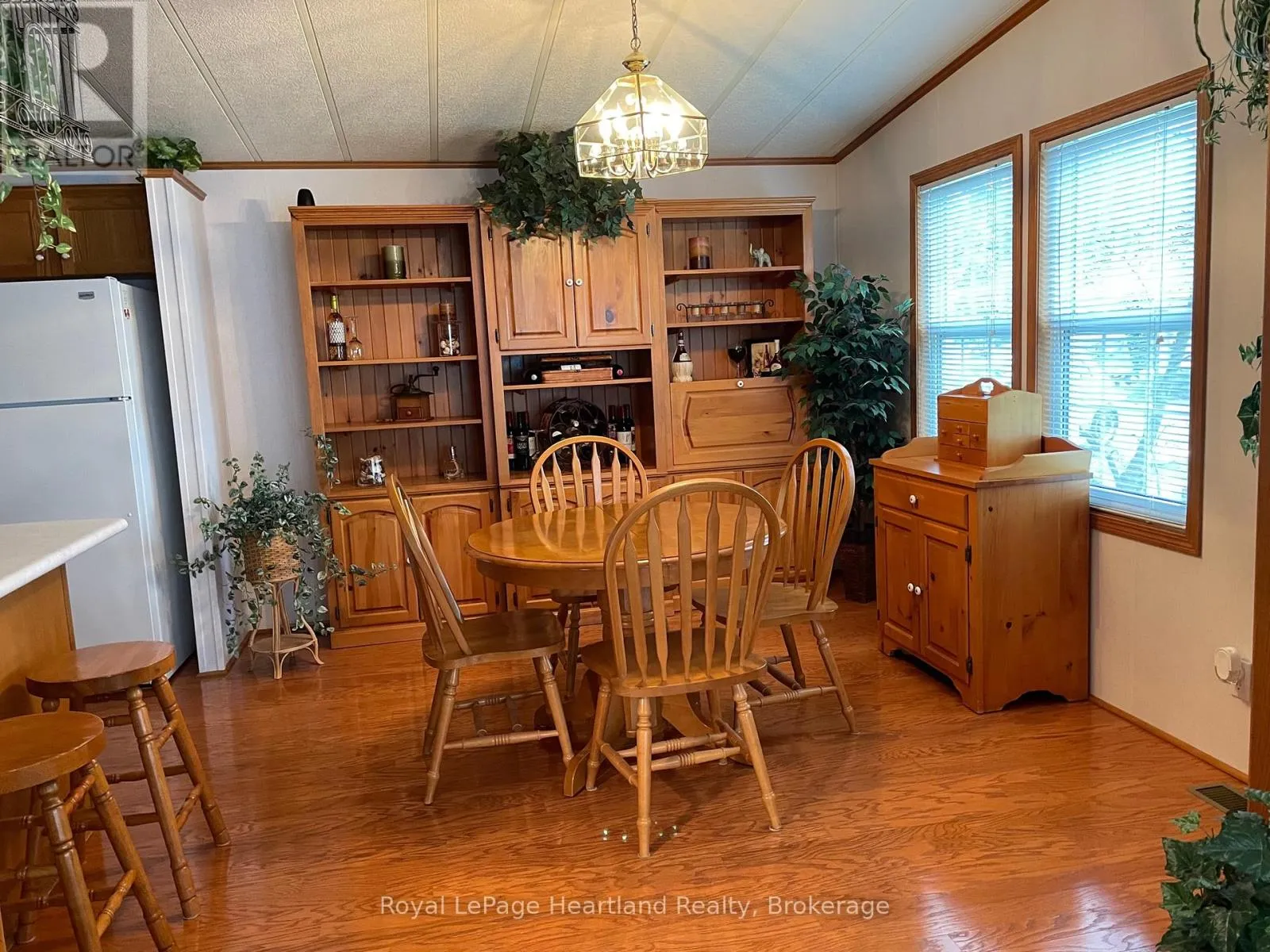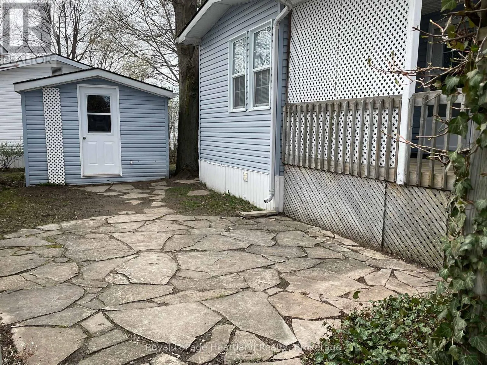 Cross Streets: NONE. ** Directions: Hwy 21 north of Goderich to Airport Road, turn west on Airport Road and follow to the end of the road. Meneset on the Lake entrance is to the left. Follow to 65 Cherokee Lane. Look what has come on the market! A spacious 2+ bedroom, 2 bathroom year round Northlander home is now being offered for sale at 65 Cherokee Lane in the desirable and highly sought after land lease adult lifestyle lakefront community known as Meneset on the Lake. This well maintained, super functional interior floor plan consists of an open concept kitchen with loads of cabinetry, dining room with space for a sideboard and cozy yet elegant living room with a natural gas fireplace. Privacy is ensured at the back of the home where you will find the primary bedroom with lots of closet space and a 3 piece ensuite bathroom. Guests may enjoy their own space with the main 4 piece bathroom and bedroom footsteps apart. The new Buyer will enjoy the additional sitting room or could easily be used as a 3rd bedroom with backyard access. Take note of all the storage space across from the hallway laundry closet, water softener (rented) and owned hot water heater. The home is heated with a new forced air natural gas furnace and central air conditioning (2021). In 2015 all carpet was replaced throughout, new shingles/roof, new water heater purchased and pipes under the home have been insulated. Exterior features include a double paved driveway, beautiful mature lot, partially covered front entrance deck and private garden/patio area with a shed to store off season items or make into your workshop. This is the perfect home for Buyers wanting lots of living space, lakeside living and close to the Town of Goderich. Meneset on the Lake is a lifestyle community with an active clubhouse, drive down immaculate beach, paved streets, garden plots and outdoor storage. When lifestyle, simplicity and an incredible private drive-able beach are your goals, consider this home as your next purchase! (id:27476)