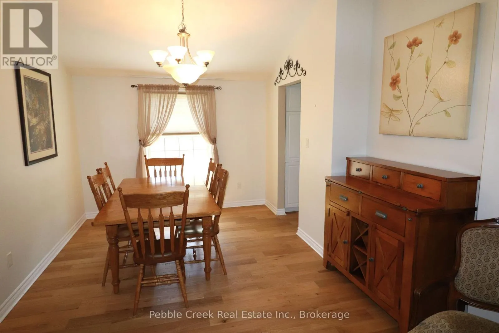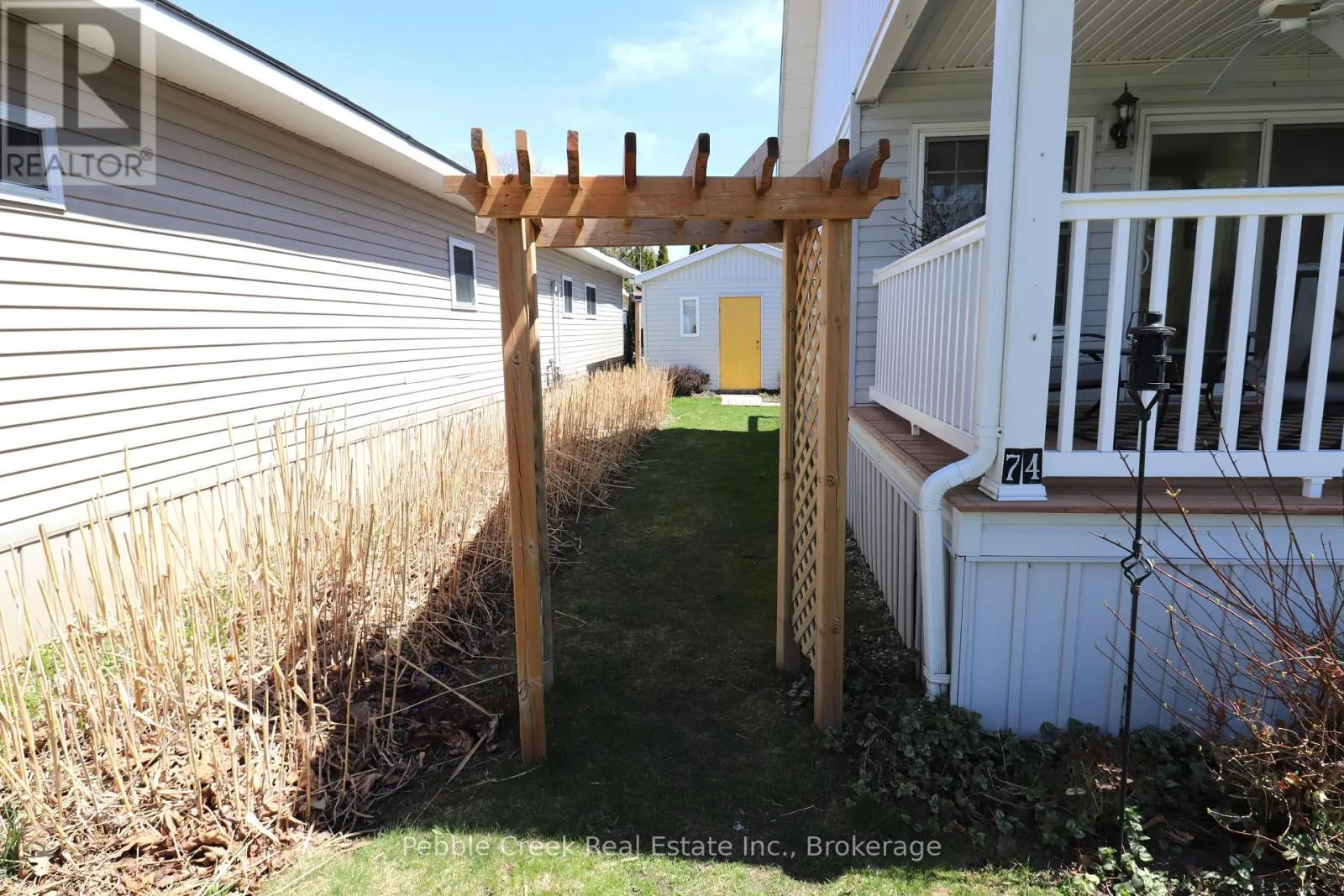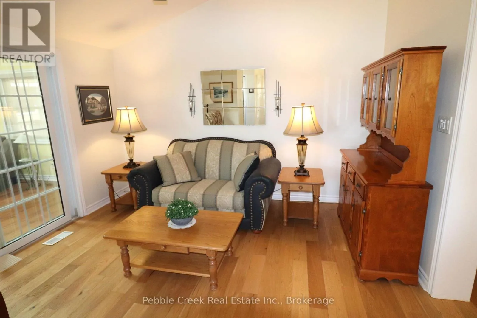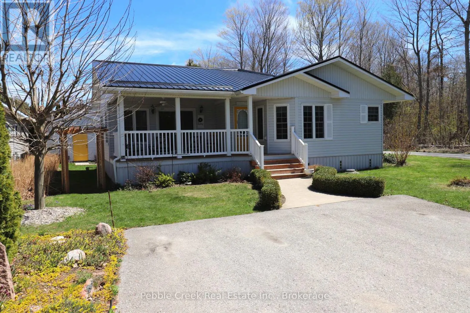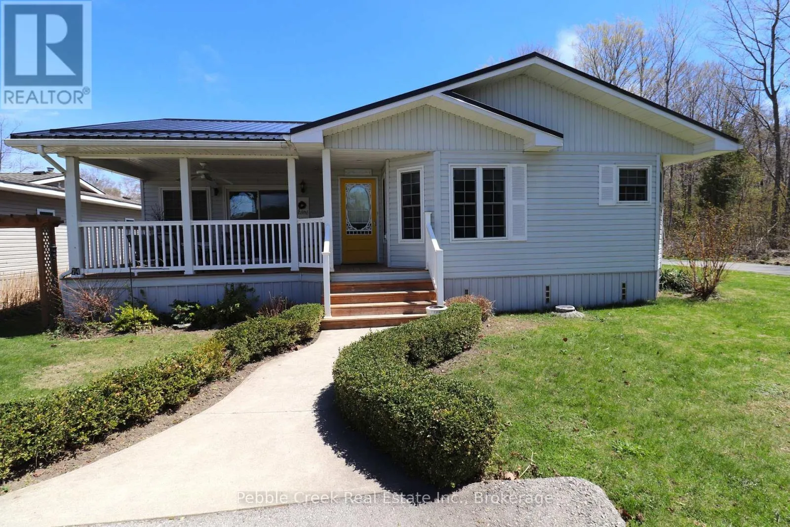 Cross Streets: Iroquois Lane and Cherokee Lane. ** Directions: Take Hwy 21 North from Goderich, turn West onto Airport Rd. Follow to the end and turn left into Meneset, then South onto Iroquois Lane. Property is on the East side. Amazing location! This stunning Royal Home is situated on one of the best lots at Meneset on the Lake, an adult lakefront community located just minutes north of Goderich. This fabulous home offers a partial seasonal lakeview and is located across the road from a forested area and path leading to the community's beachfront area! As you walk up to the inviting covered front porch, you will know you have found your new home! Step inside and you will be very impressed with the spacious interior including cathedral ceilings and gorgeous wood flooring. The impressive kitchen features newer premium appliances, an abundance of cabinets and several windows for lots of natural light. There is also a formal dining room, living room and stunning family room addition with cathedral ceiling, skylights and natural gas fireplace! Down the hall from the main living area is a laundry room with sink and primary bedroom with 3 pc en-suite bath and walk in closet. There is a spacious second bedroom as well. At the back of the home there is a deck for grilling, concrete patio, private fenced area and large shed/workshop. Services include forced air gas heating, central A/C, high speed internet and whole home generator. An added bonus is the entire roof was replaced in 2022 with long lasting metal. This is a great opportunity to acquire a beautiful home in a very desirable land lease community, complete with its very own club house and recreational activities! If that is not enough, several golf courses, walking trails and lots of shopping are available nearby in The Prettiest town of Canada! (id:27476)