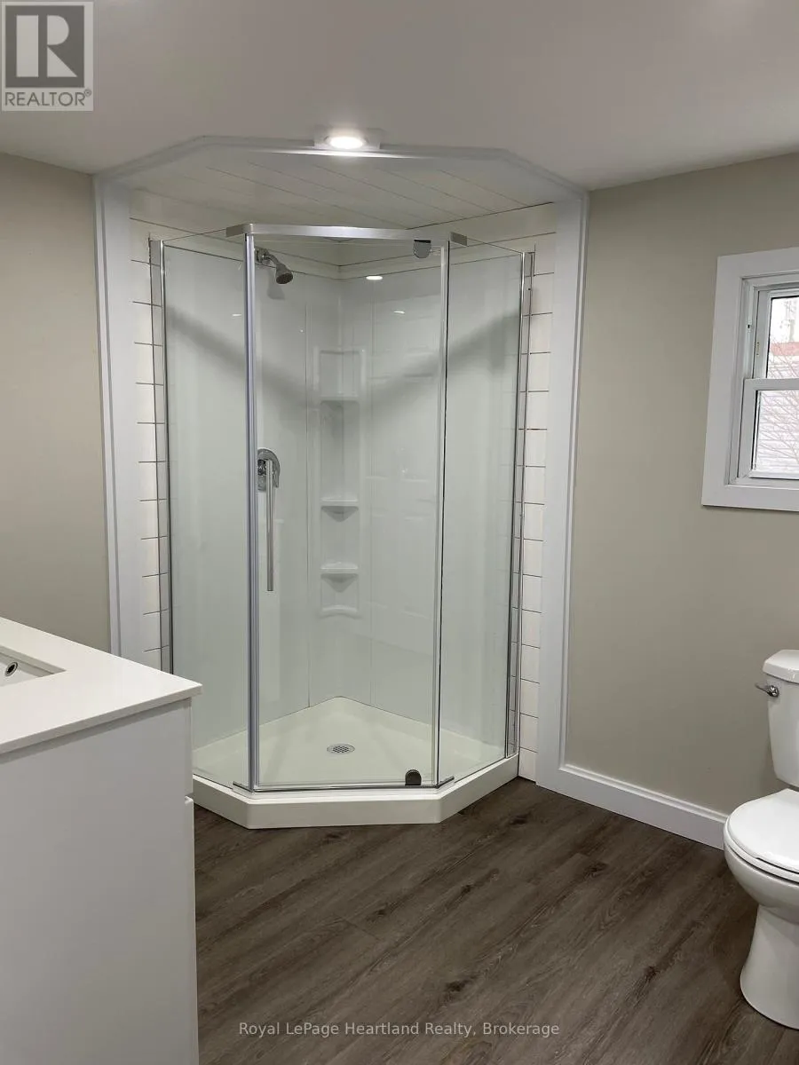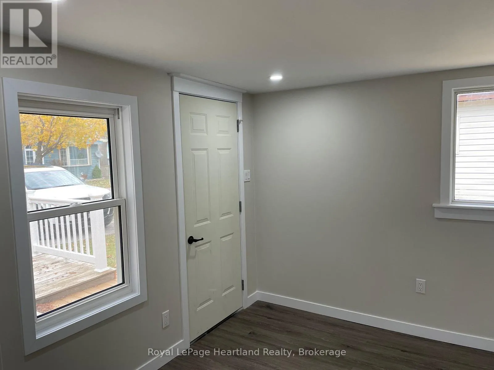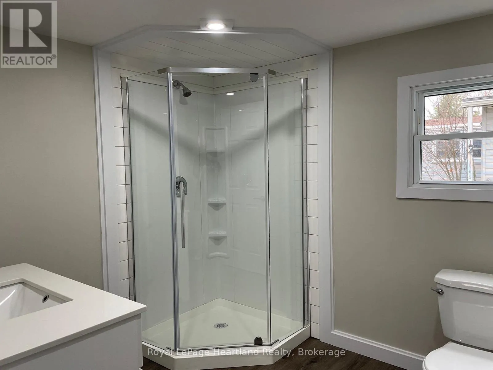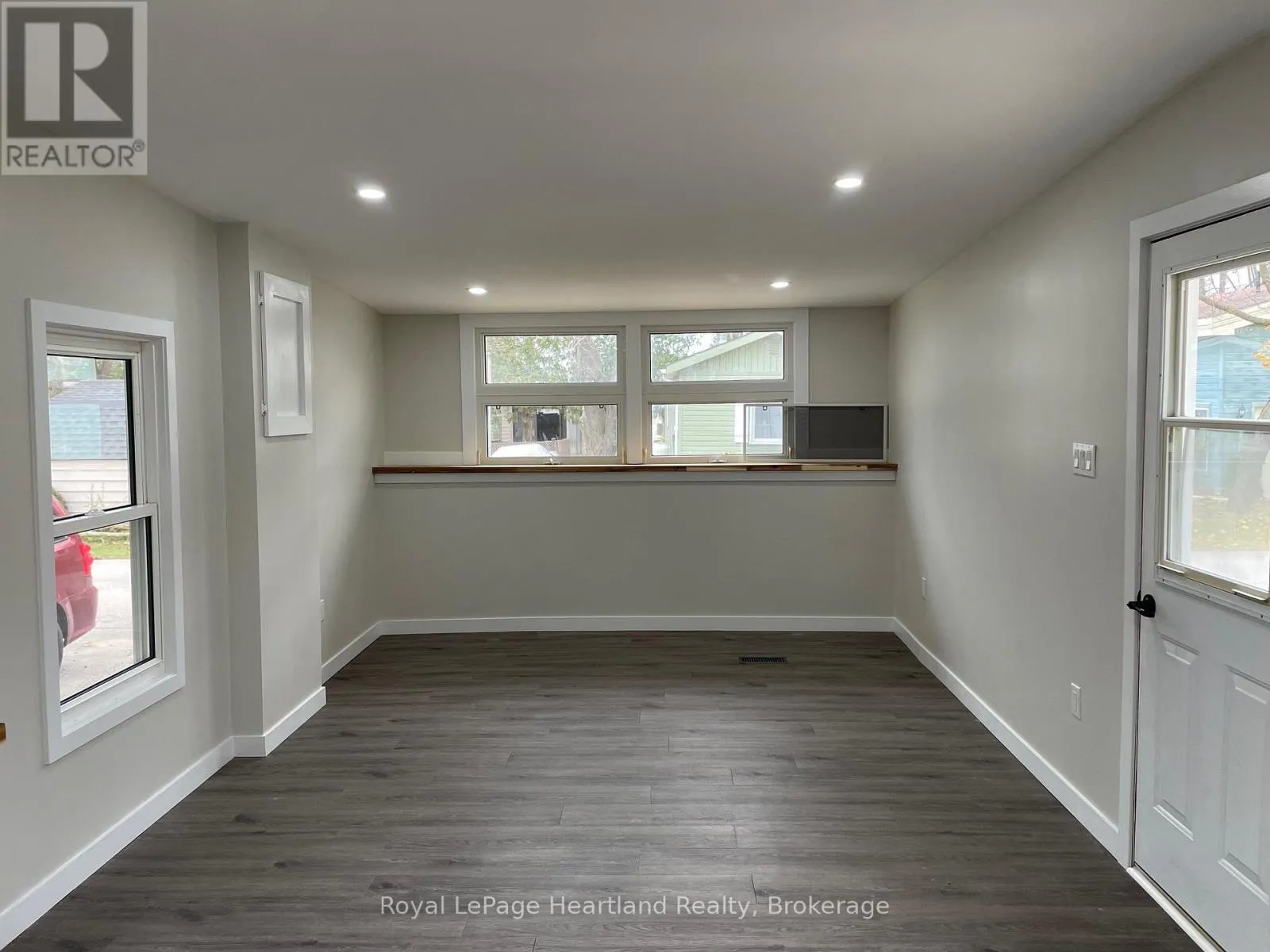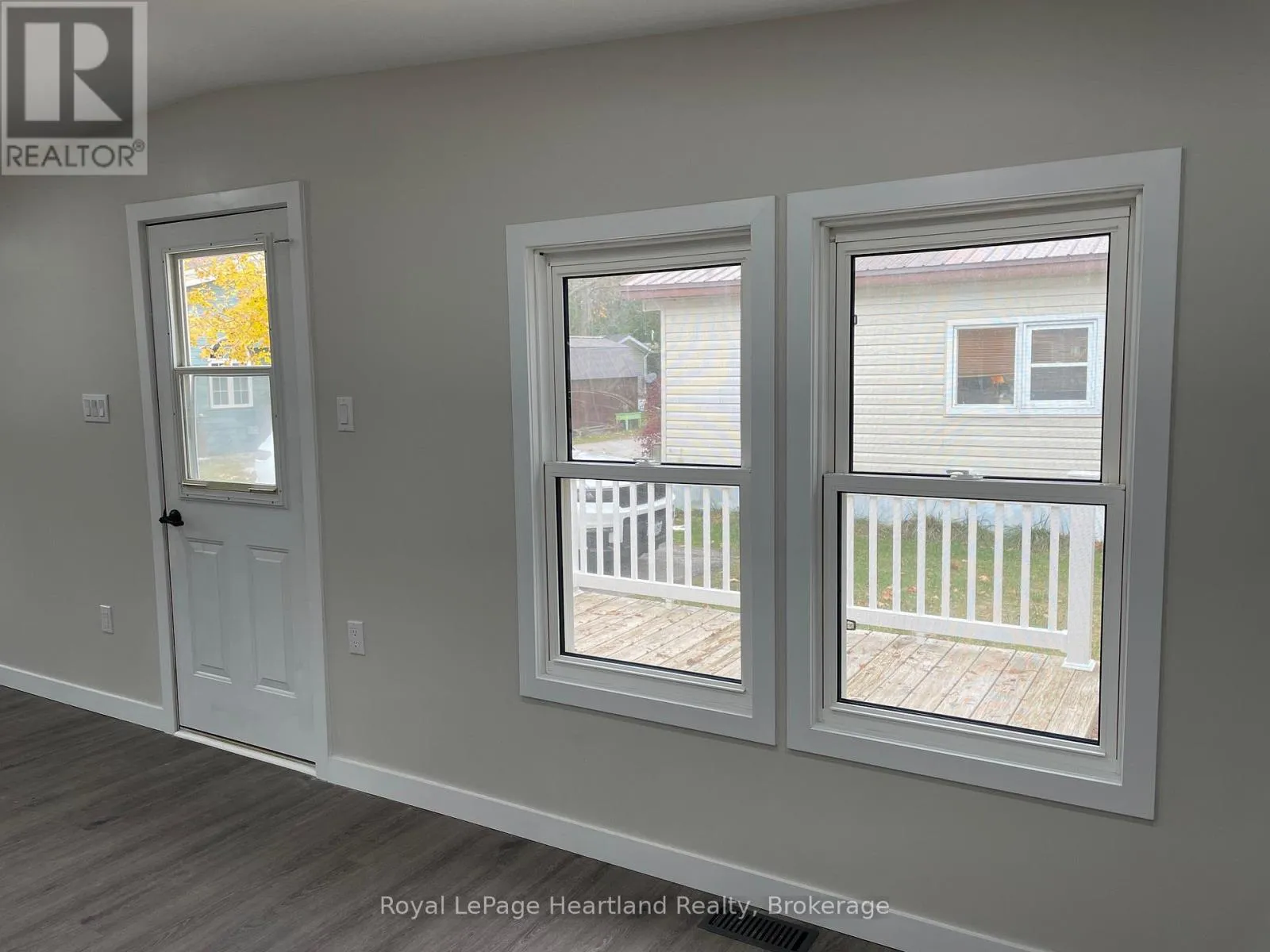 Cross Streets: Hwy 21 North & WEST COAST WAY. ** Directions: Hwy 21 North from Goderich to the main entrance of the Bluffs & Huron Haven Villlage. Follow West Coast Way to the first round - a-bout, turn right into Huron Haven Village. At the second stop sign turn left onto Bloomsbury Dr., home on the left. Renovations are complete! 16 Bloomsbury Drive is now ready for immediate possession in the family friendly land lease community; Huron Haven Village. The minute you walk into this home your eyes are drawn to the brand new white kitchen with gorgeous butcher block style counter top. An eat in dining room easily accommodates your kitchen table or perhaps you would prefer to add your own island with seating in this open concept kitchen floorplan. The cozy living room space is located at the front of the home off the deck with new vinyl railing. A three piece bathroom features all new fixtures including the corner shower, vanity, toilet and lighting. Inside the bathroom closet space is room for a stackable washer and dryer along with the owned water heater. The primary bedroom is at the back of the home for privacy with room for dressers and a large closet for clothing. The addition to the side of the home is currently used as a family/sitting room however a second bedroom and foyer area could be created by the new buyer. Other updates include recessed lighting, all new flooring, drywall, painted throughout, new interior doors and outdoor lighting. Swim during the summer months in the new inground pool, socialize in the clubhouse or enjoy the sandy beaches of Lake Huron close by. Minutes from the Town of Goderich, golf courses and all your shopping needs. (id:27476)