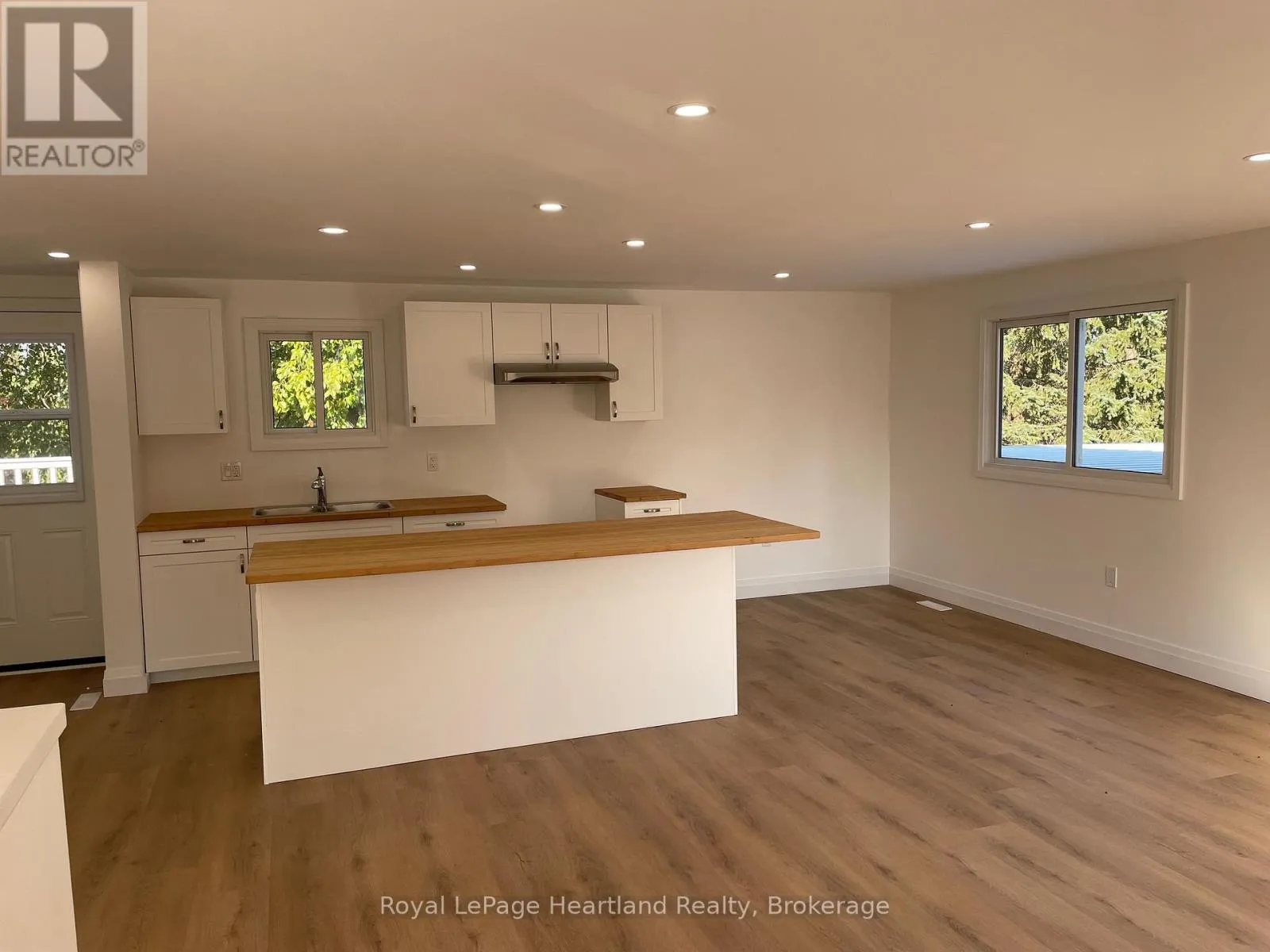 Cross Streets: Bluewater Highway 21 & WEST COAST WAY. ** Directions: Bluewater Highway 21 north of Goderich to the Bluff's/Huron Haven entrance - turn right at first roundabout to enter Huron Haven, turn left and proceed to Watergate Dr., turn right property is on the north side. Fantastic 3 bedroom family home completely renovated with a reconfigured, carefully thought out floor plan. The open concept kitchen, dining room and large living room is the main focal point of this 1080 square foot home. The crisp, bright white brand new kitchen with oversized island and new stainless steel appliance package (coming mid October) complete a family dream kitchen. The dining room easily accommodates your table and sideboard. The large picture window in the living room provides beautiful natural light where you have lots of options on how to configure this space. Enjoy meals or simply relax on the beautiful new deck off the kitchen which overlooks the private, spacious backyard. The 4 piece bathroom is in close proximity to all 3 bedrooms. The lower level features another 1080 square feet of living space ready for completion. This new fully insulated walk-out basement has a new patio door, second entrance, 2nd bathroom roughed in, an area for a 4th bedroom and huge family room area. The new furnace and water heater (rented) along with laundry complete the lower level. Shelter your vehicle under the attached carport which leads to the lush, private backyard with mature trees. Other updates include all new windows, siding, insulation, drywall, LVP flooring, pantry, deck, vinyl railing, recessed lighting, tub surround, vanity, toilet, storage tower and all new fixtures throughout. The land lease community, Huron Haven welcomes families who can enjoy the new outdoor swimming pool, clubhouse and is within close proximity to lots of trails, golf course and the Town of Goderich. (id:27476)