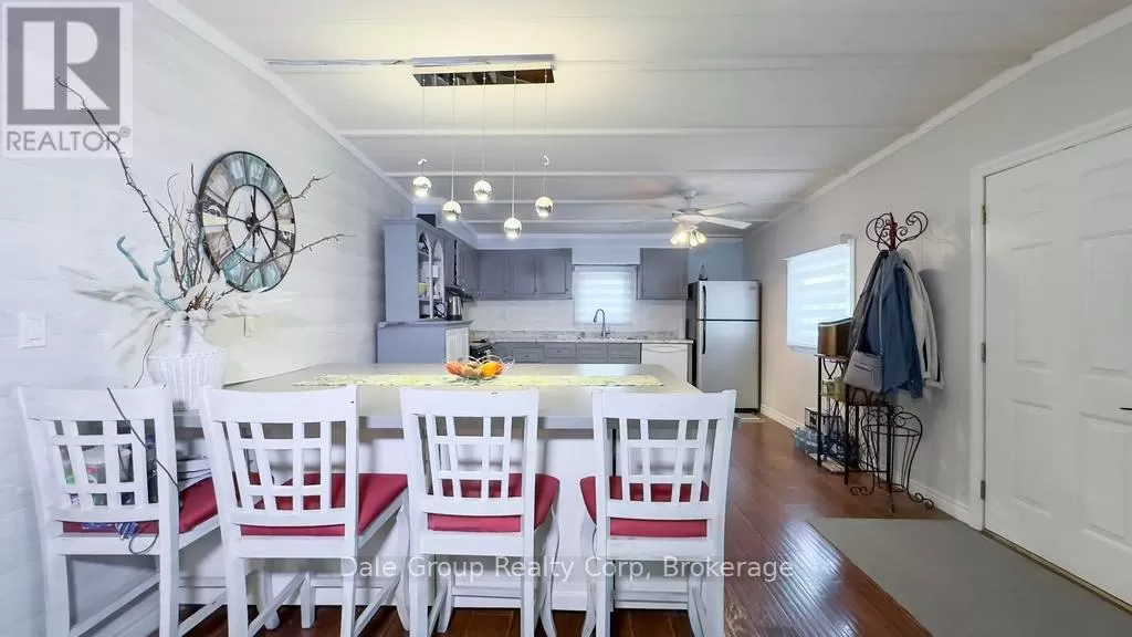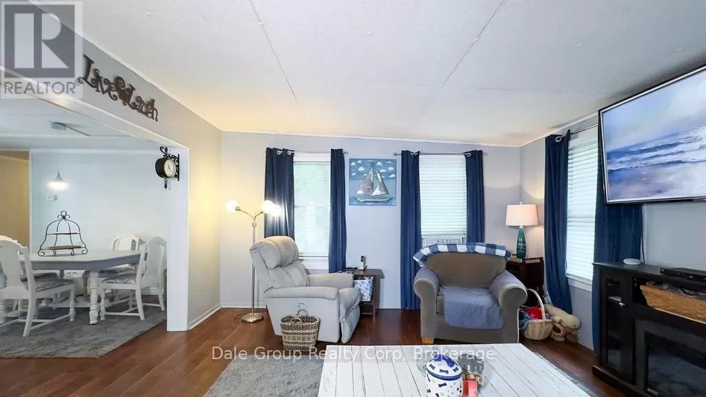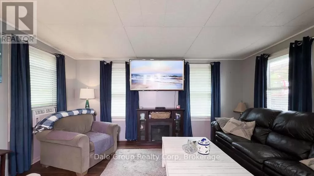 Cross Streets: Sutton & Garden. ** Directions: North on Highway 21 from Goderich to Bluffs main entrance, turn right at first street when in park, then right again and left onto Sutton. Welcome to this little hideaway at Huron Haven. This year round mobile home offers affordable living in a community that welcomes retirees and families alike. Located along the shore of Lake Huron just a few minutes north of Goderich Ontario and close to marinas, golf courses, airport and downtown shoppers square. The home offers 2 bedroom and 2 baths with a spacious open kitchen / dining / living and front deck all wheelchair accessible. The property also has 2 storage sheds, a concrete drive and extra parking close by for visitors. Park fees include the use of the clubhouse and outdoor pool and there are many social events on the calendar. This lot backs onto and is beside green space giving it much more privacy and space to move around. If you are looking for a cute, affordable place to call home, not far for town this is a great option. (id:27476)