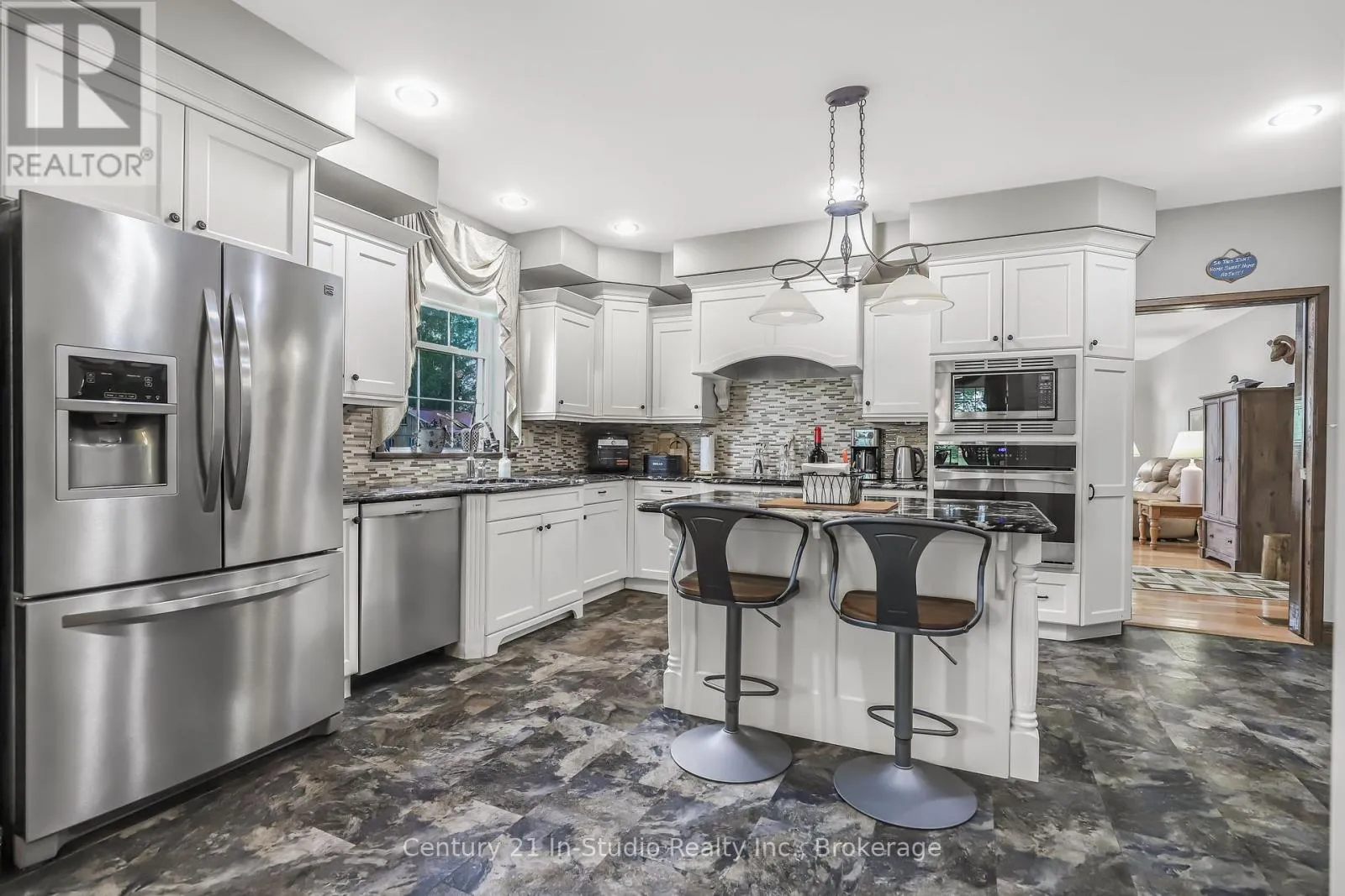 Cross Streets: St. Helens Line and Mary Anne Street. ** Directions: From Hwy 86 between Lucknow and Whitechurch turn south onto St. Helens Line. Property located at the 2nd corner on the right. Corner of St. Helens Line and Mary Anne St.. Nestled on a spacious .6 acre lot, this character-filled 2 storey home offers the perfect blend of classic charm and modern conveniences. You'll feel at ease and welcome the moment you enter the door. Featuring generous living spaces that are flooded with natural light bouncing off the gleaming floors, this home really shows the loving care invested. The house flows so wonderfully you'll just want to explore and enjoy the beauty each room has to offer. The home boasts a gorgeous kitchen with lots of cabinets, granite countertops, stainless steel appliances and opens up to the spacious dining area which is big enough for large gatherings with family and freinds. There is both a living room and a family room on the main level and a recreation room on the lower level. This can truly be a family or multigenerational home with space for everyone. There is a 4 pc wheelchair accessible bath on the main level and on the second level there is a 3 piece bath and 4 large bedrooms. The home has air-conditioning and a back-up generator to ensure your comfort. Opportunities to connect with nature exist everywhere. Listen to the birds while sitting on the covered front porch, stargaze while relaxing on the back yard stone patio or watch the fish in the stream. If gardening is your passion, there is lots of room for that in the back yard. The detached workshop/shed is a bonus! This is perfect for the hobbyists, entrepreneurs, or anyone in need of additional storage or workspace. Municipal zoning allows many different types business opportunities on this property as well. The shop is heated and has cement floors throughout. So much more could be written about the features, conveniences and upgrades but the best thing to do is come see it for yourself. You'll be glad you did! (id:27476)