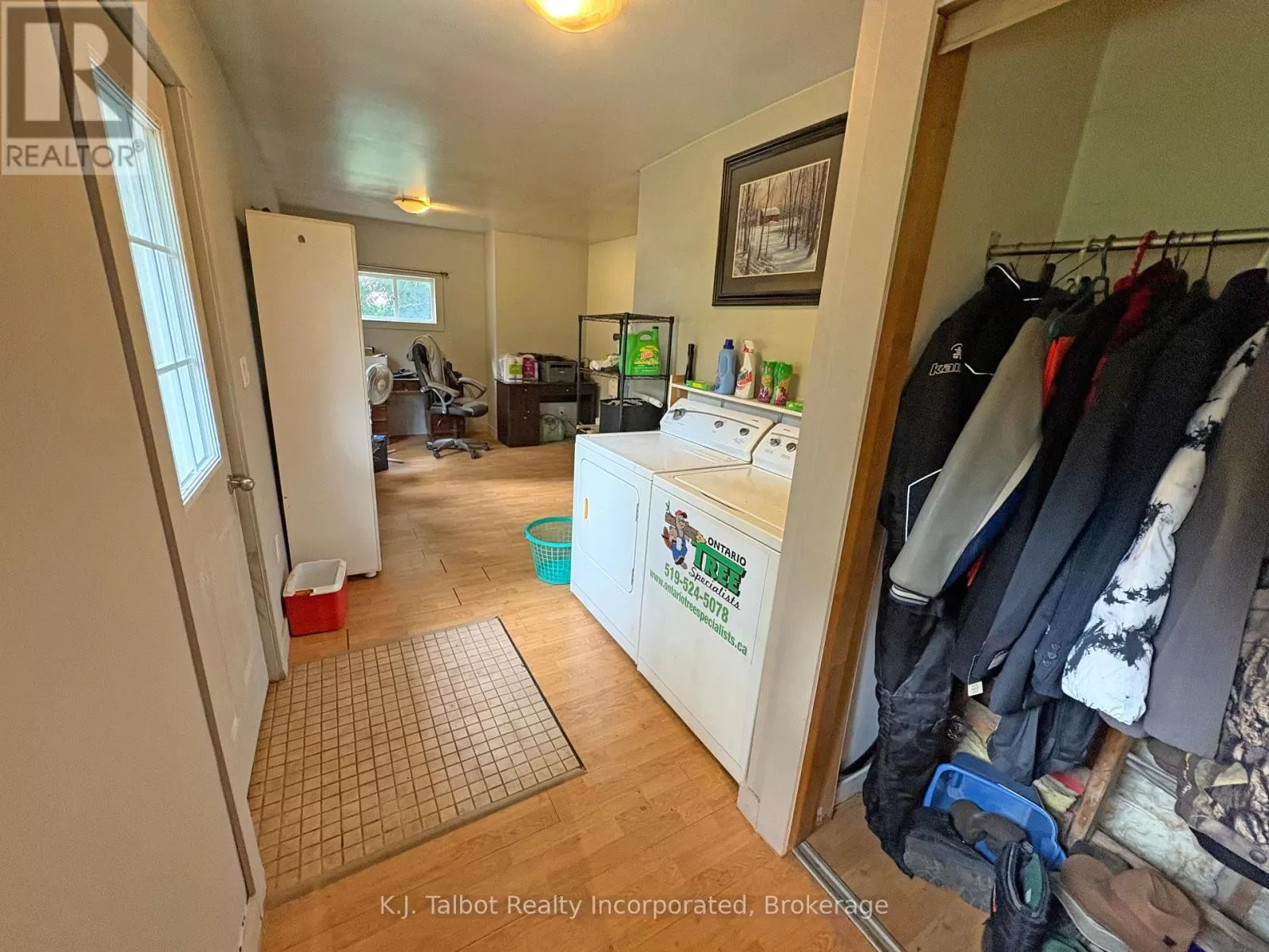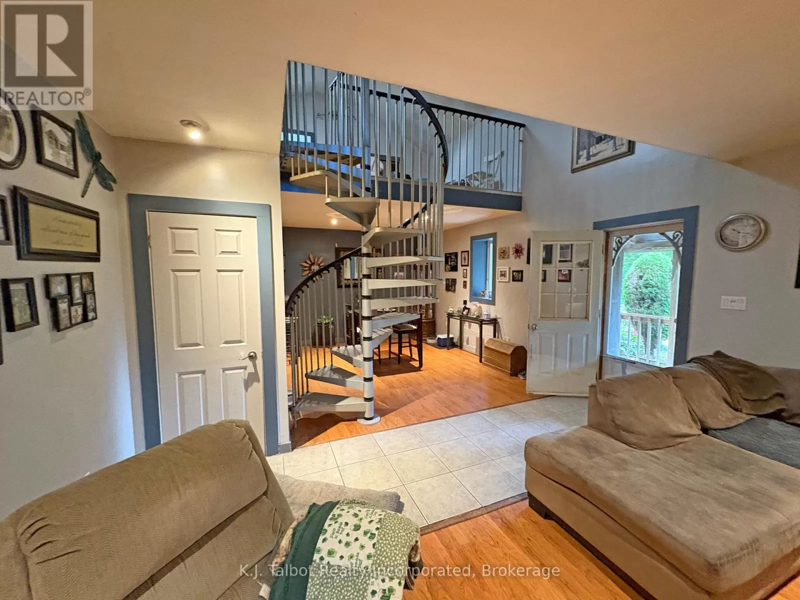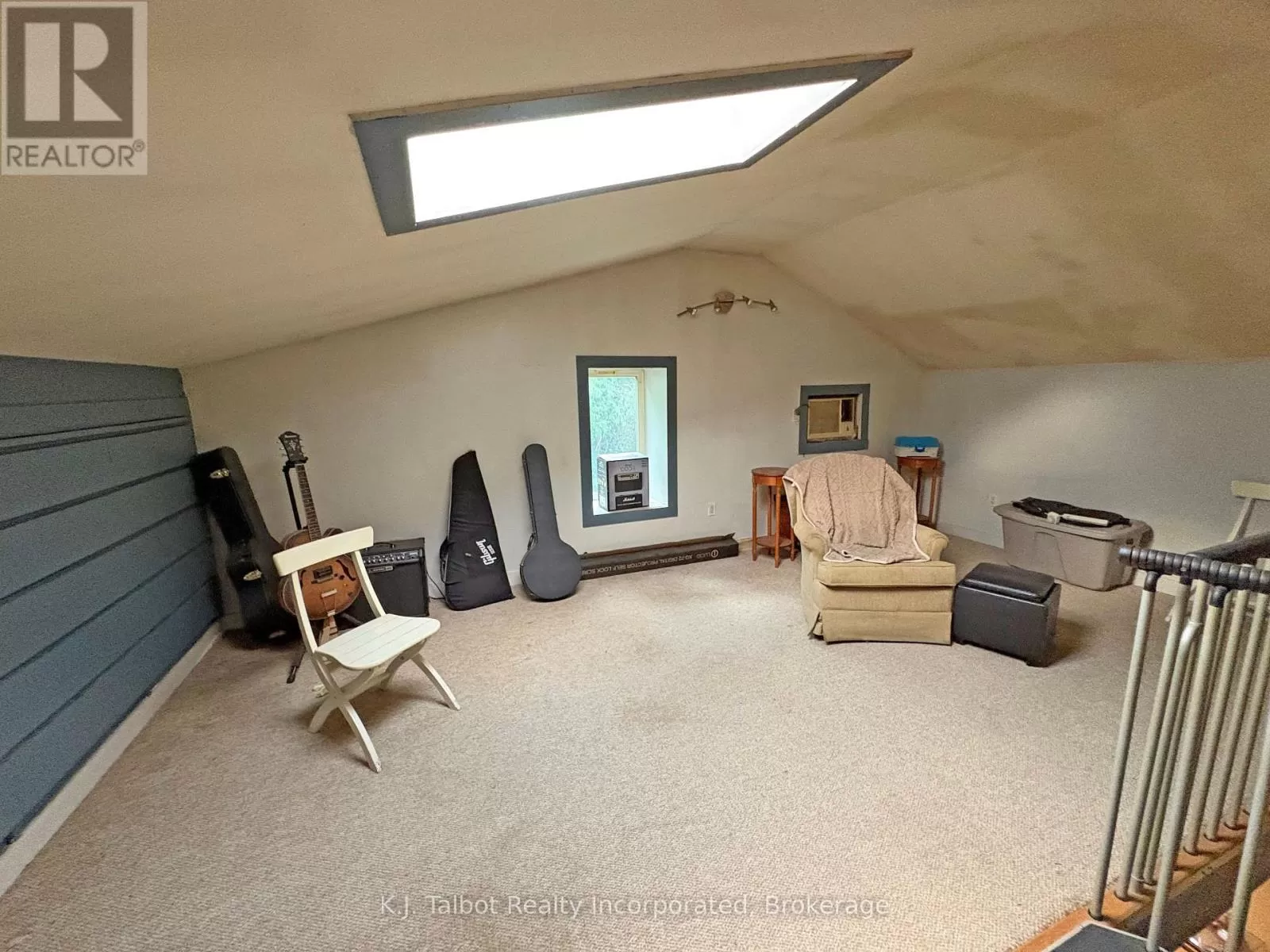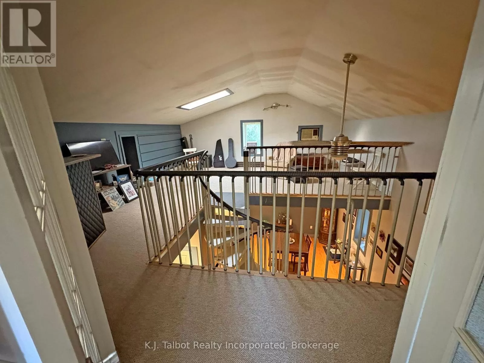 Cross Streets: HWY 21. ** Directions: Hwy 21 north from Goderich. Property on east side just before County Rd 25 (BLYTH RD). Private, year-round retreat property located on the outskirts of Goderich. This unique home offers 1.2 acres of beautifully treed country space, complete with a meandering stream along the north side. You'll be just minutes away from the stunning beaches of Lake Huron, as well as local trails, golfing, and all the amenities of town. This historic stone home, built in the 1890s, features a distinctive open living space highlighted by a spiral staircase that leads to a spacious upper-level loft and a generously sized second bedroom. The main level boasts a large living room with a cozy wood-burning fireplace, a primary bedroom with a 4-piece ensuite bath, a country-style kitchen with ample cabinetry and a peninsula, a laundry room, an office area, and a 3-piece bath. For those who enjoy tinkering or need extra workspace, this property is truly ideal, offering an oversized garage/workshop with abundant upper-level loft storage. This unique property is a perfect fit for nature lovers and hobbyists alike and is zoned AG 4 NE 1, which opens up a wide range of possibilities for its next owner. Whether you're looking for a peaceful retreat, a space for agricultural pursuits, or an area to cultivate your favorite hobbies, this zoning offers diverse opportunities to align with your interests. ** This is a linked property.** (id:27476)