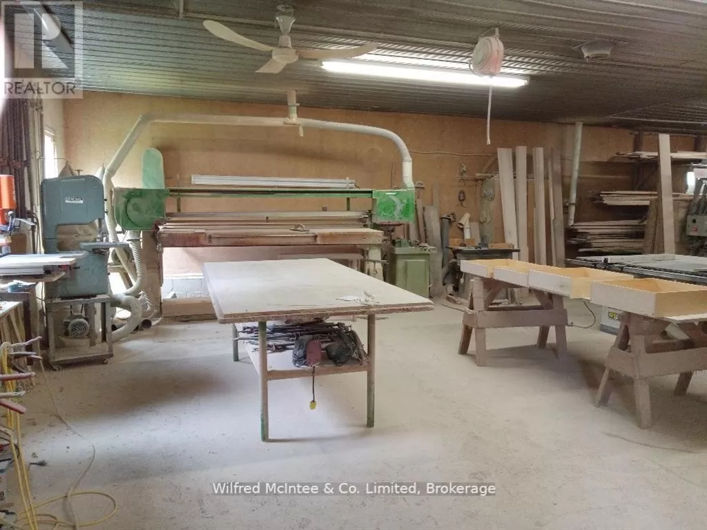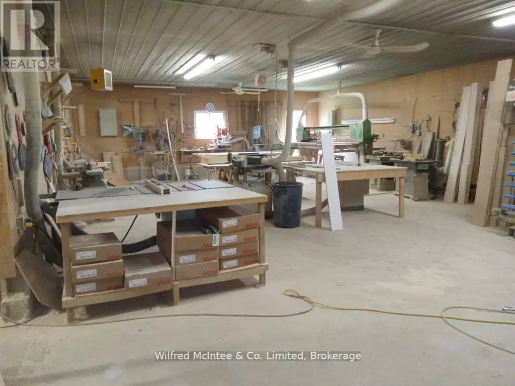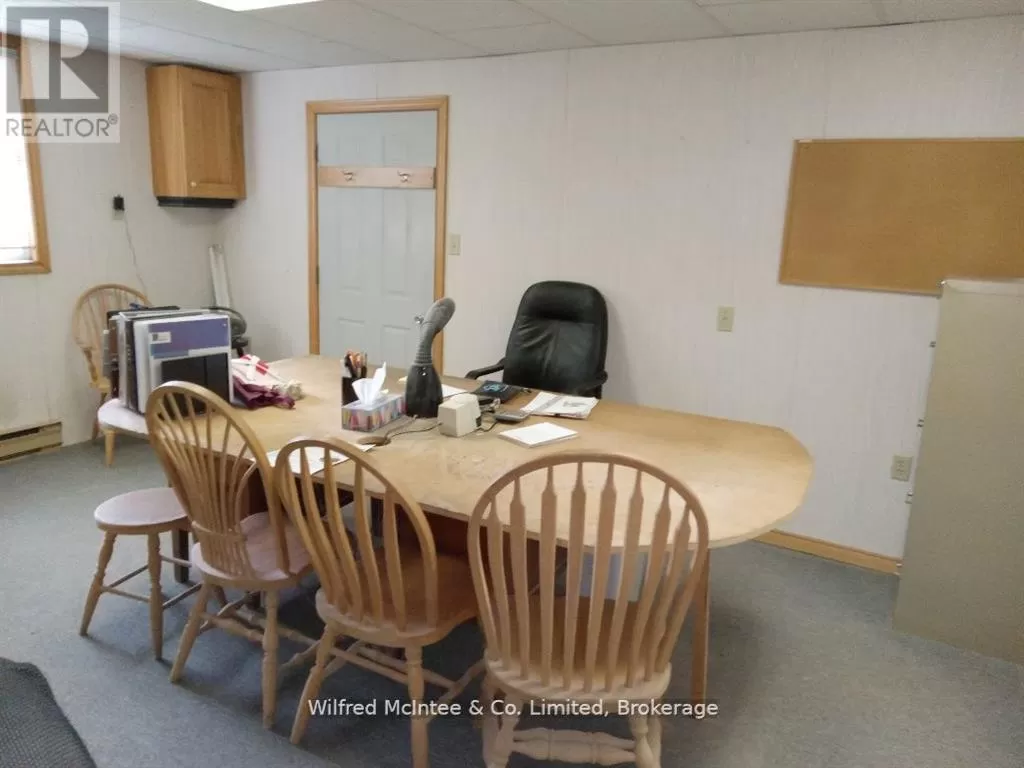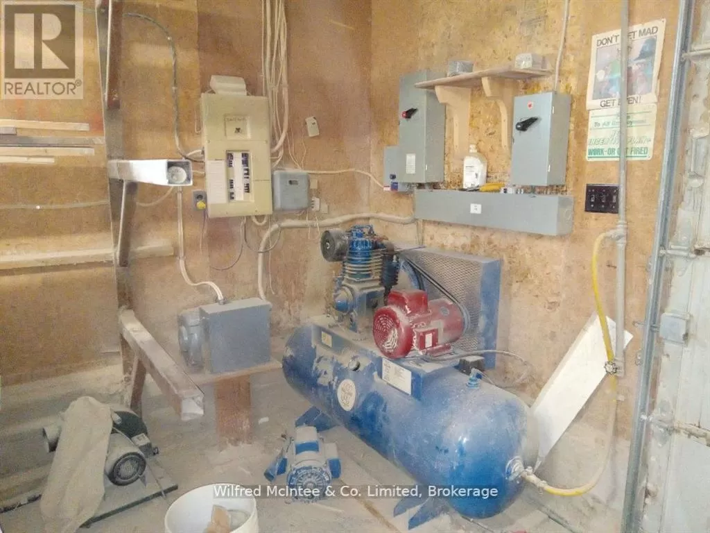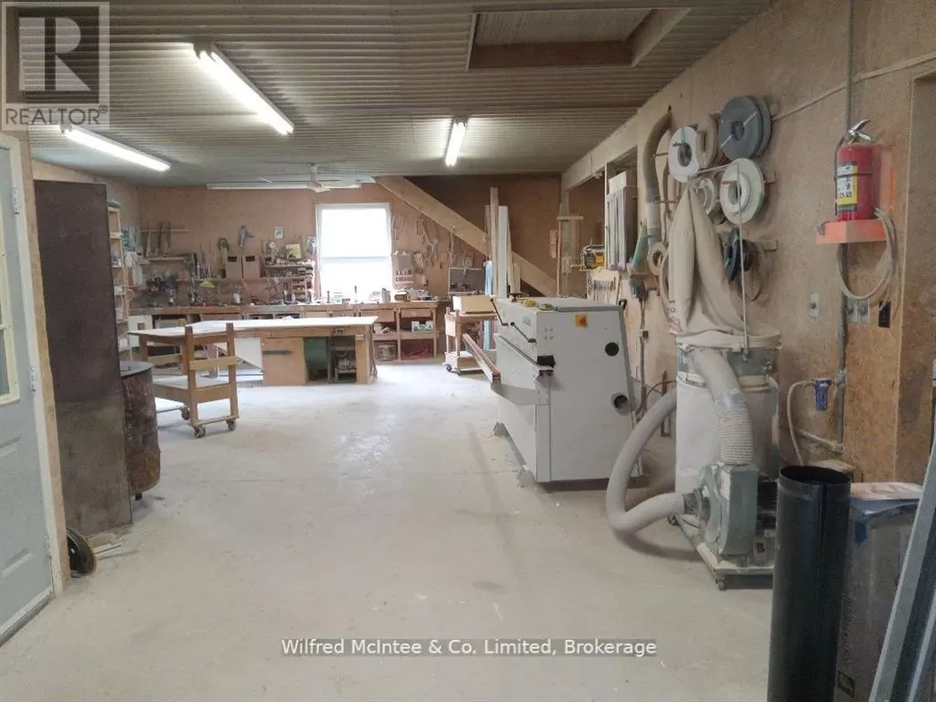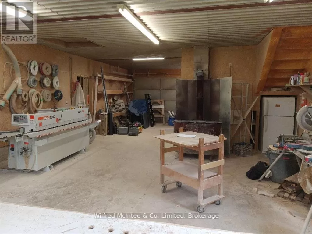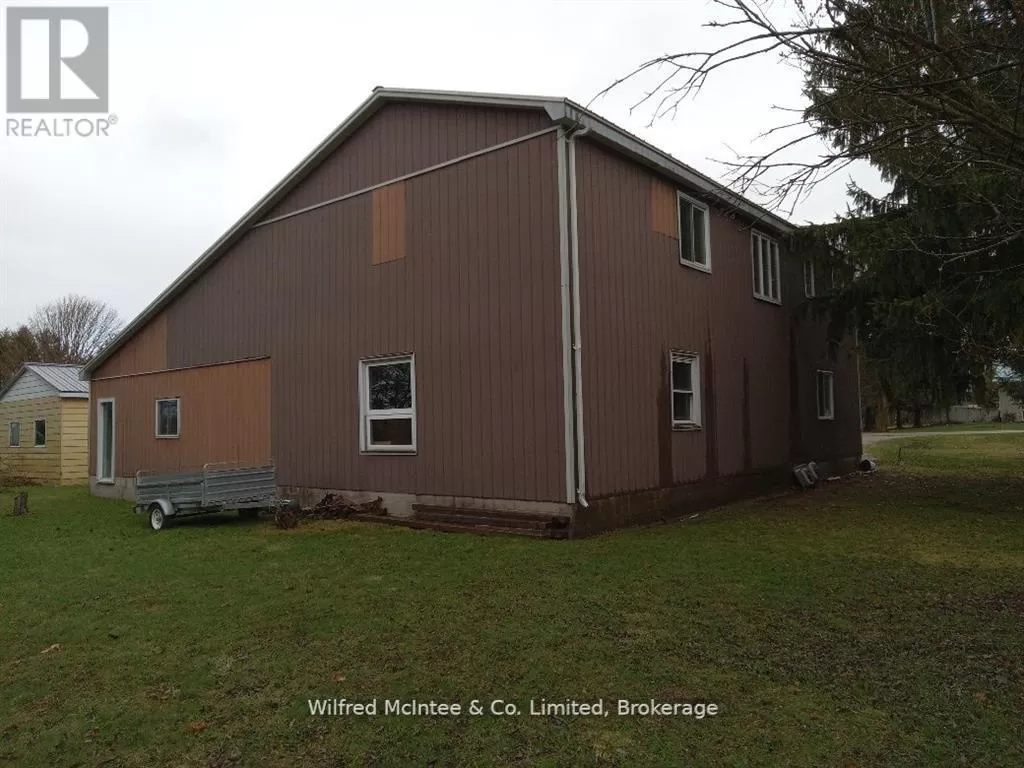 Cross Streets: Southampton. ** Directions: Nain street Dungannon, west on Joseph to sign on left. Steel clad building with 2,400 sq.ft. on main level and upper 1,250 sq.ft. office/display area. Main level has two large rooms, office and two-piece bath. Upper area has an office, show room, two-piece bath and large unheated storage area. Price is for the vacant building. All remaining wood working equipment /fixtures and materials are available for sale over and above the asking price. Heating is EBB upstairs, with EBB and wood on the main level. 200-amp hydro service with rotophase. Building is on municipal water, septic is holding tank which is located in the front yard. Closed drain flows through the rear of the loy. Zoning is Village residential. (id:27476)