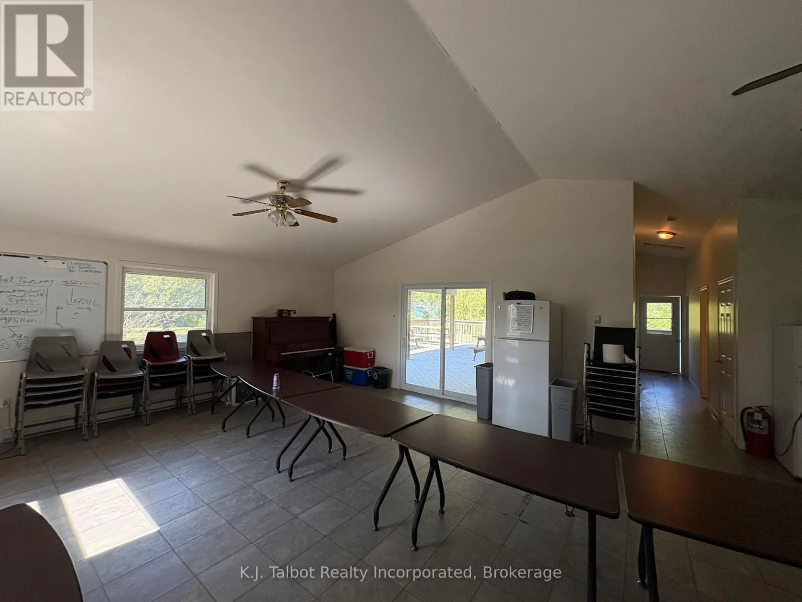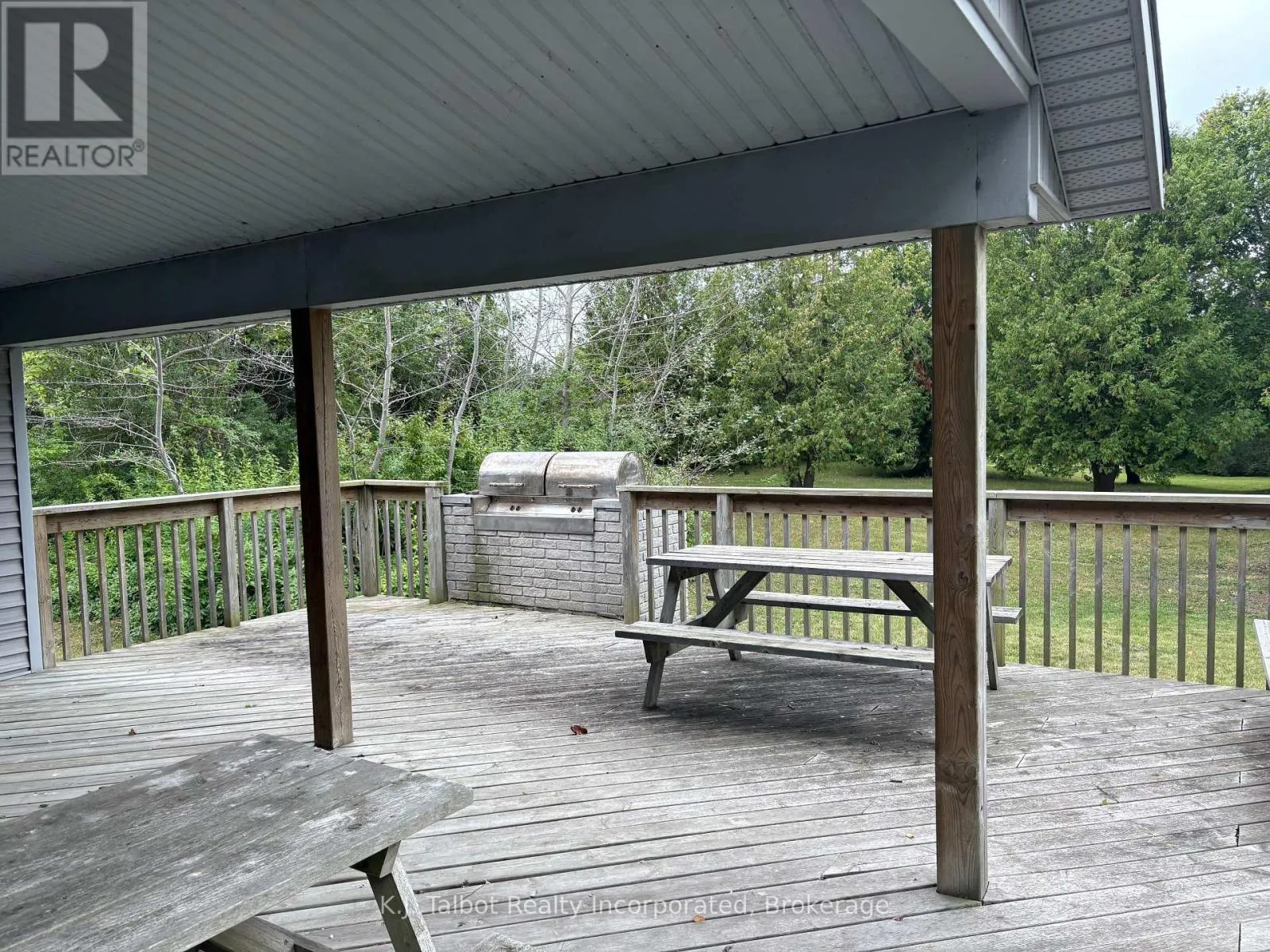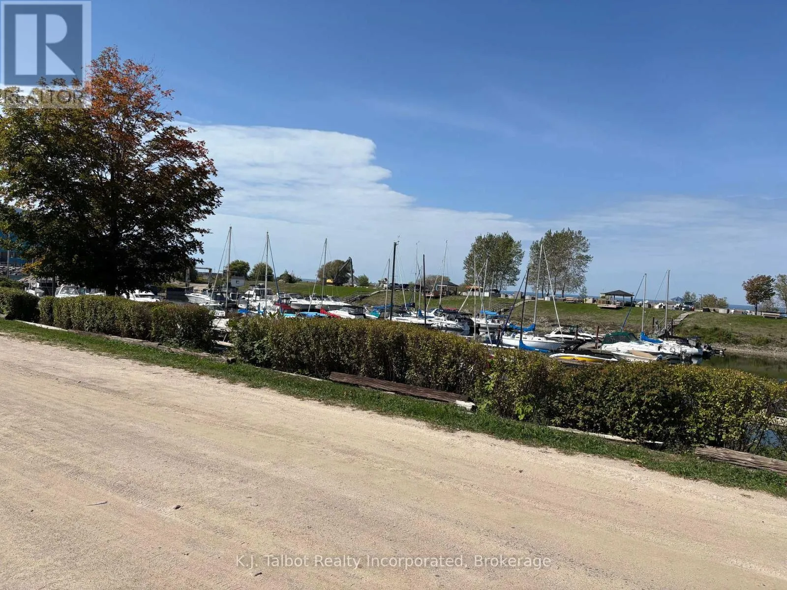 Cross Streets: Magnolia Crescent. ** Directions: Hwy 21 north of Goderich, turn west on Airport Rd south onto Mill Rd to Champlain Blvd and follow around to Marina gate card access just before Magnolia Crescent. Introducing a unique 13-acre riverfront property close to Goderich, offering picturesque river views and directly adjacent to Lake Huron and to a marina. This serene, mature treed setting features a winterized detached building with significant potential as a cottage, previously utilized as a recreational and community hall. The building's exterior is finished with vinyl siding and aluminum soffit and fascia, complemented by a large covered deck and a dedicated area with built-in BBQs. Inside, the building is insulated and drywalled, boasting a vaulted ceiling with pot lights, and an open-concept great room with an oak kitchenette. Patio doors provide direct access to the covered deck area. The building also includes two 2-piece bathrooms and a utility room equipped with an owned hot water tank, water softener, and pressure tank. The property is serviced by EBB heating, a septic system, and a drilled well. Ample parking is available. Residents will enjoy convenient access to various outdoor activities such as trails, fishing, swimming, canoeing, and kayaking, along with easy access to Goderich's amenities. Please note that this property is accessible by appointment only due to seasonal gated access. (id:27476)