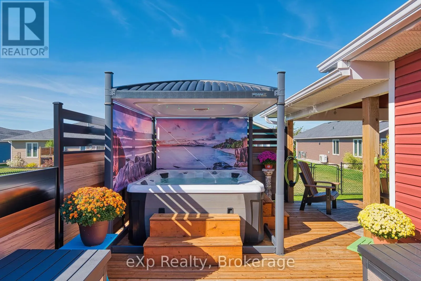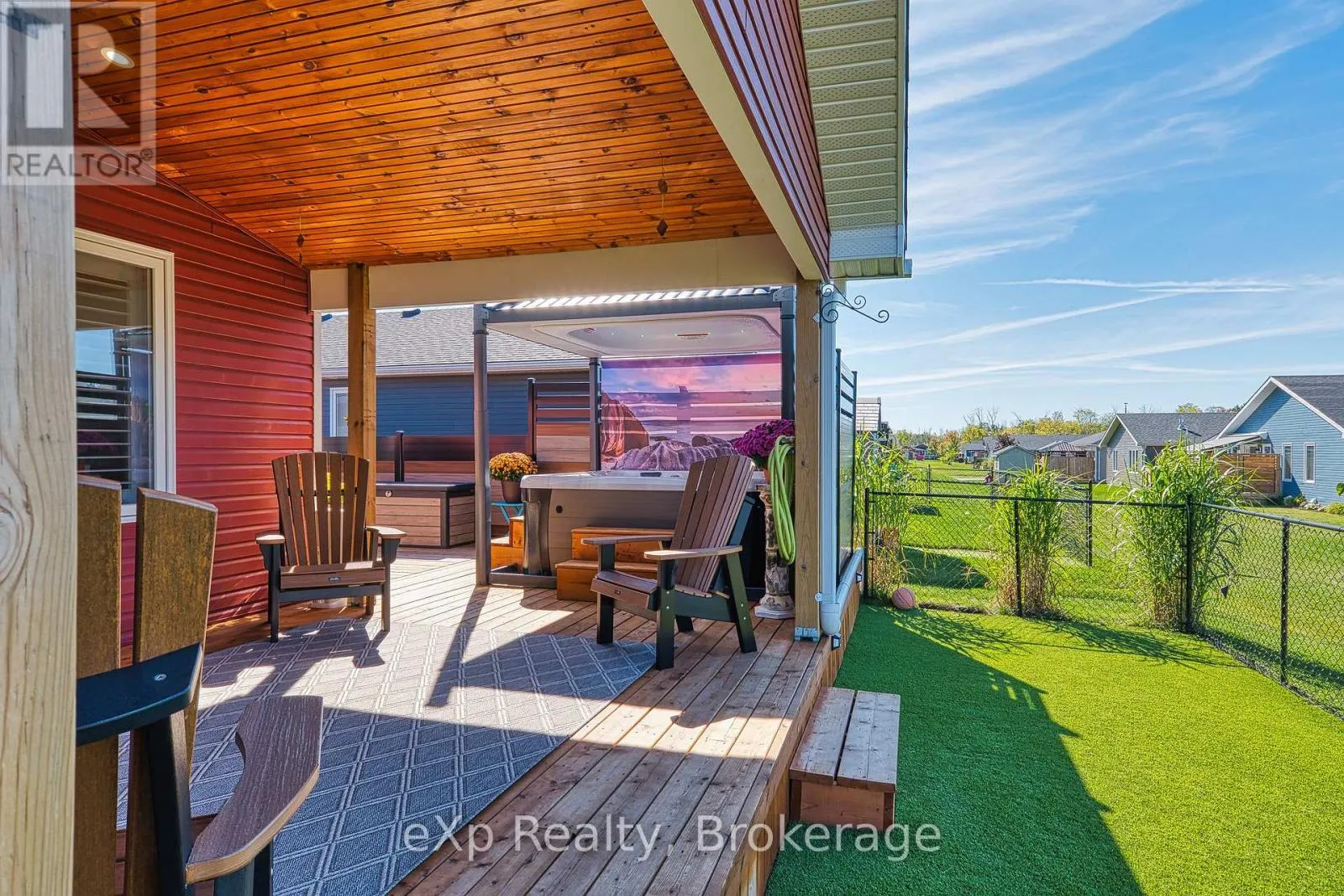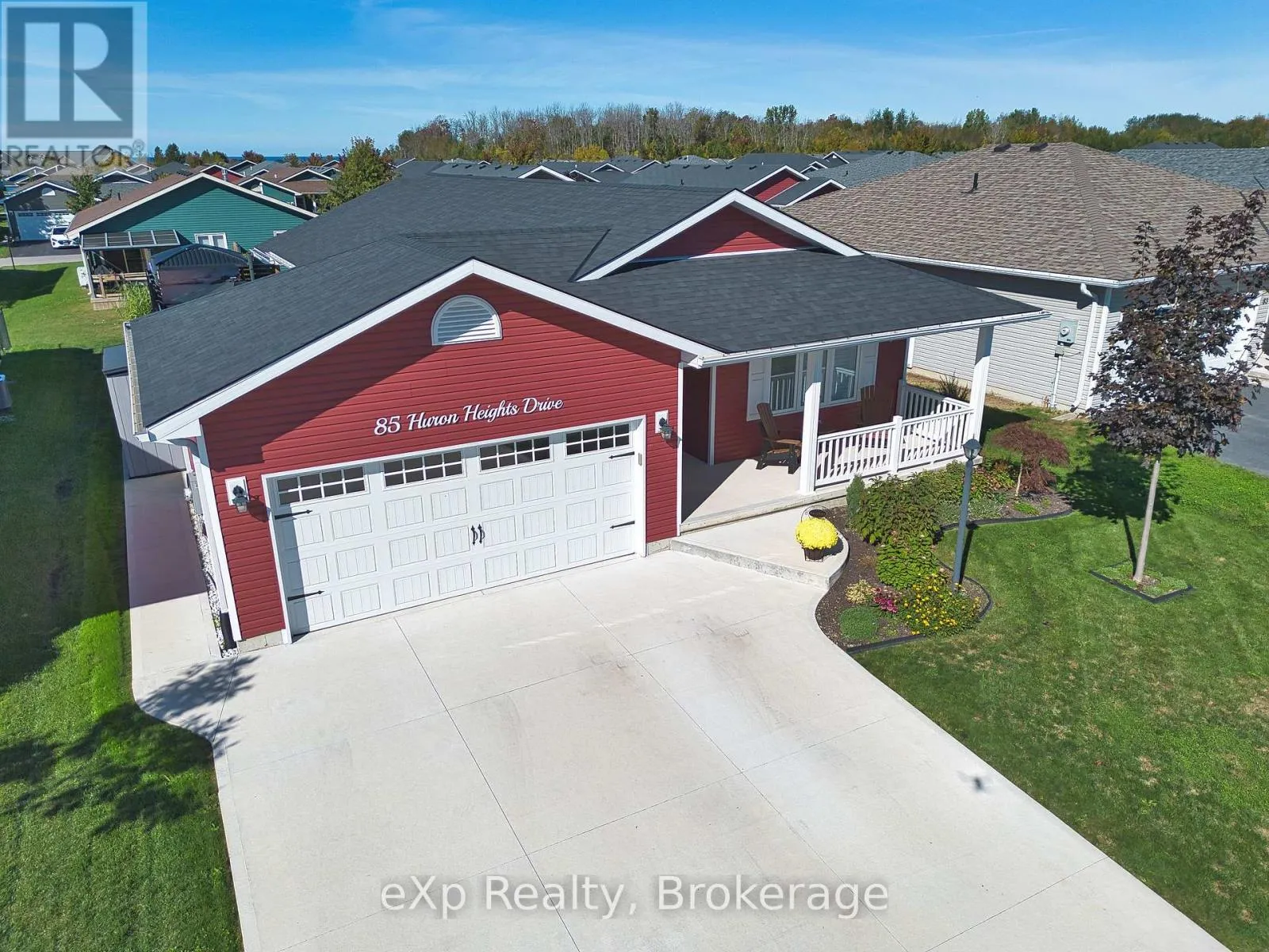Cross Streets: Highway 21 and West Coast Way. ** Directions: Highway 21 to the Bluffs of Huron to West Coast Way to Sweet Water Drive North left to Huron Heights. Welcome to The Bluffs of Huron Adult Lifestyle Living at Its Best!This immaculate bungalow at 85 Huron Heights Drive offers stylish comfort and low-maintenance living in the sought-after Bluffs of Huron community, just minutes from the shores of Lake Huron and the amenities of Goderich.Step inside to a bright and inviting open-concept layout featuring a modern kitchen with rich cabinetry, stainless steel appliances, and a large island perfect for entertaining. The spacious dining and living areas are filled with natural light and designed for relaxed living.The primary suite offers a generous bedroom, walk-in closet, and private access to the covered deck. Enjoy year-round outdoor living with a beautifully finished covered porch, private hot tub, and fenced yard designed for both privacy and entertaining.Additional highlights include:Two spacious bedrooms plus additional living space for guests or hobbiesStylish flooring and neutral finishes throughoutProfessional landscaping with low-maintenance designAttached double garage and wide concrete driveway for ample parkingThis vibrant adult lifestyle community offers walking trails, social activities, and a welcoming neighbourhood atmosphere. Whether youre downsizing or looking for a relaxed lakeside lifestyle, this home is move-in ready and waiting for you! (id:27476)