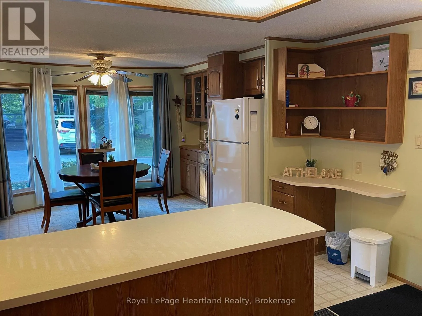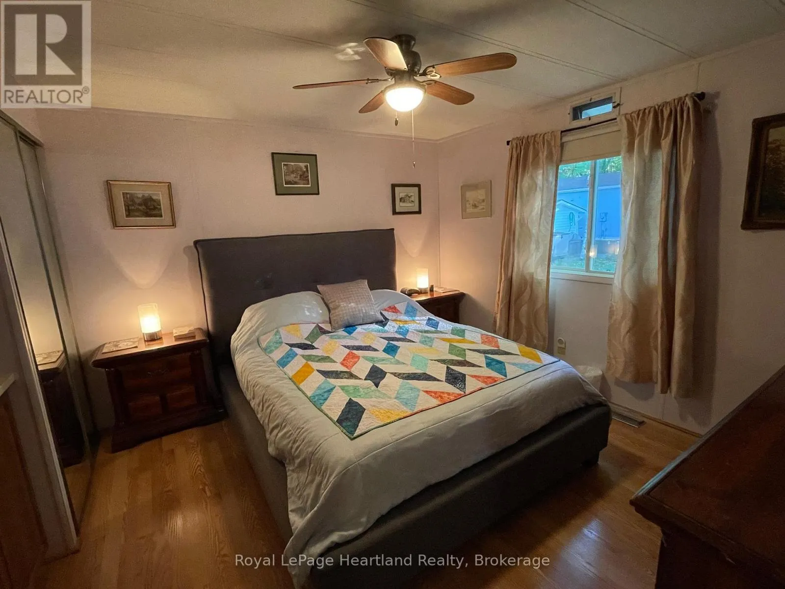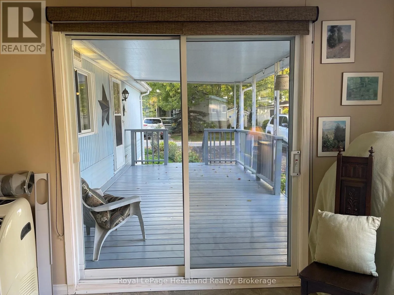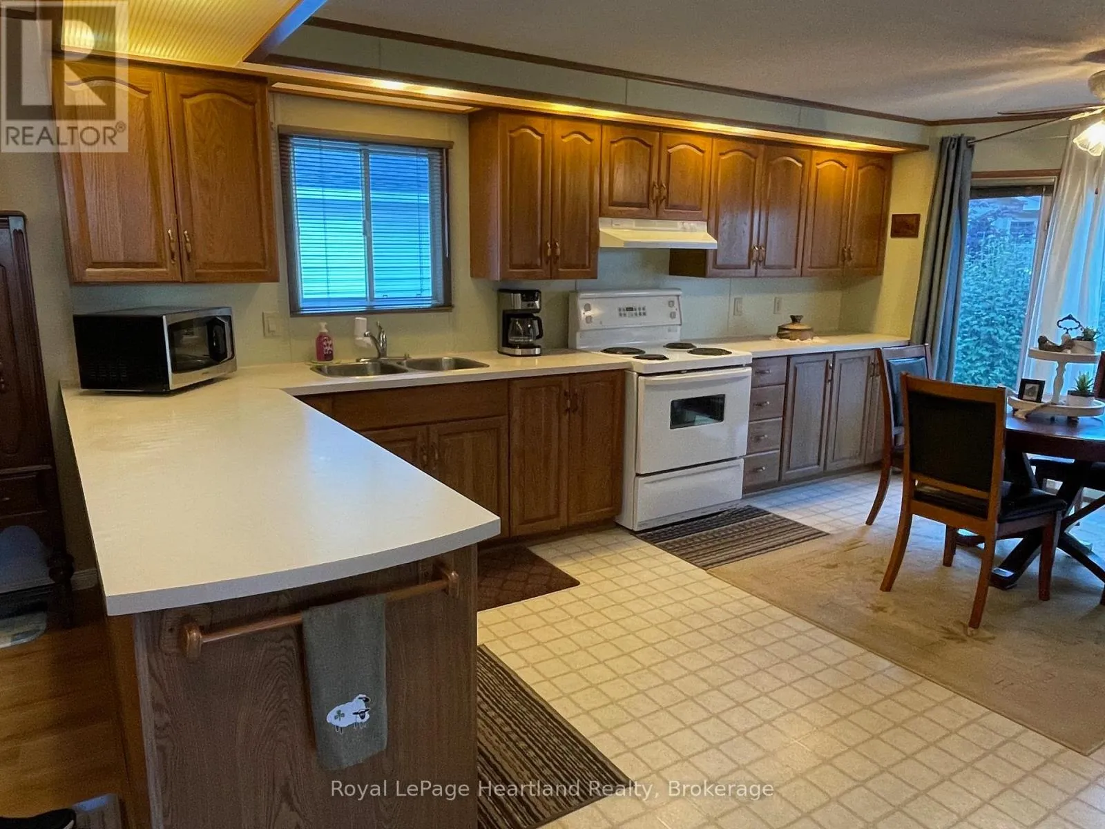 Cross Streets: Champlain Blvd. and Cree Lane. ** Directions: Hwy. 21 north of Goderich to Airport Rd., turn left & follow to Mill Rd., turn left and follow to Champlain Blvd, turn right and then left onto Cree Lane. Home on left. This well loved and maintained home offers over 1,100 square feet of comfortable living space in the highly sought-after 55+ "lakefront" land lease community, Meneset on the Lake. Featuring 2 bedrooms and 1 bathroom with a relaxing soaker tub, the layout includes a combined kitchen and dining area with an abundance of cabinetry and ample counter space, ideal for those who love to cook and entertain guests. The bright and welcoming family room is lined with windows to capture natural light and includes a cozy gas fireplace. A patio door leads to the spacious 20.6' x 10.6' covered deck, perfect for enjoying morning coffee or social gatherings on those warm summer days. The laundry is conveniently located in the hallway just outside the bedrooms and bathroom. Mature gardens line the home with a privacy hedge to the north of the lot and the shed to store off season items is towards the back of the lot. Residents of this vibrant and active community enjoy access to a clubhouse, bocce ball courts, community gardens, a private sandy beach and stunning views of Lake Huron. Capture breathtaking sunsets, bask in the sun on those hot summer days, watch the boats pass by or read a book at one of the lakefront lookout areas for all to enjoy. Just minutes from the Town of Goderich, this affordable home offers a relaxed lifestyle in a vibrant and scenic lakefront community. Assignment lease option is available. (id:27476)