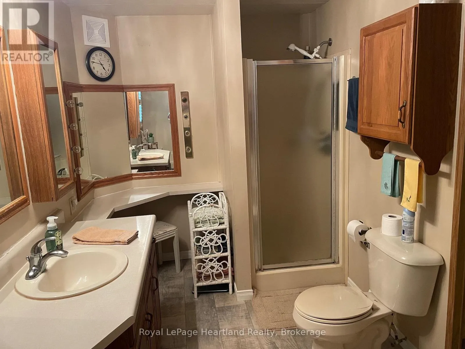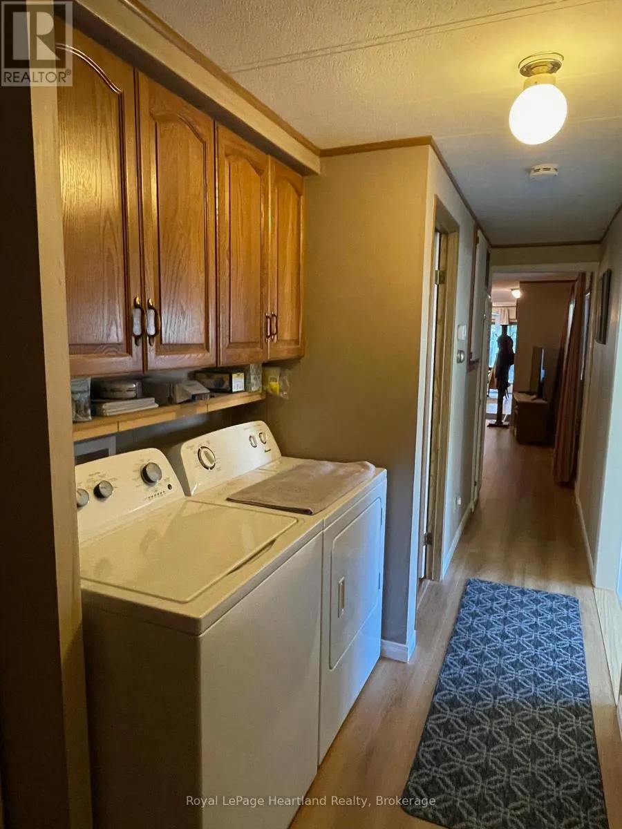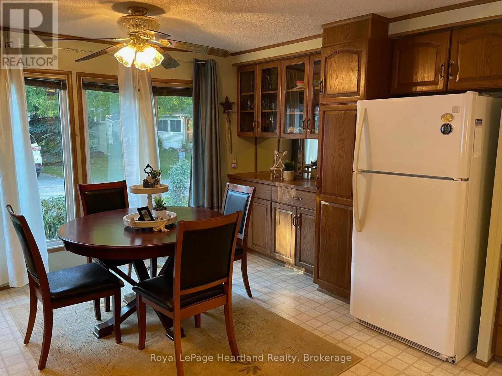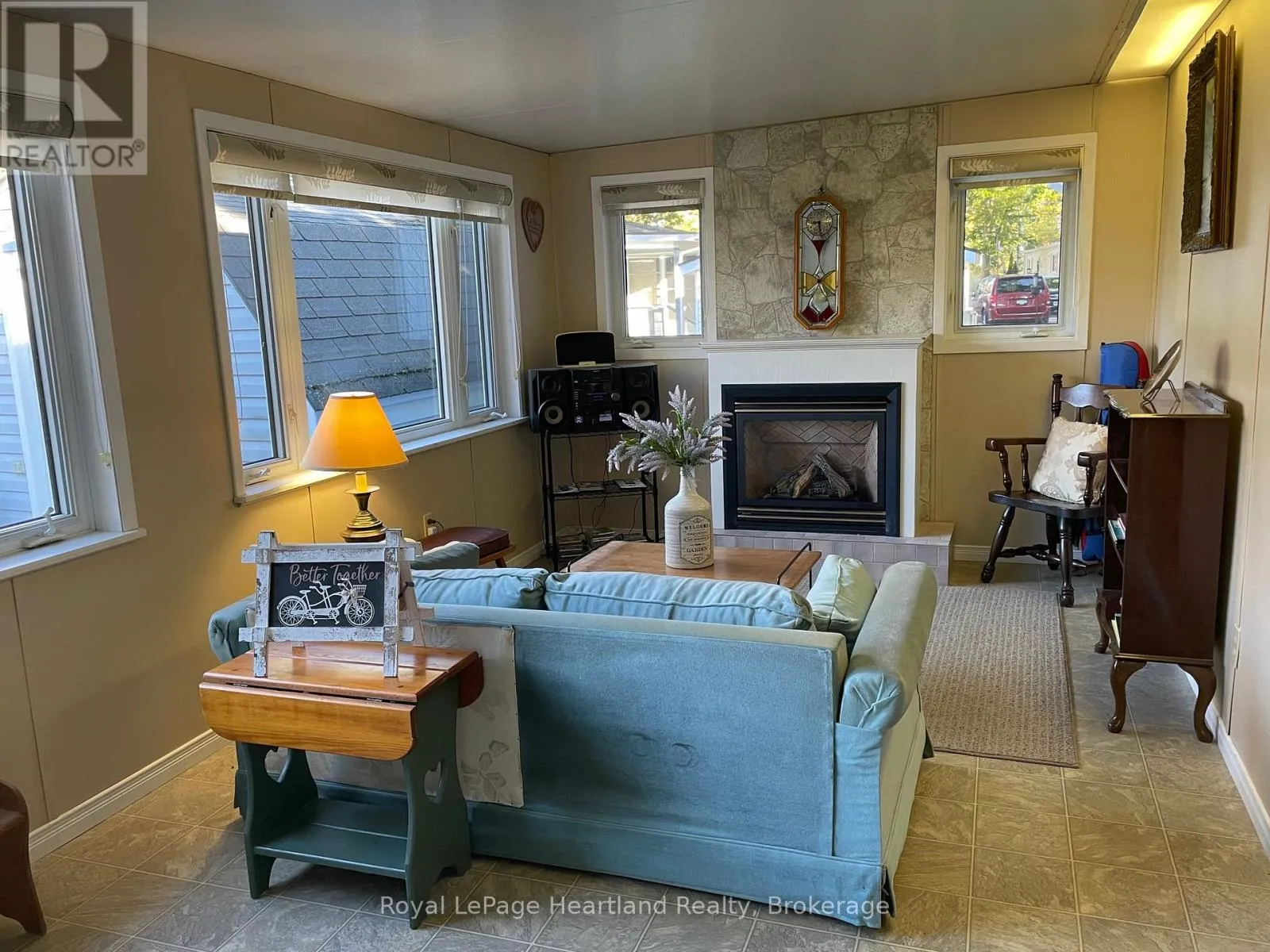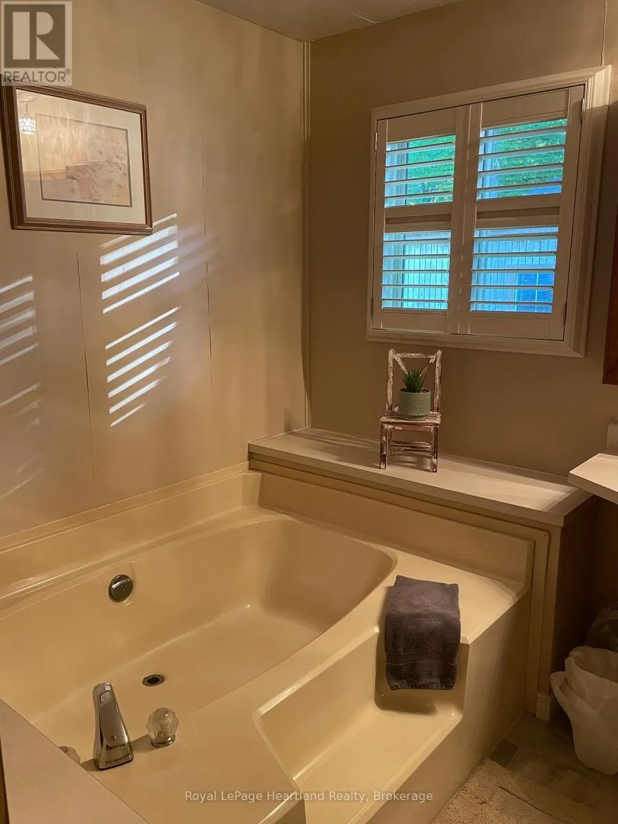 Cross Streets: Champlain Blvd. and Cree Lane. ** Directions: Hwy. 21 north of Goderich to Airport Rd., turn left & follow to Mill Rd., turn left and follow to Champlain Blvd, turn right and then left onto Cree Lane. Home on left. This well loved and maintained home offers over 1,100 square feet of comfortable living space in the highly sought-after 55+ "lakefront" land lease community, Meneset on the Lake. Featuring 2 bedrooms and 1 bathroom with a relaxing soaker tub, the layout includes a combined kitchen and dining area with an abundance of cabinetry and ample counter space, ideal for those who love to cook and entertain guests. The bright and welcoming family room is lined with windows to capture natural light and includes a cozy gas fireplace. A patio door leads to the spacious 20.6' x 10.6' covered deck, perfect for enjoying morning coffee or social gatherings on those warm summer days. The laundry is conveniently located in the hallway just outside the bedrooms and bathroom. Mature gardens line the home with a privacy hedge to the north of the lot and the shed to store off season items is towards the back of the lot. Residents of this vibrant and active community enjoy access to a clubhouse, bocce ball courts, community gardens, a private sandy beach and stunning views of Lake Huron. Capture breathtaking sunsets, bask in the sun on those hot summer days, watch the boats pass by or read a book at one of the lakefront lookout areas for all to enjoy. Just minutes from the Town of Goderich, this affordable home offers a relaxed lifestyle in a vibrant and scenic lakefront community. Assignment lease option is available. (id:27476)