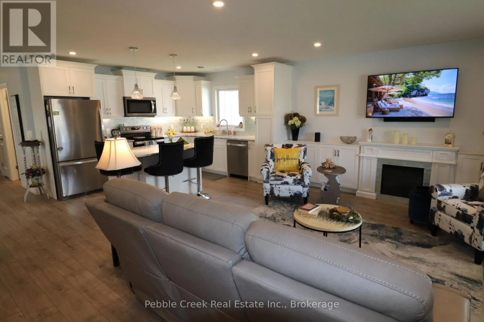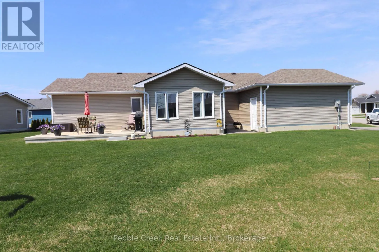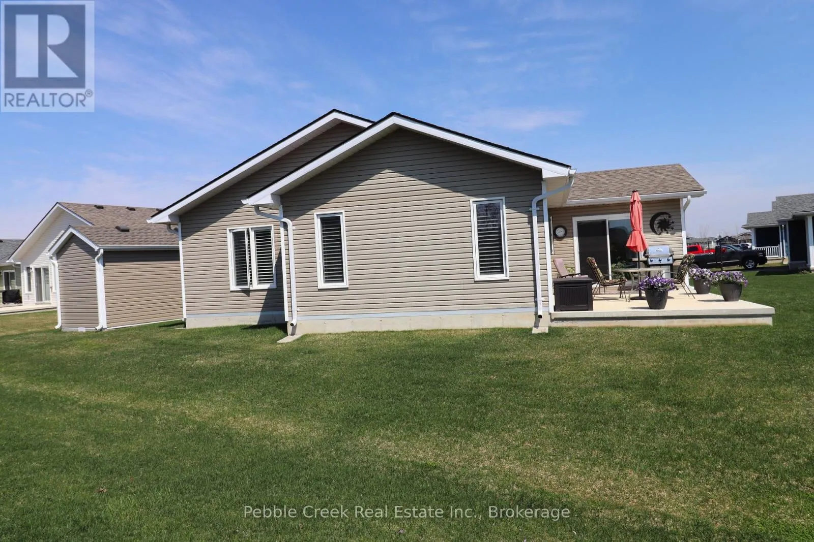 Cross Streets: Lookout Lane South. ** Directions: Head North from Goderich on Hwy 21 to the main entrance of the The Bluffs at Huron. Go West to Lookout Lane South, then turn south to Lake Breeze Drive and West onto Lake Breeze Drive. The property is on the South side. Absolutely stunning! This beautiful home offers nearly 1600 sq ft of living space and is situated on one of the largest and most private premium lots at The Bluffs! Just imagine the lifestyle, living along the shores of Lake Huron, close to shopping and fantastic golf courses along with your own private community recreation center complete with library, party rooms, sauna and indoor pool! This incredible "Cliffside B with sunroom" model has seen an extensive number of upgrades added and is an absolute pleasure to show! Features include a large custom kitchen with crown moulding, center island, pantry, upgraded appliances and quartz countertops. You will love all of the custom "pull out" shelving in the cabinets as well! The living room boasts a fireplace surrounded by wall-to-wall custom cabinetry. Also located close to the kitchen is a spacious dining room, perfect for dinner parties! The sunroom sports a cathedral ceiling and patio doors leading to a concrete patio overlooking the extensive gardens and offering a panoramic view of the countryside! Other features include a large primary bedroom with walk-in closet, 3 pc ensuite bath including a shower light and vanity with quartz countertop. Just down the hall is a spacious second bedroom and 4 pc main bath with shower/bath light, linen closet and vanity with quartz counter top. Premium window coverings and upgraded light fixtures are also prevalent throughout. Services include radiant in-floor radiant heating along with a gas furnace offering forced air heating and A/C. There's also an attached two car garage with custom shelving and separate storage shed on the property. This home is truly the ultimate in quality construction and location! (id:27476)
